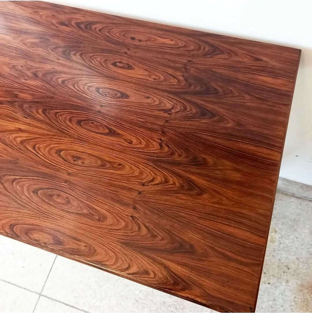 A mesa encontra-se em estado original, o tampo é folheado em jacarandá e não apresenta faltas, a estrutura é toda em jacaranda maciço e os pés em ferro, possuindo pouca oxidação da passagem do tempo.