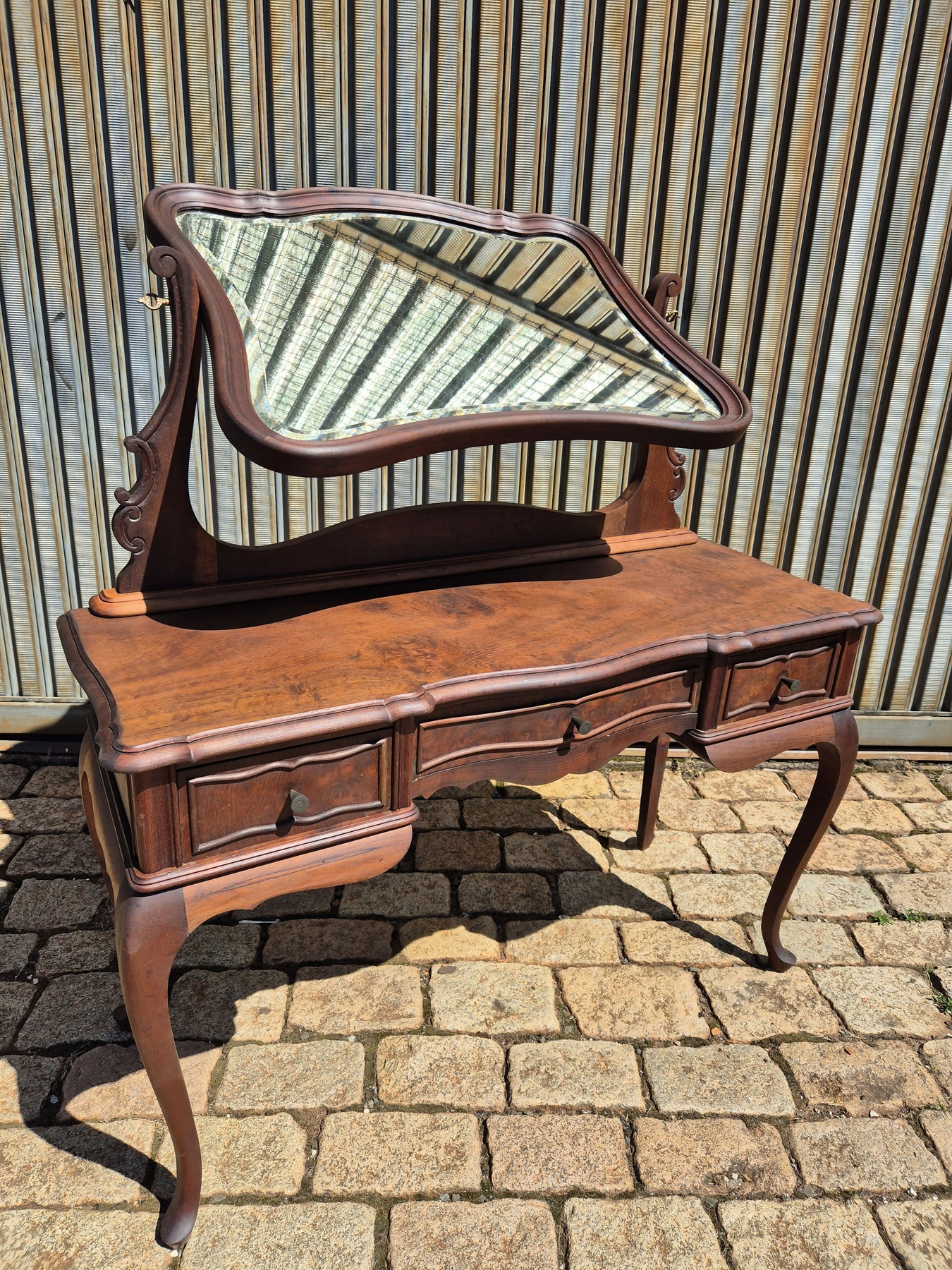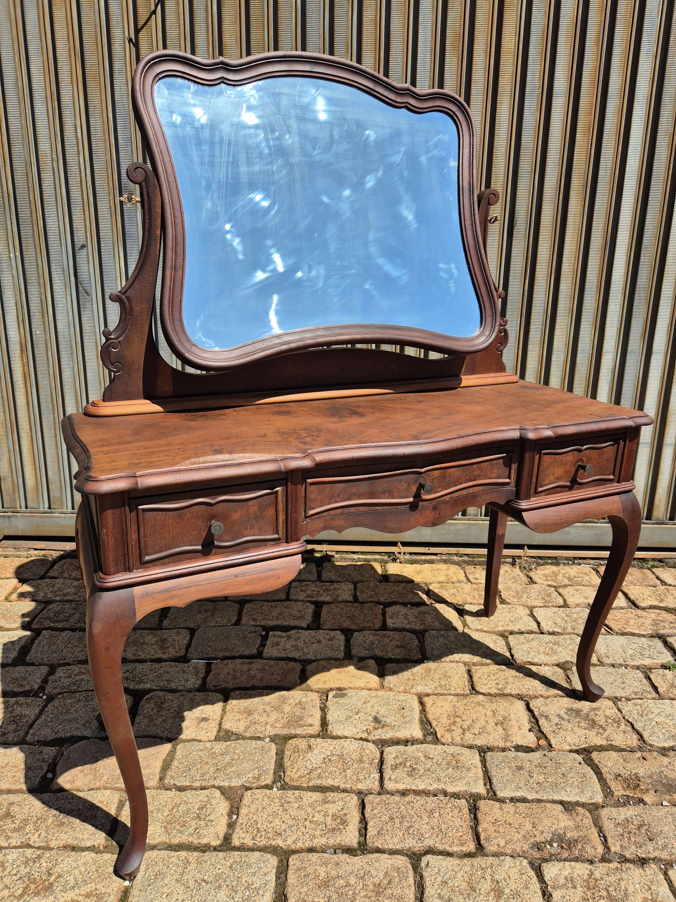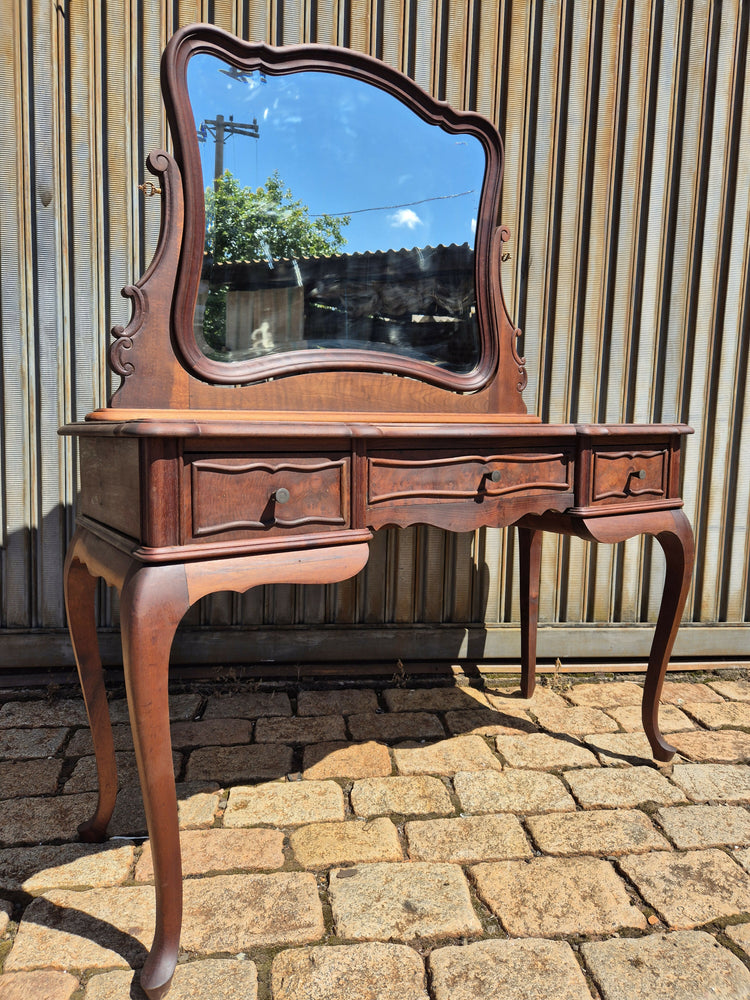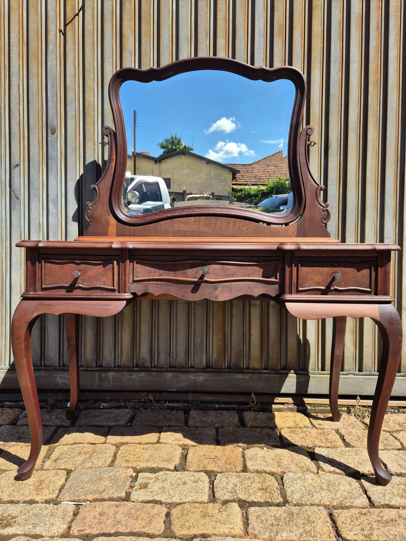 Belíssima penteadeira estilo provençal, estrutura em madeira imbuia e espelho de cristal bisotê! Restaurada com acabamento em óleo, dando um aspecto natural para peça. Disponível para venda!