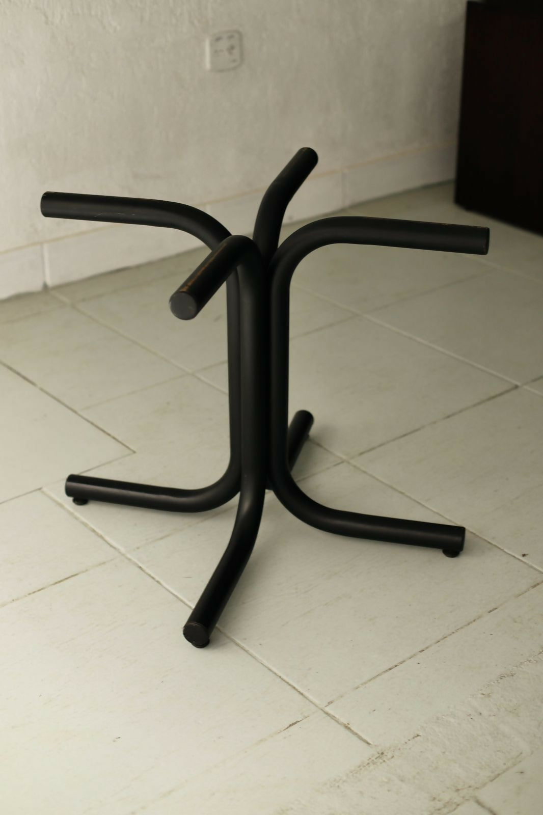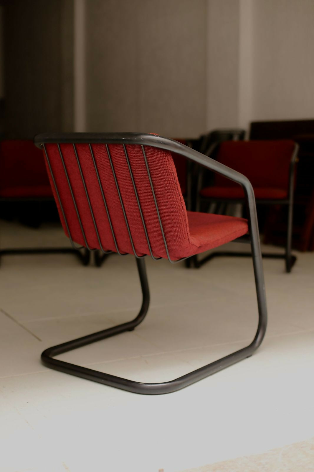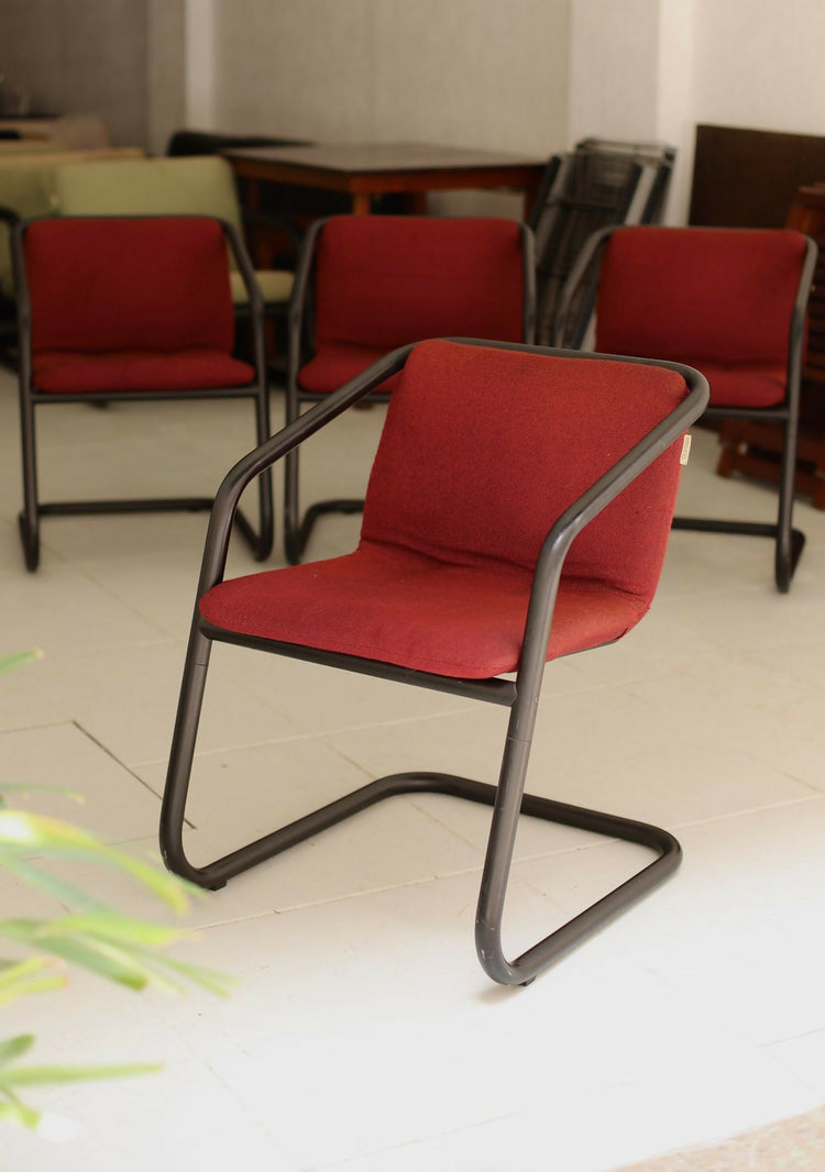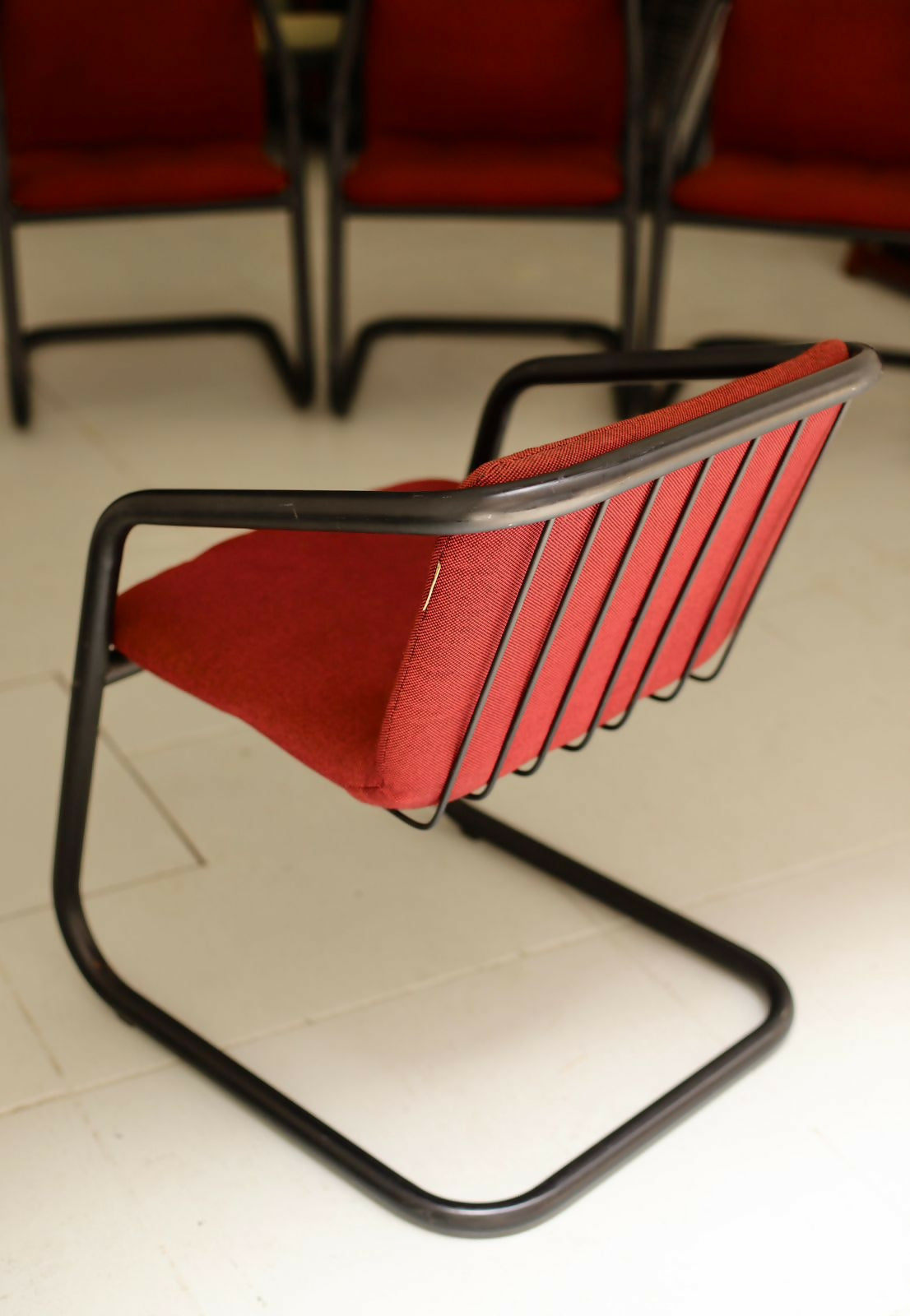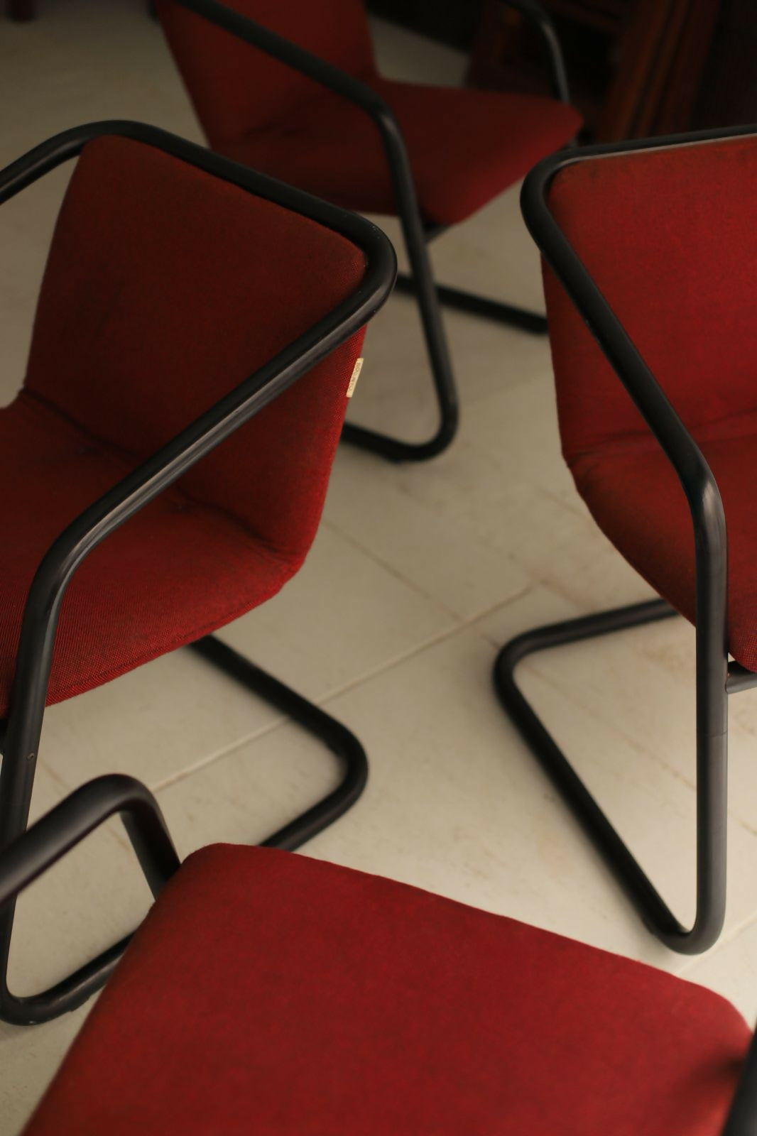 Quarteto de cadeiras com o design atemporal de Geraldo de Barros para Hobjeto. Estrutura tubular contínua com pintura eletrostática preta e estofados originais com etiqueta Hobjeto. Peças muito bem conservadas.