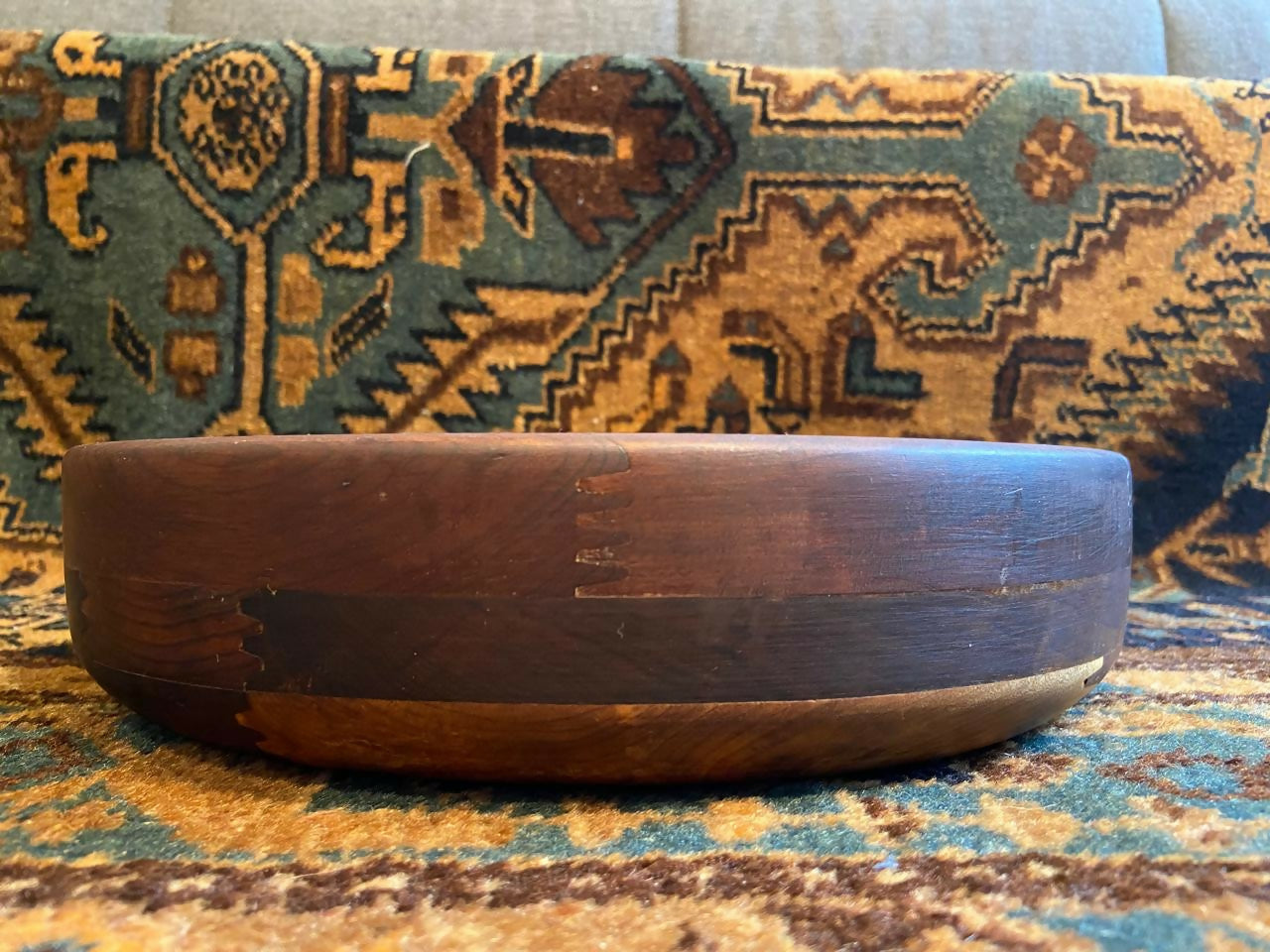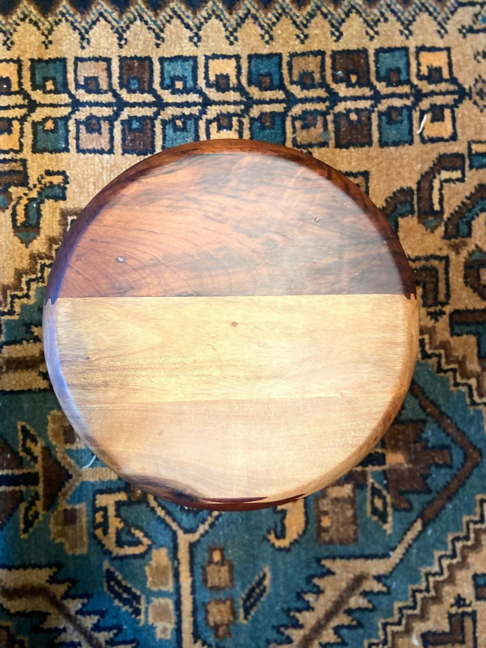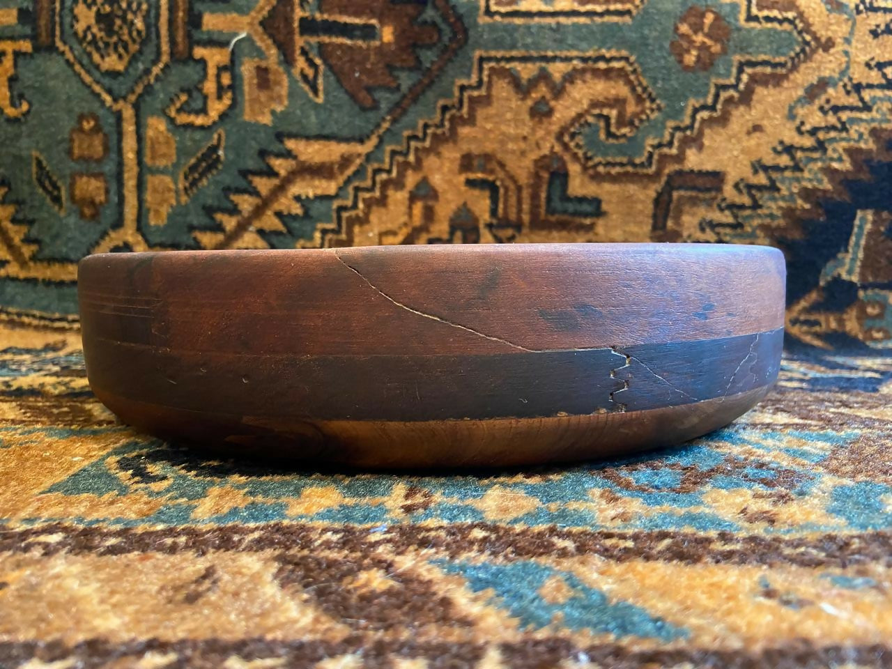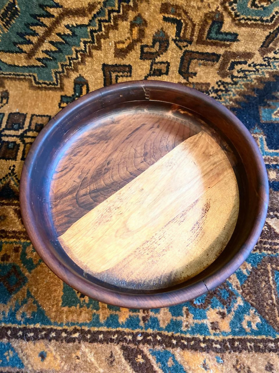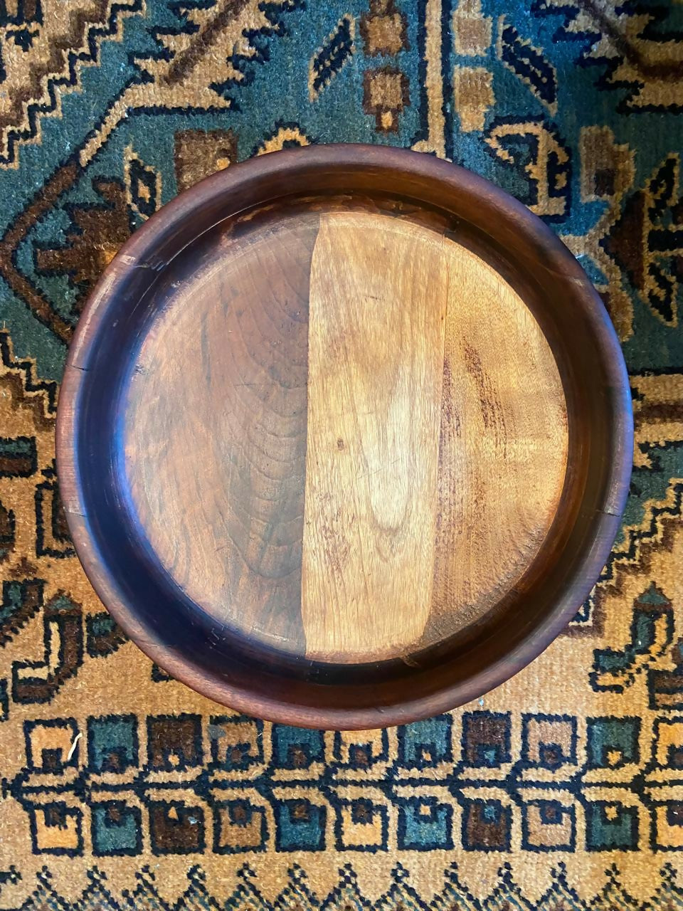 _Peça antiga em madeira nobre, feita com técnica tradicional de união de segmentos.