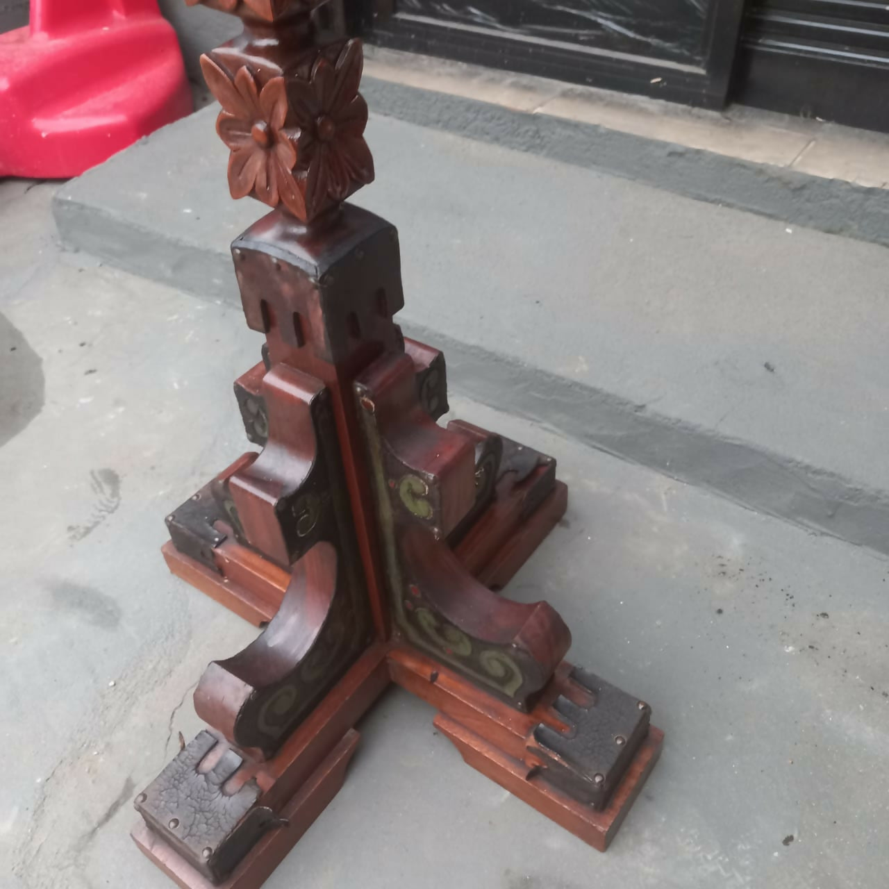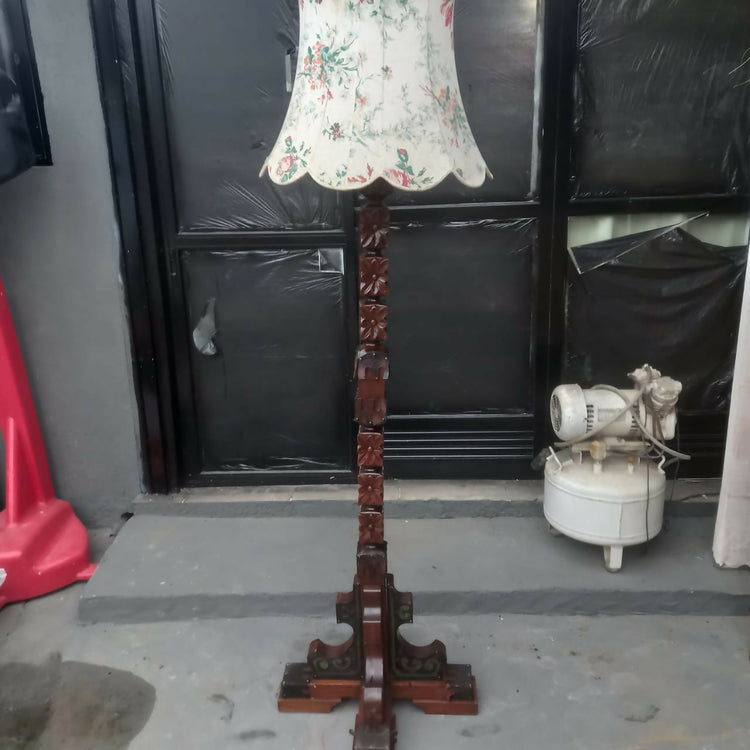 Abajur / Luminária de chão com madeira entalhada