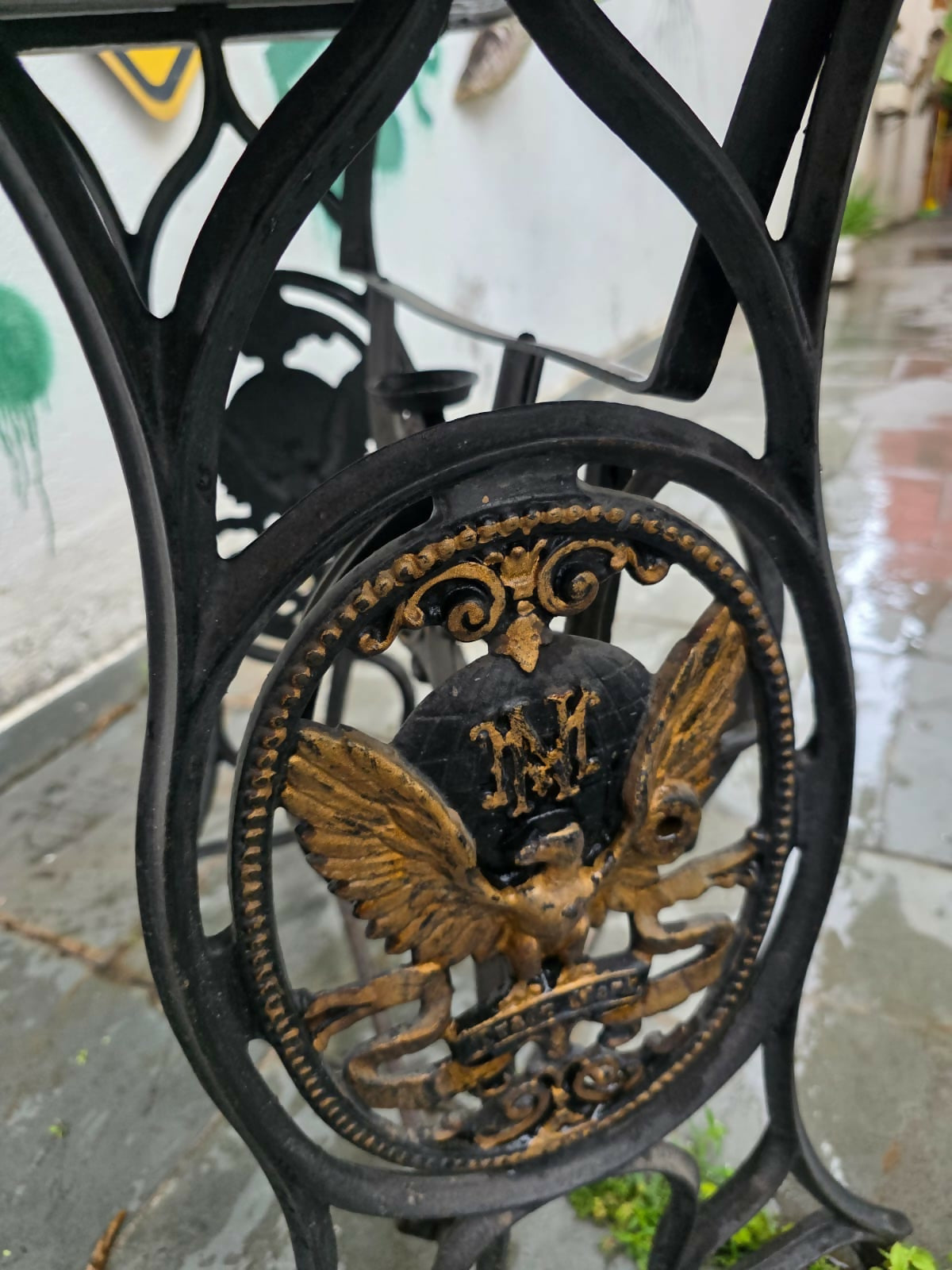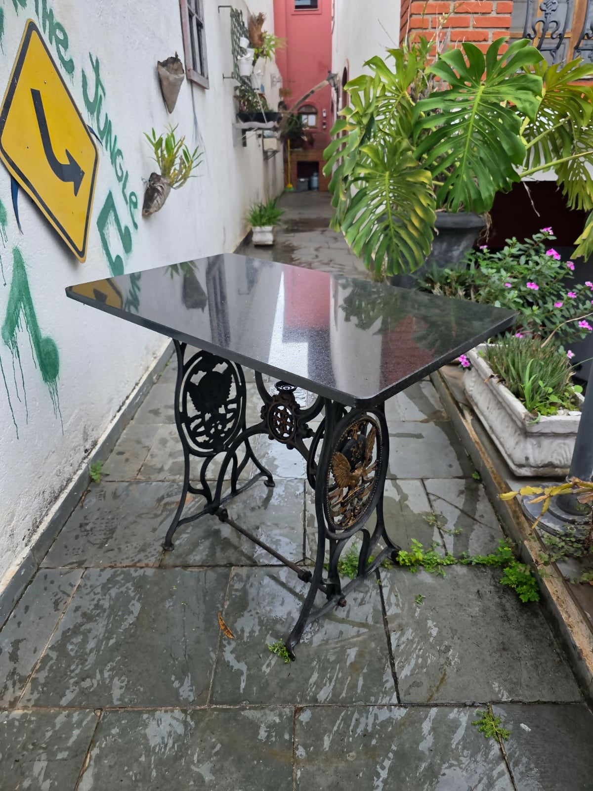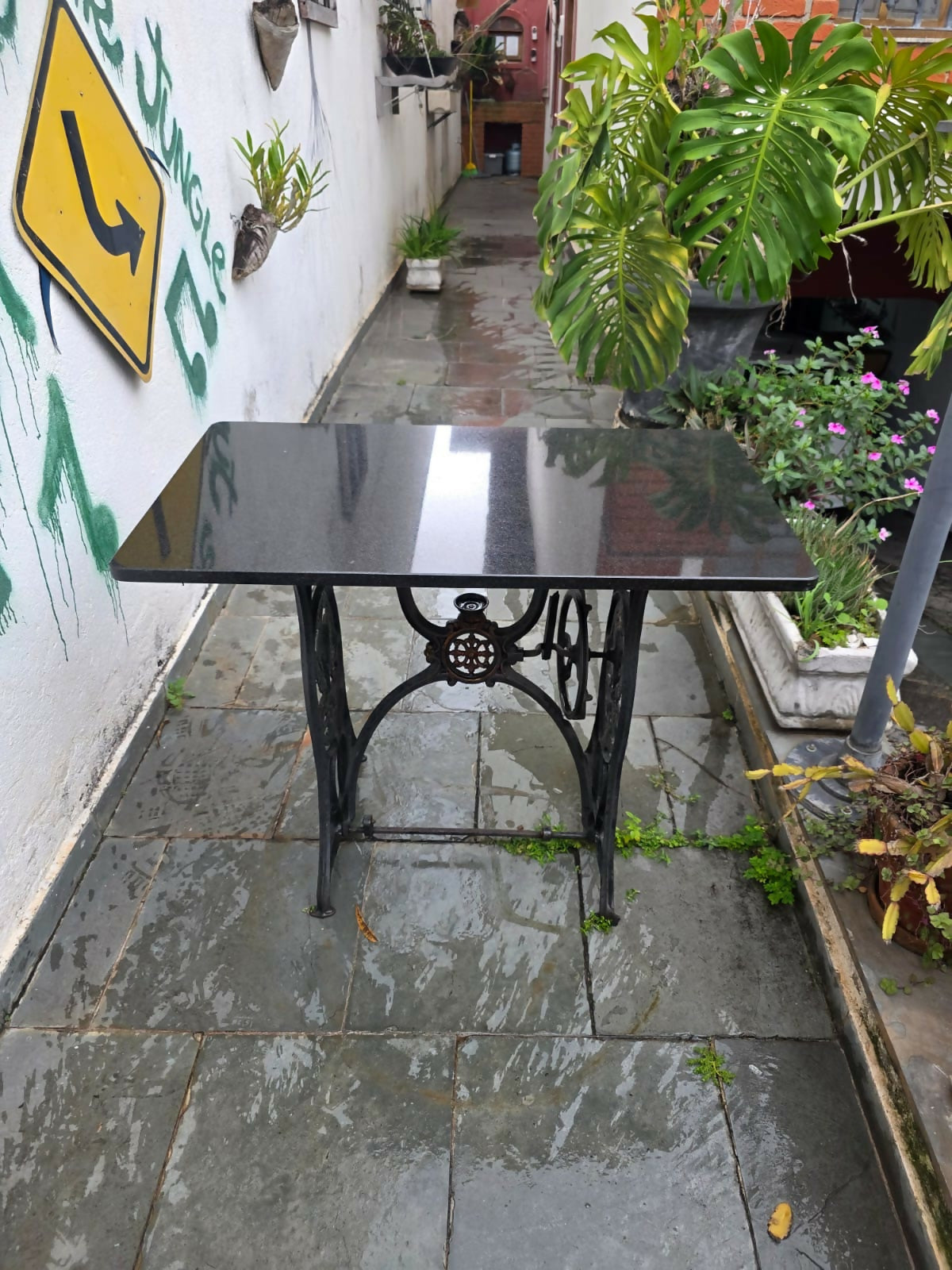 Aparador / Mesinha de Máquina de costura antiga com tampo em granito São Gabriel lapidado
