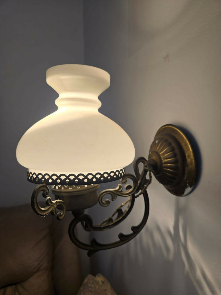 Arandela antiga em bronze com cúpula de vidro leitoso