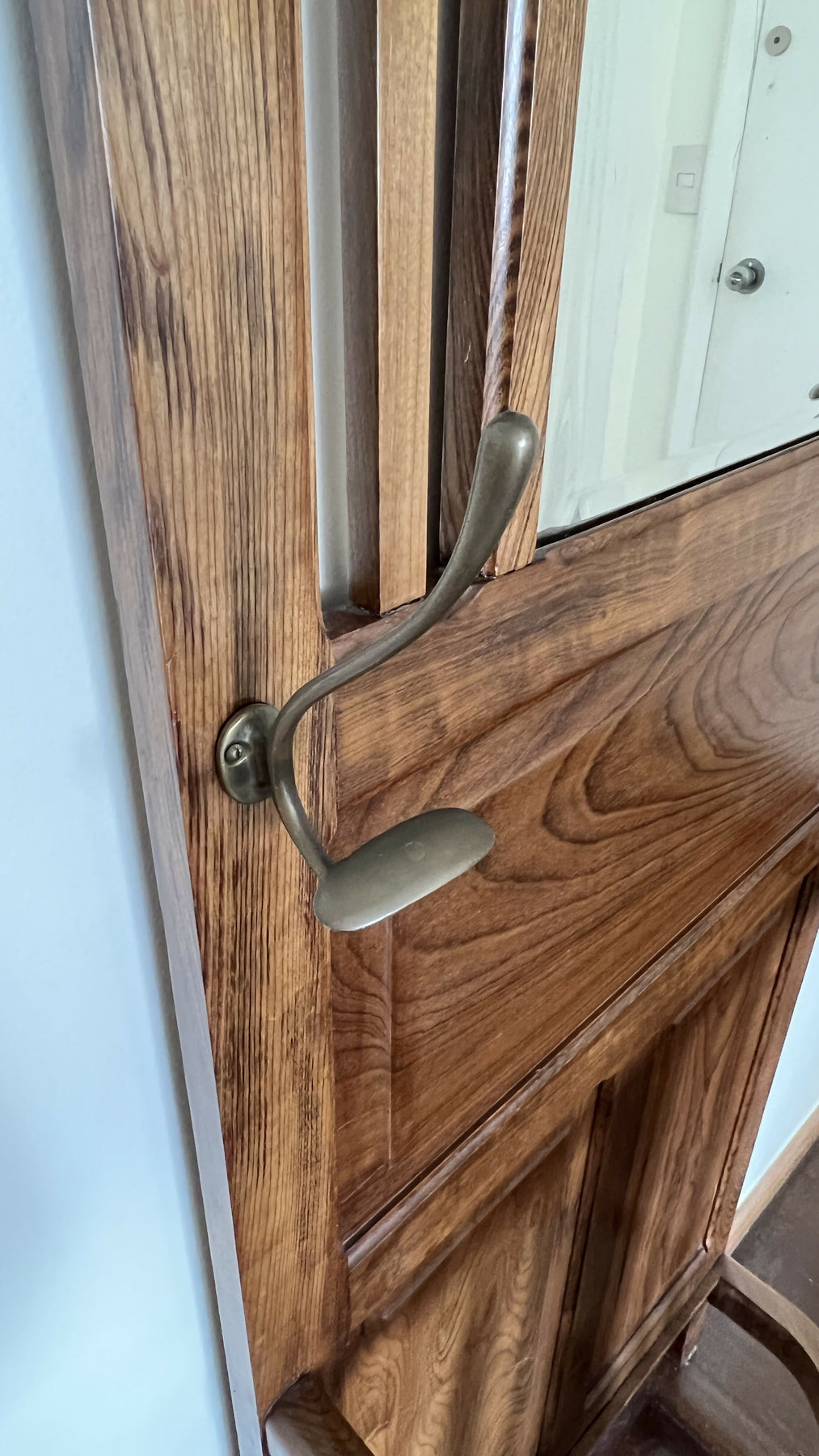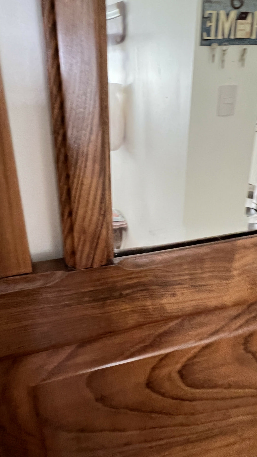 Acabamento artesanal, madeira nobre (provavelmente imbuia ou similar)