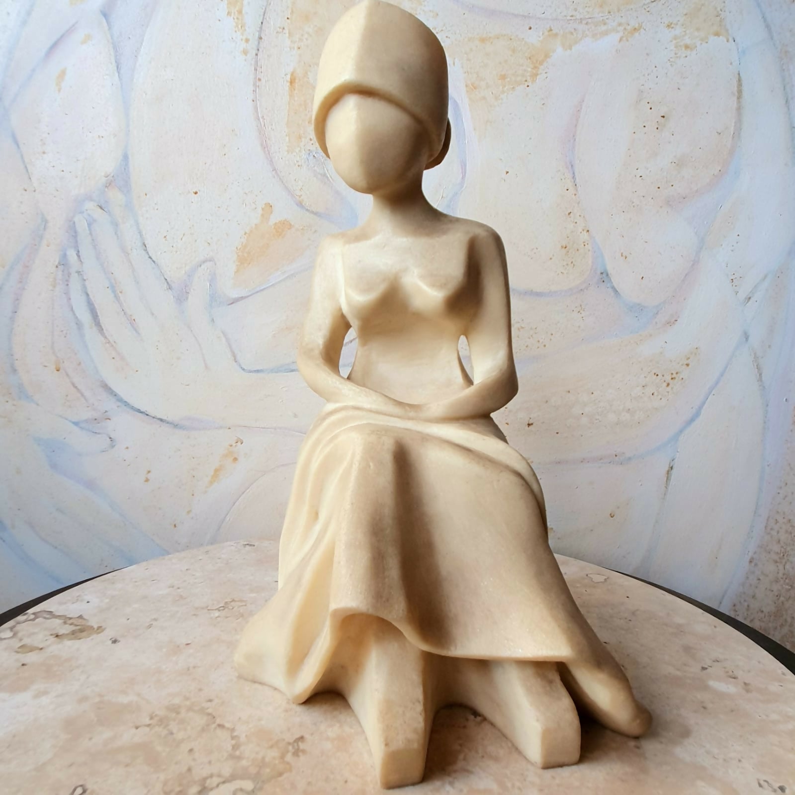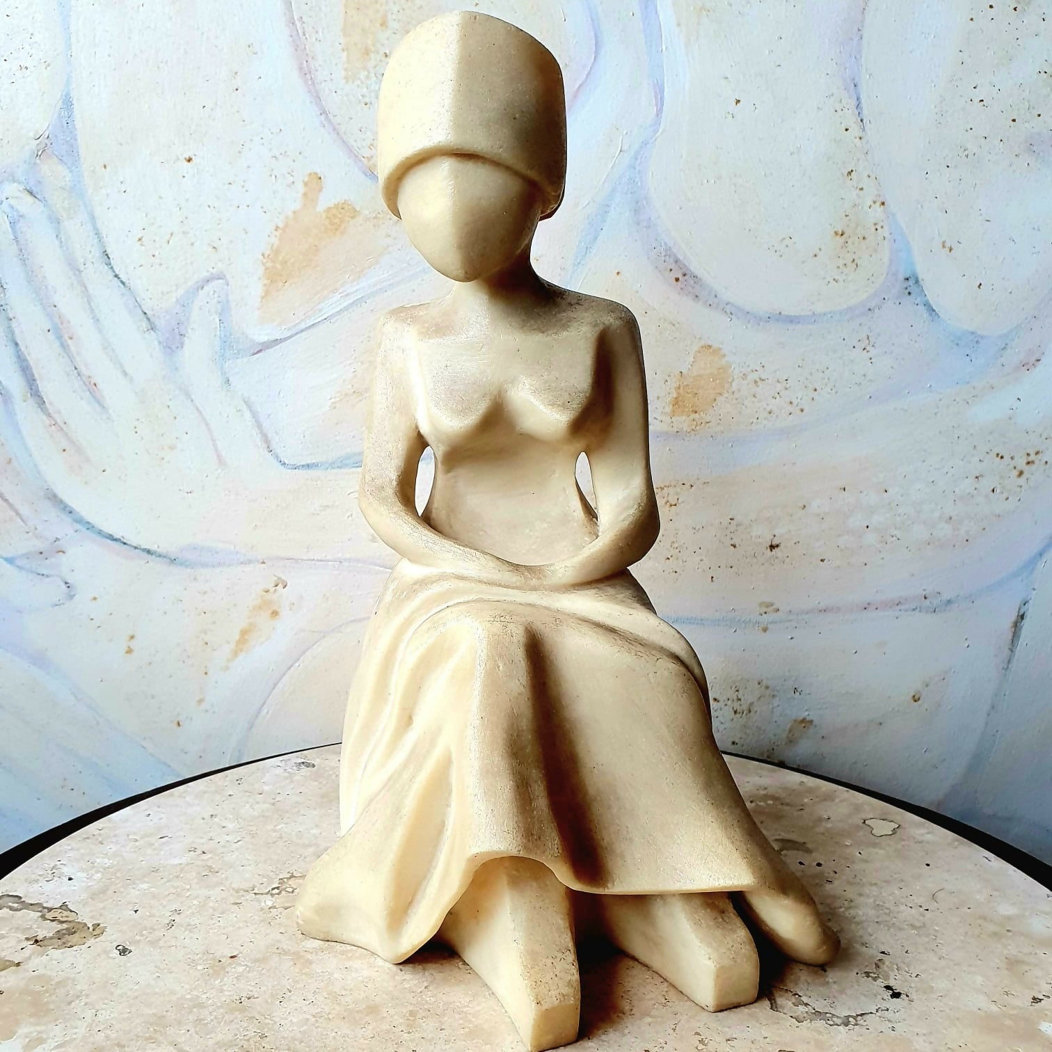 Escultura em resina e pasta de pedra representando "Figura Feminina " de Myrtis R.B.de Leoni Ramos, artista plástica carioca.