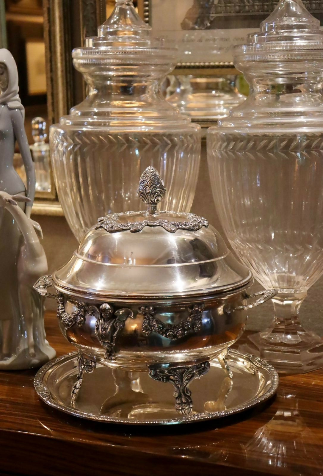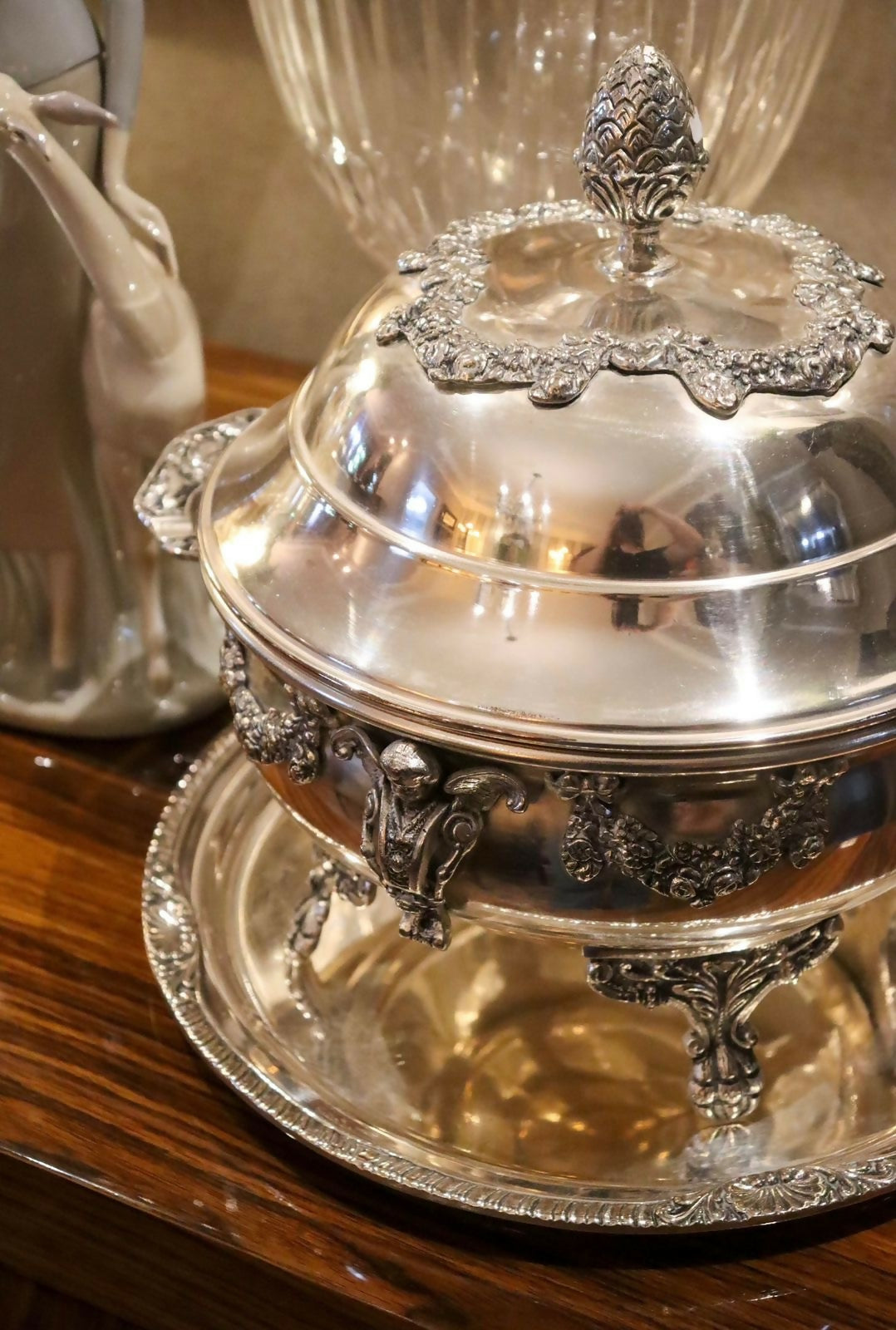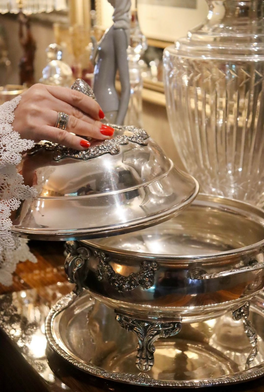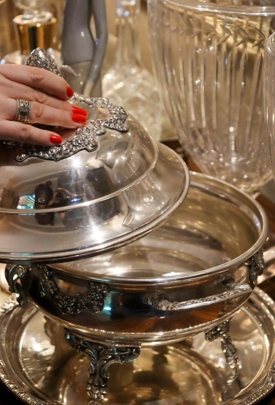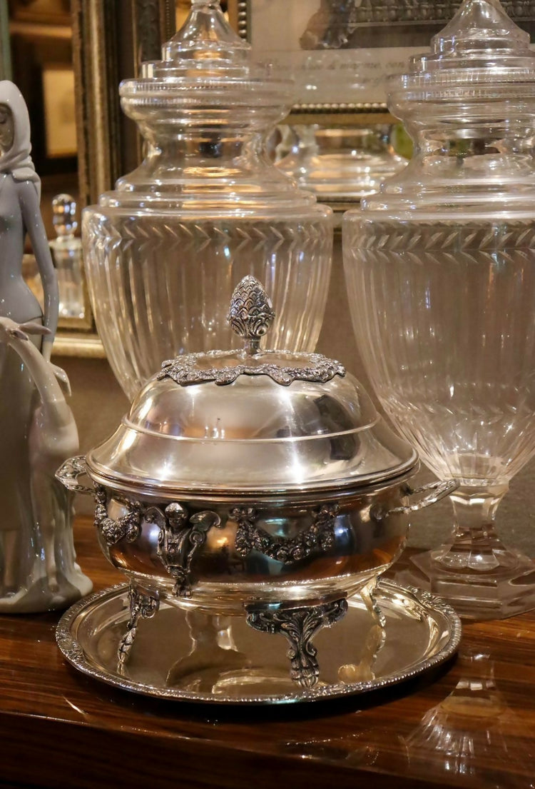 legumier / terrina de serviço une funcionalidade e refinamento, sendo ideal para servir à mesa ou compor aparadores e centros de mesa sofisticados. O trabalho em relevo e o acabamento polido refletem a tradição das grandes mesas europeias, evocando o luxo atemporal do serviço clássico. Espessurado a prata