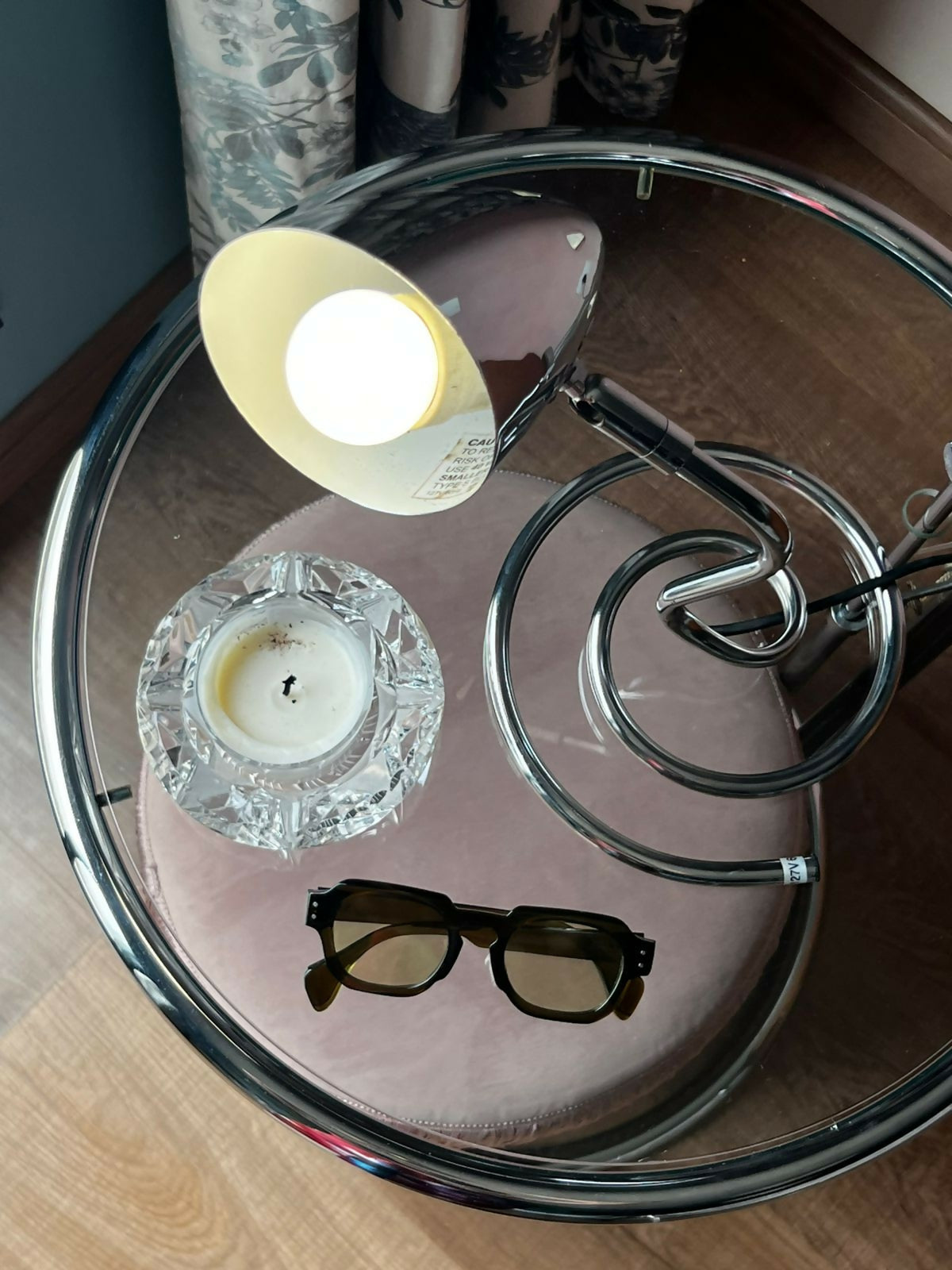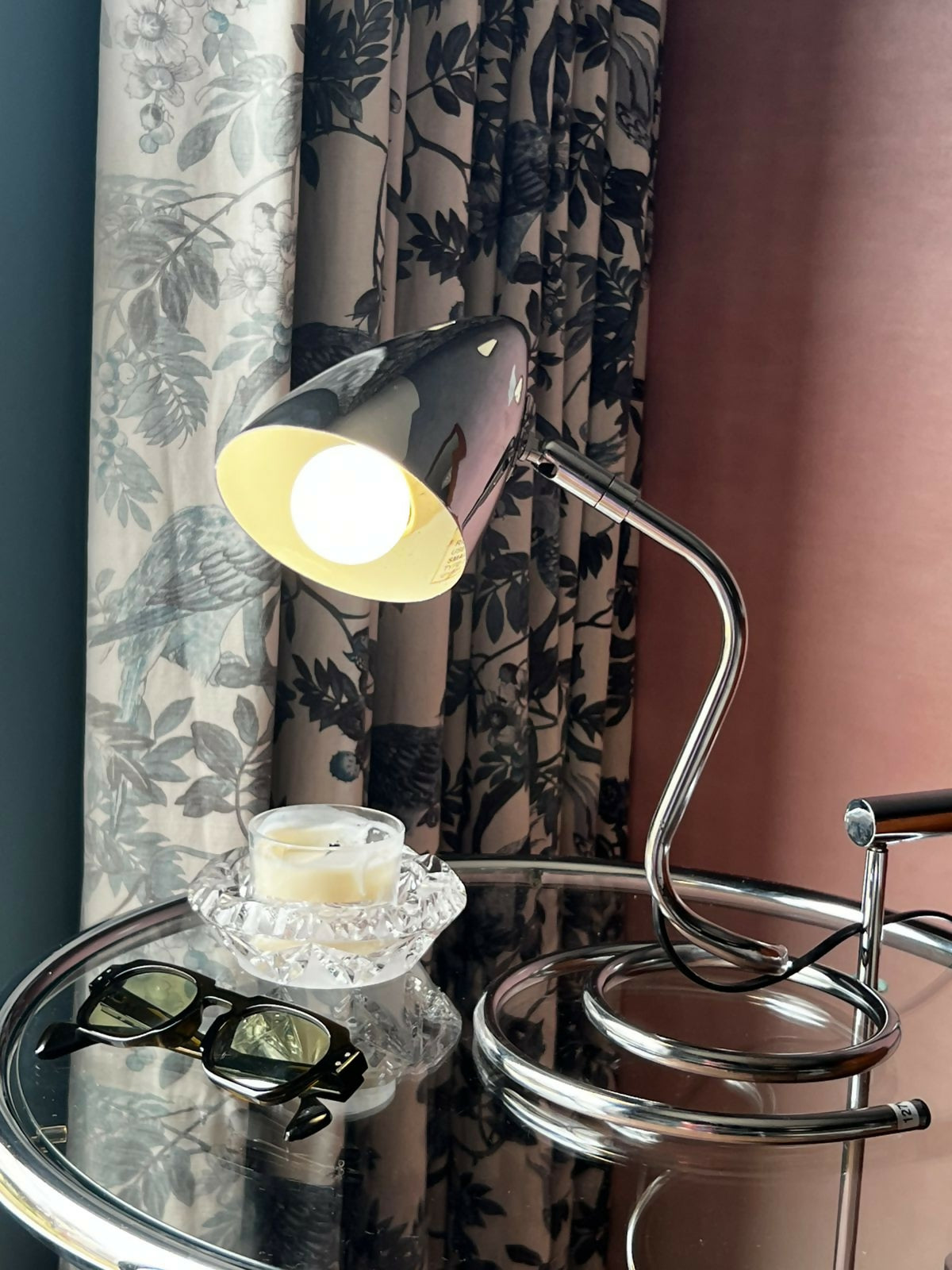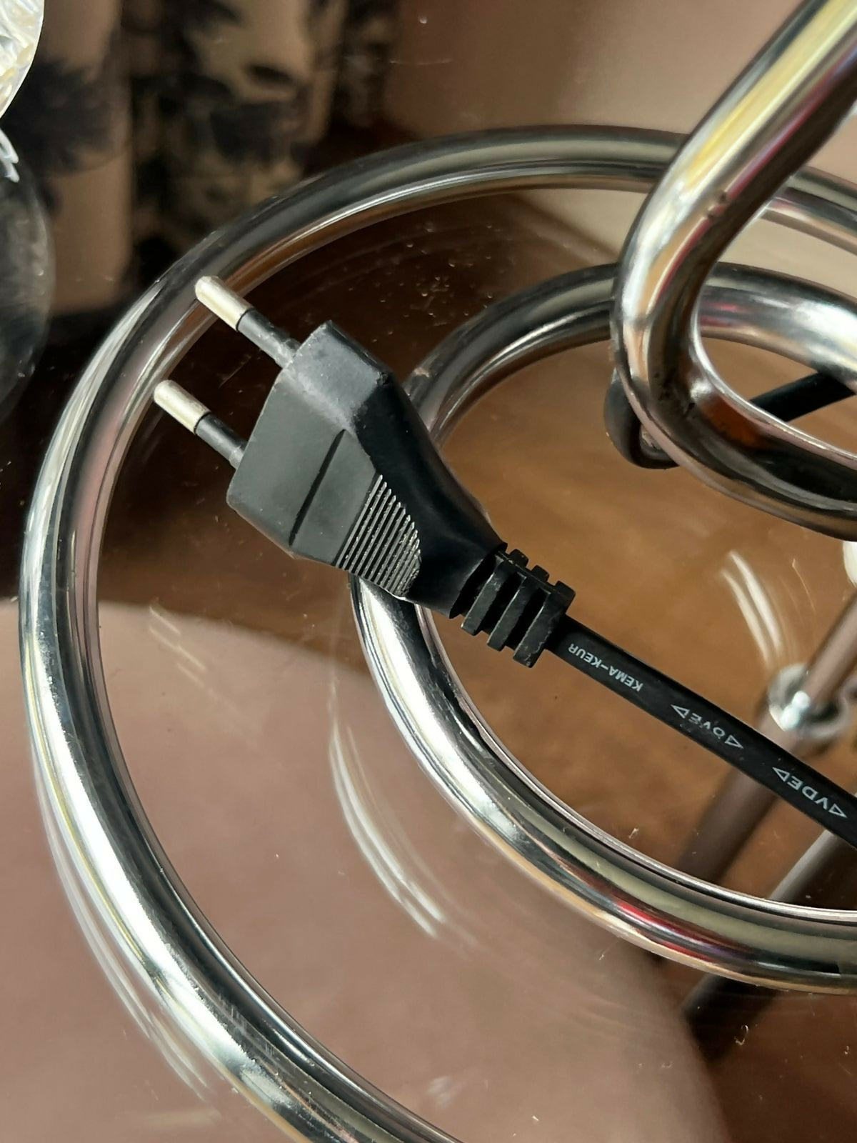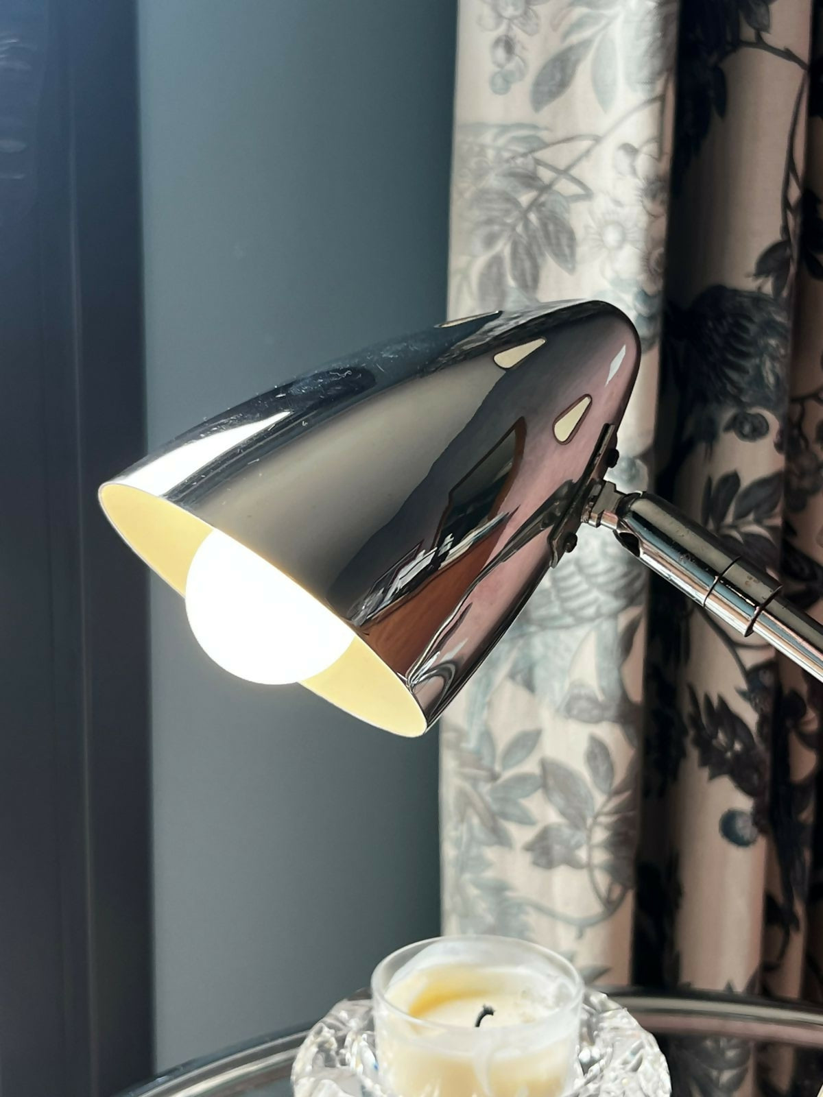 Luminária cromada estilo space age, fabricada nos anos 80.