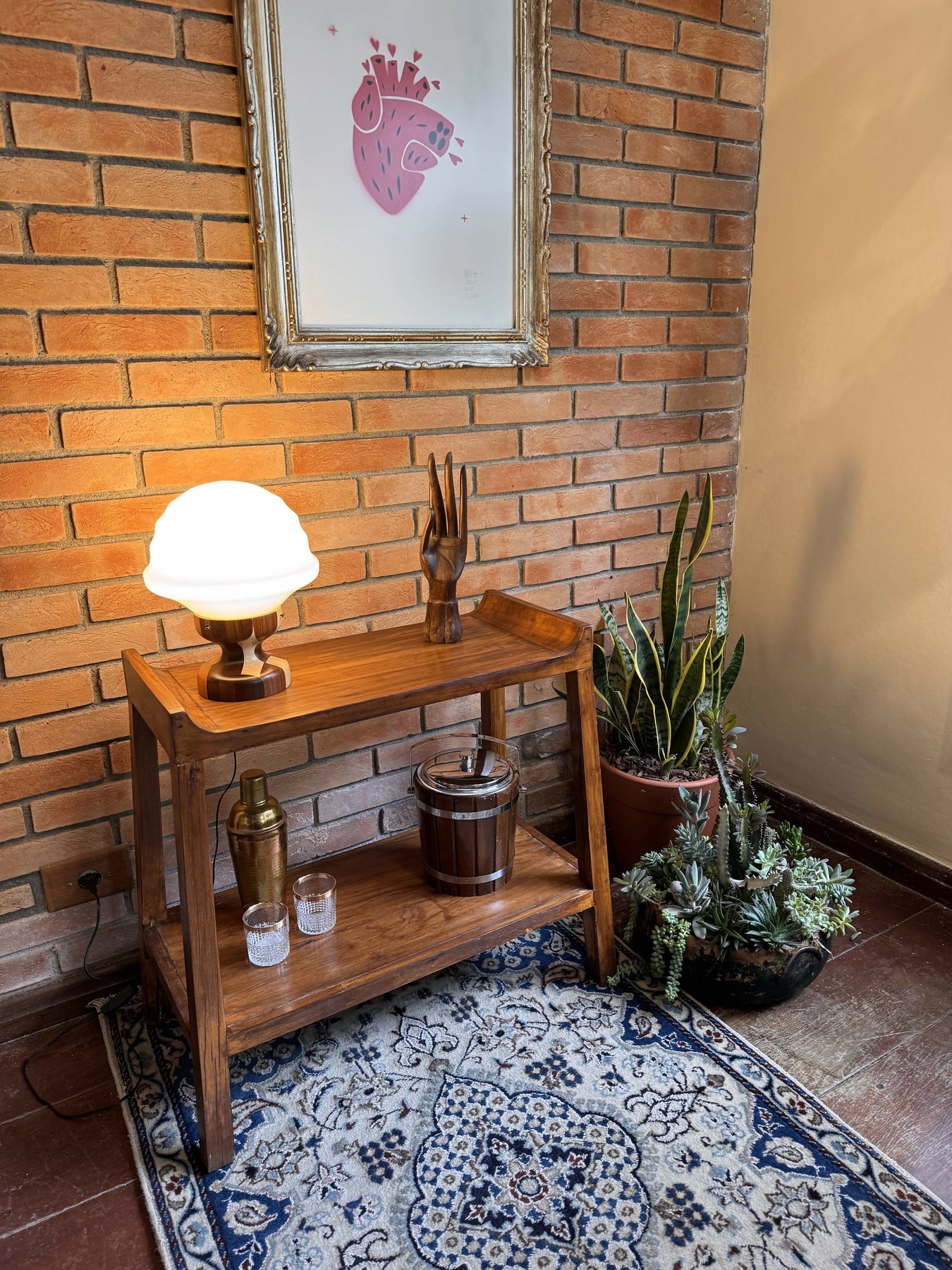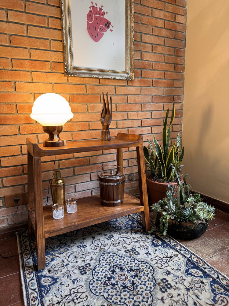 Belíssima mesa de apoio entalhada em madeira nobre maciça. 66 x 72 x 37