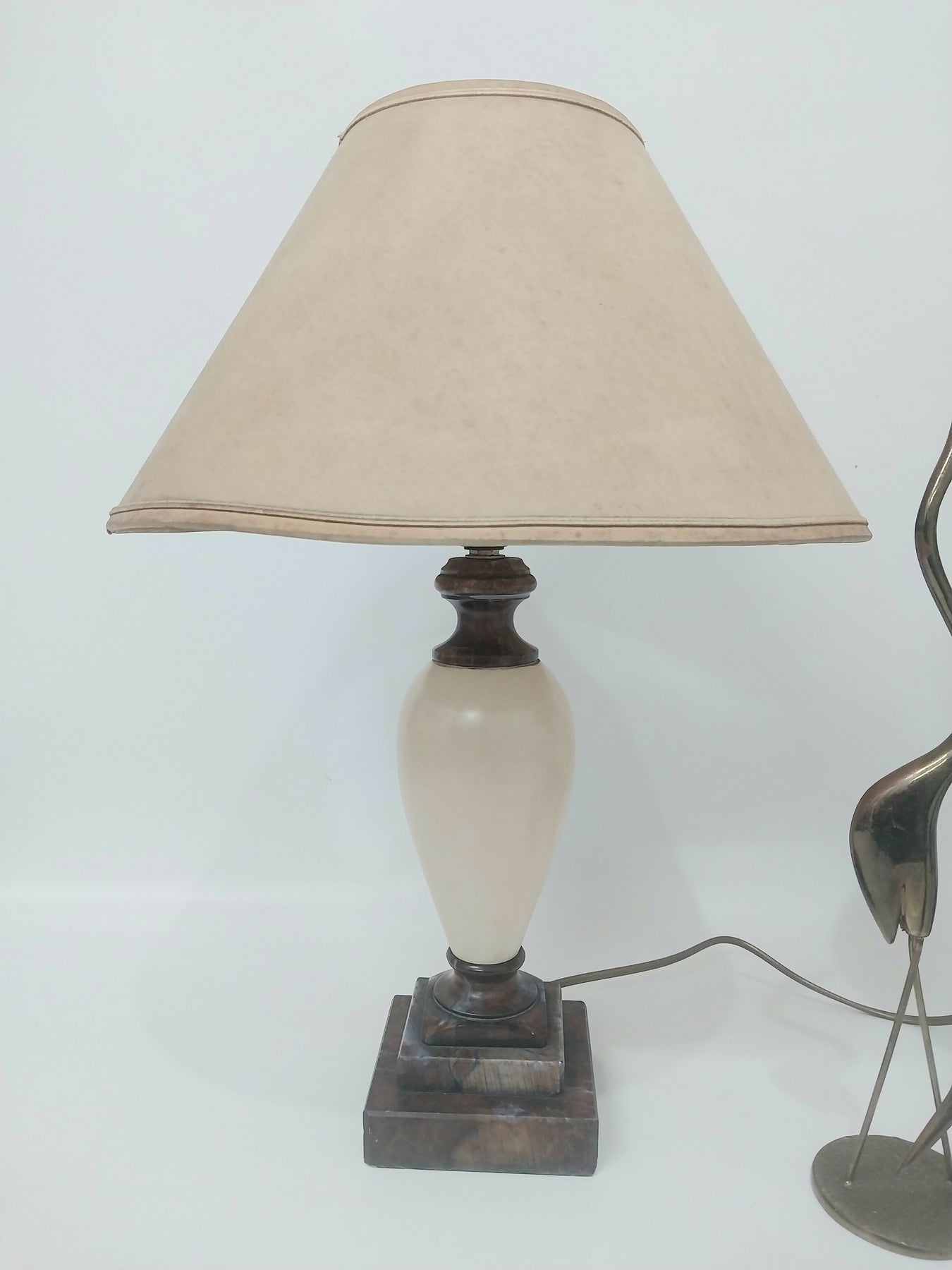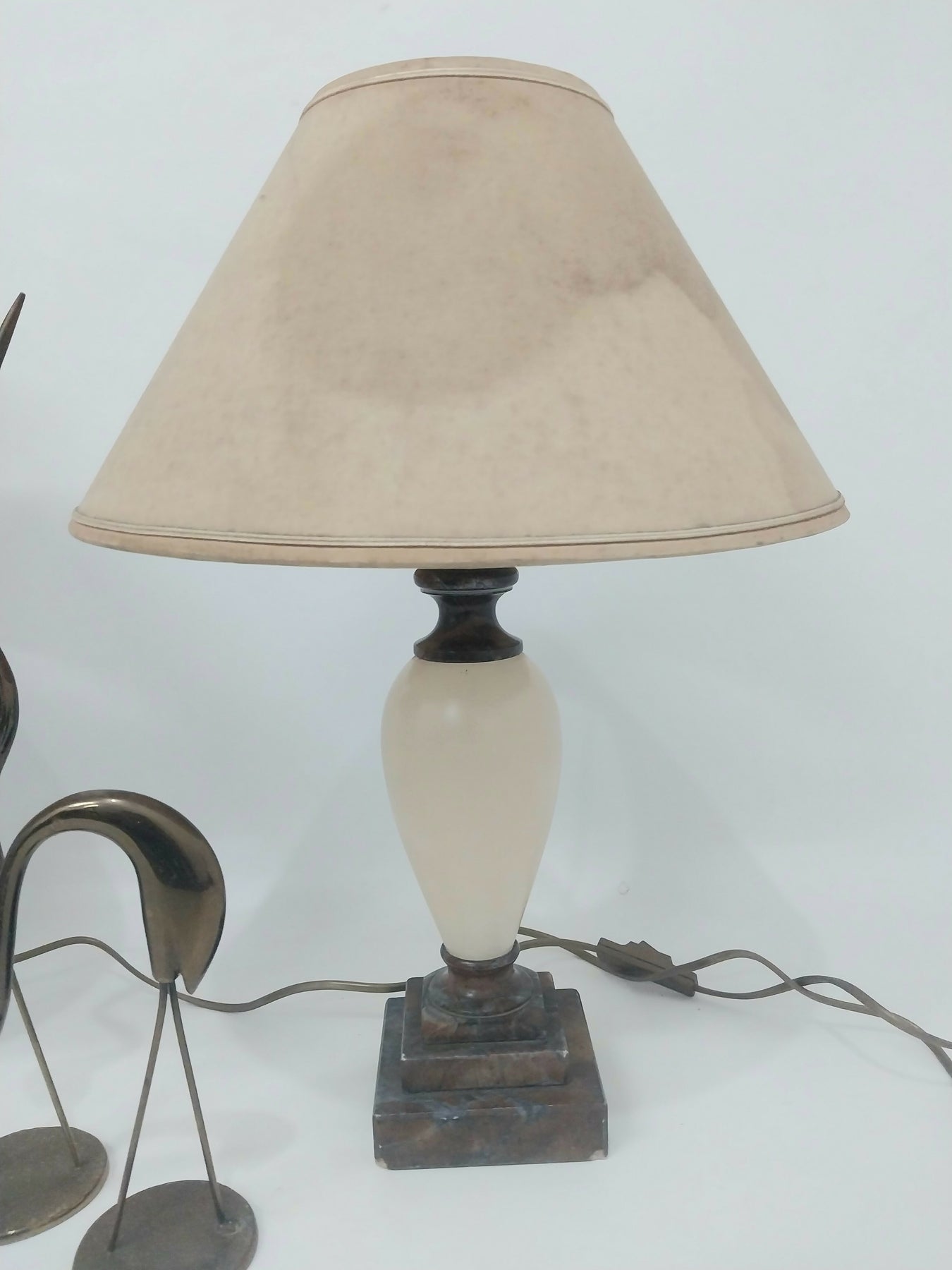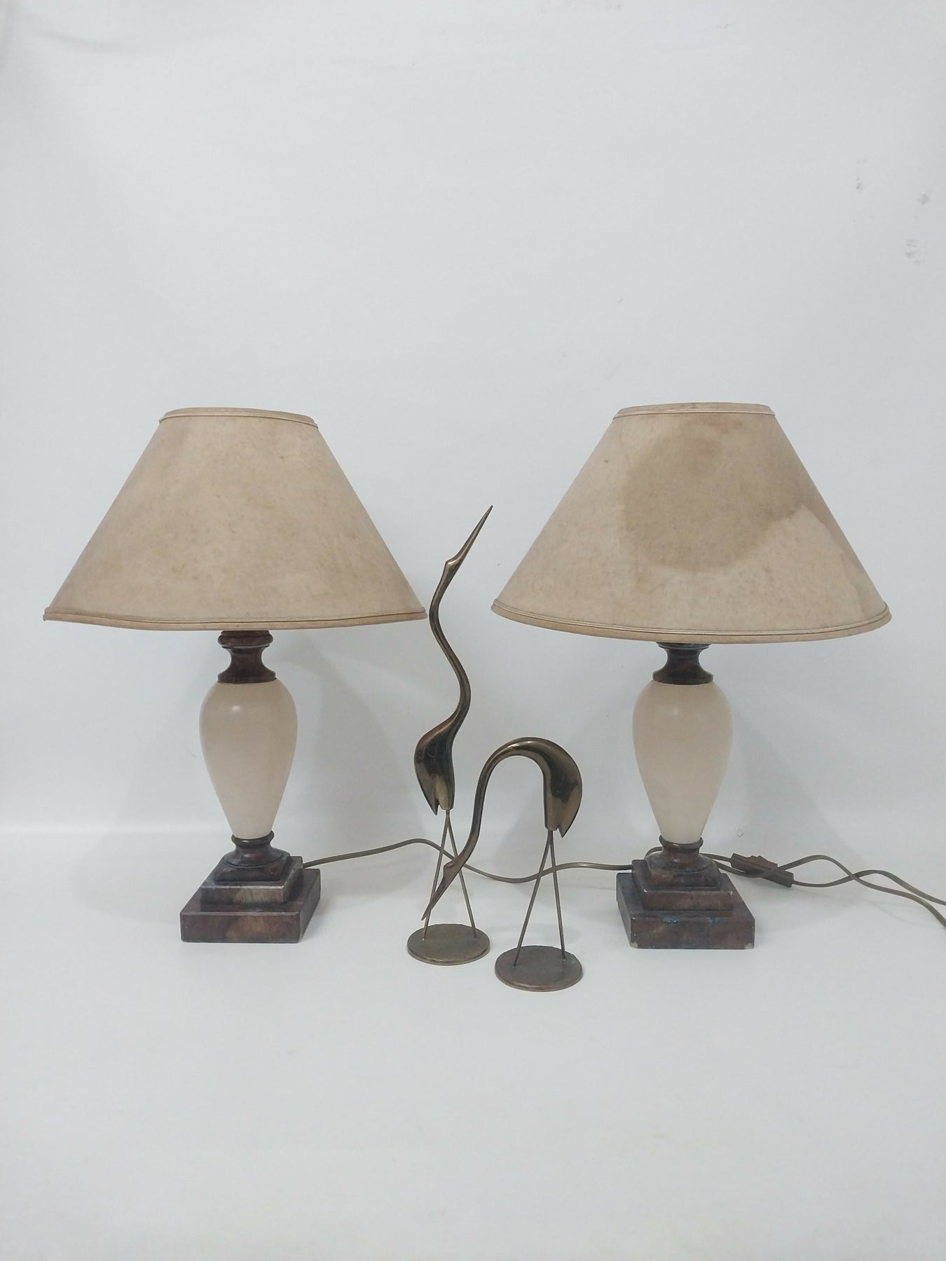 Requintado par de abajur espanhol em Alabastro e Mármore (manufatura Alabastro Aveiro), bases robustas em muito bom estado com algumas marcas do tempo. Cúpulas em tecido com marcas presentes.