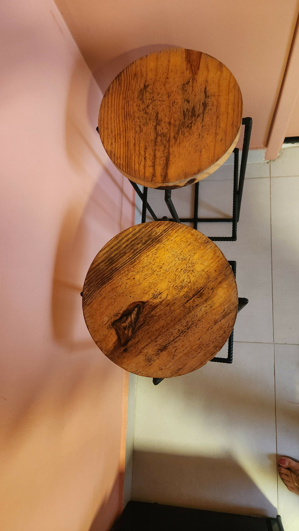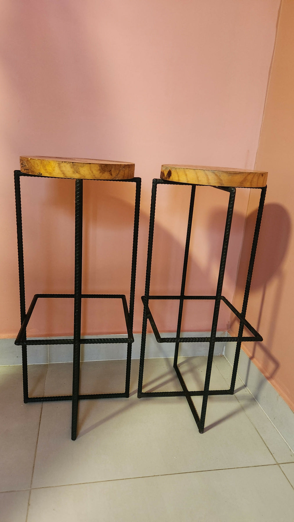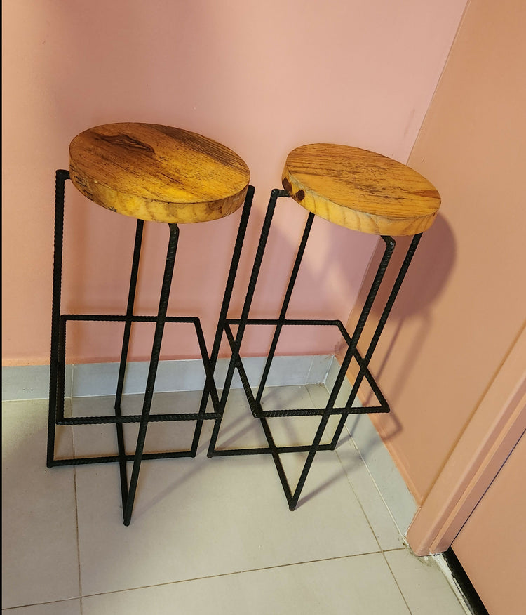 Conjunto de banquetas madeira maciça com pés de ferro feito por designer