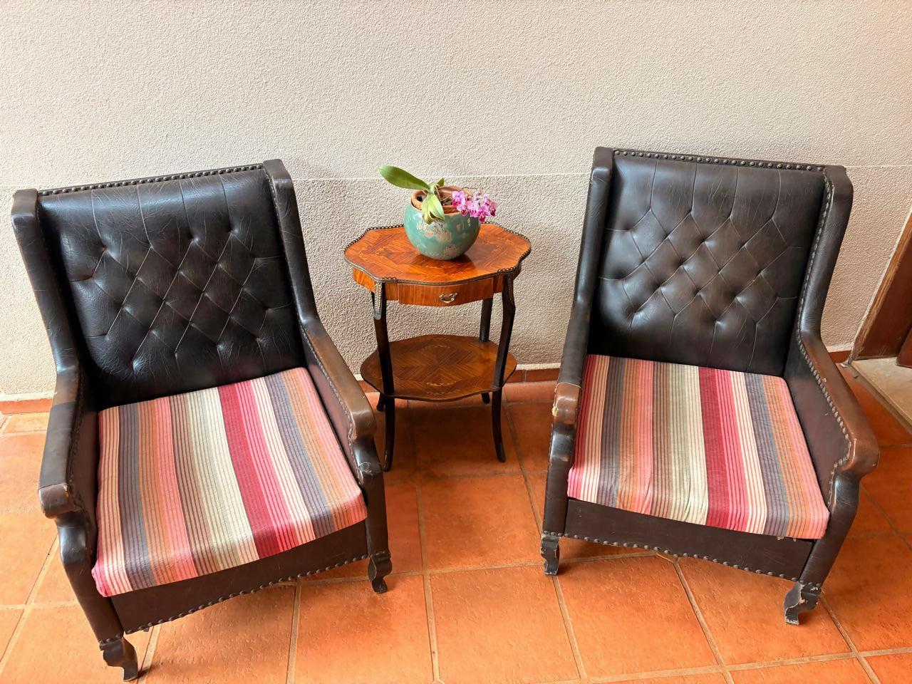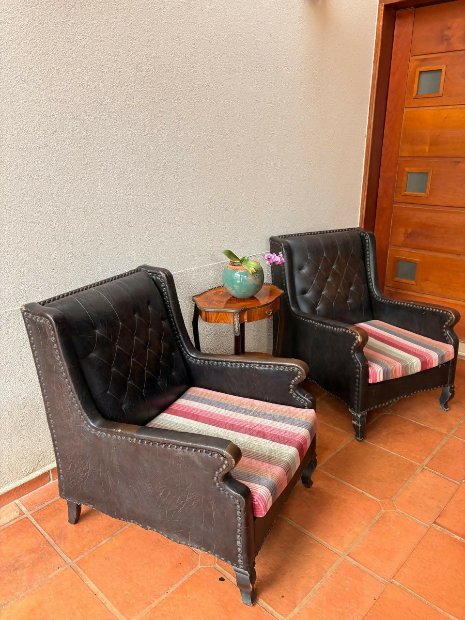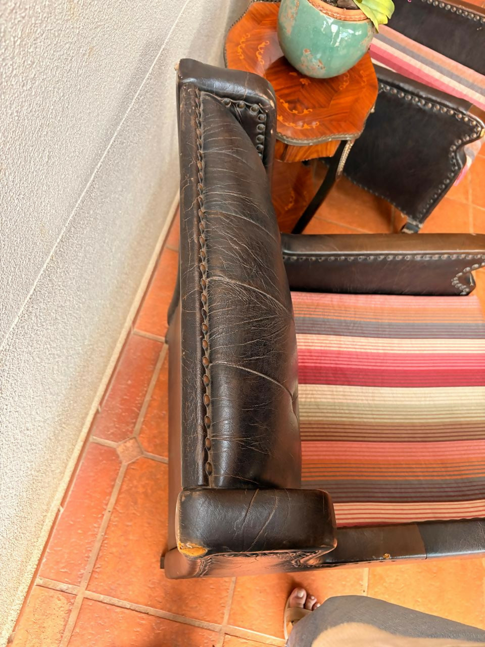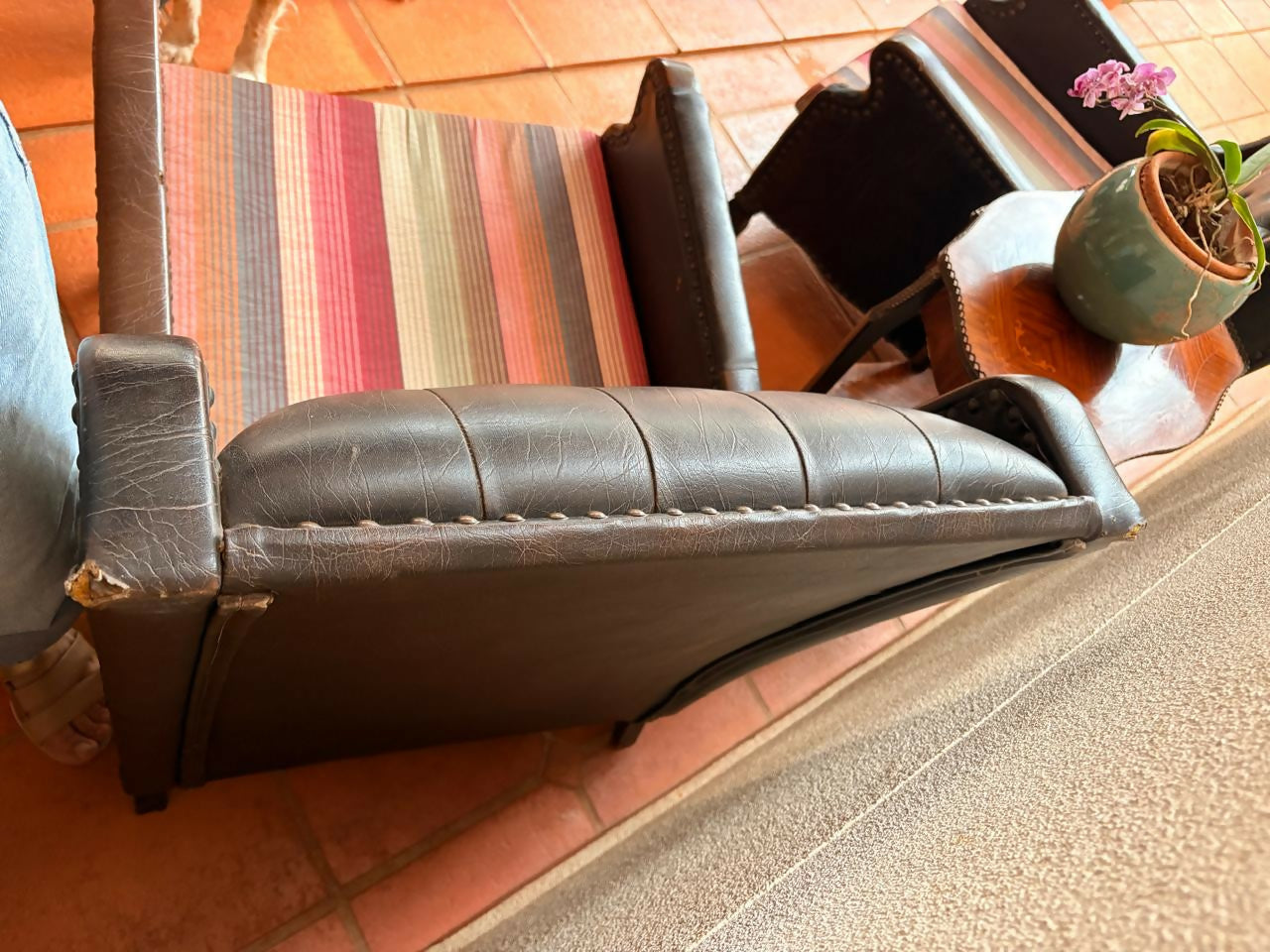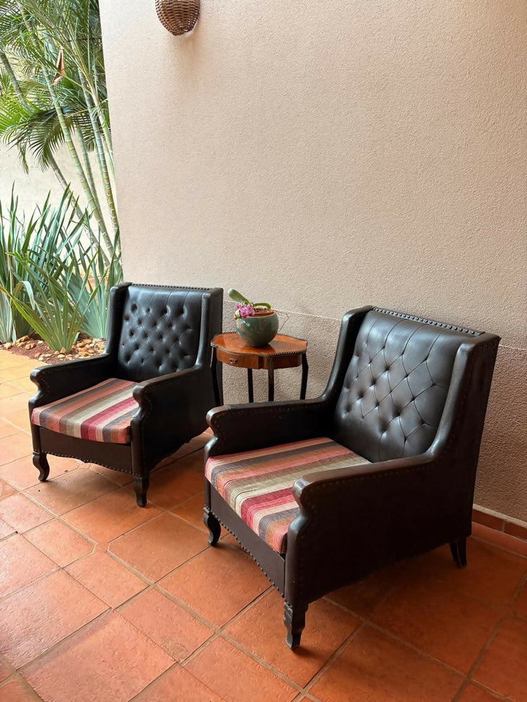 Par de poltronas em couro, década de 60, bem conservadas. A estrutura é forte e robusta, os pés são um charme à parte. É um lindo conjunto que vai deixar seu ambiente elegante, aconchegante e muito confortável.