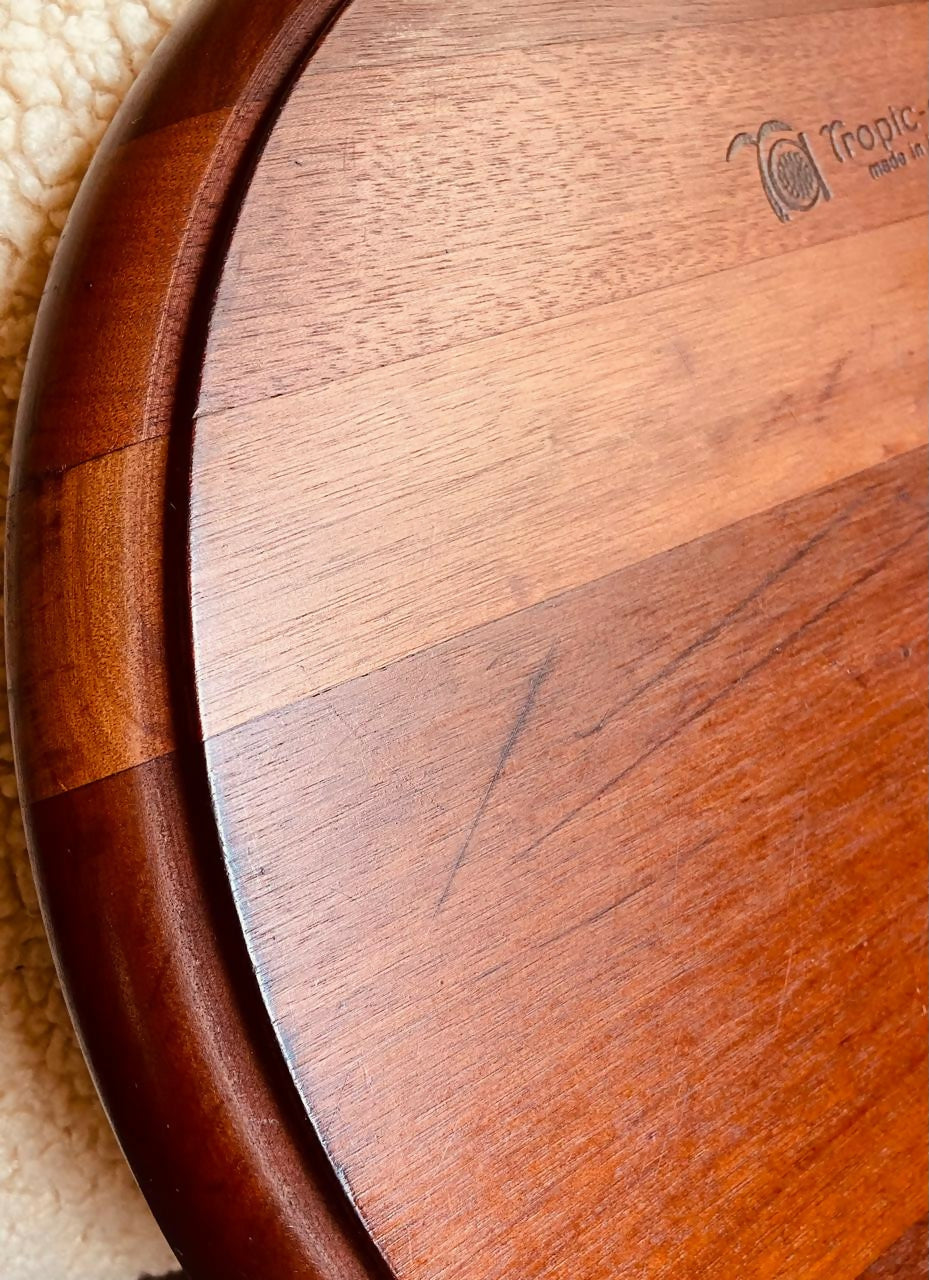 A cerâmica é fixa, a madeira é nobre e o desenho é típico da época em que a Tropic Art apostava em peças utilitárias com identidade própria.