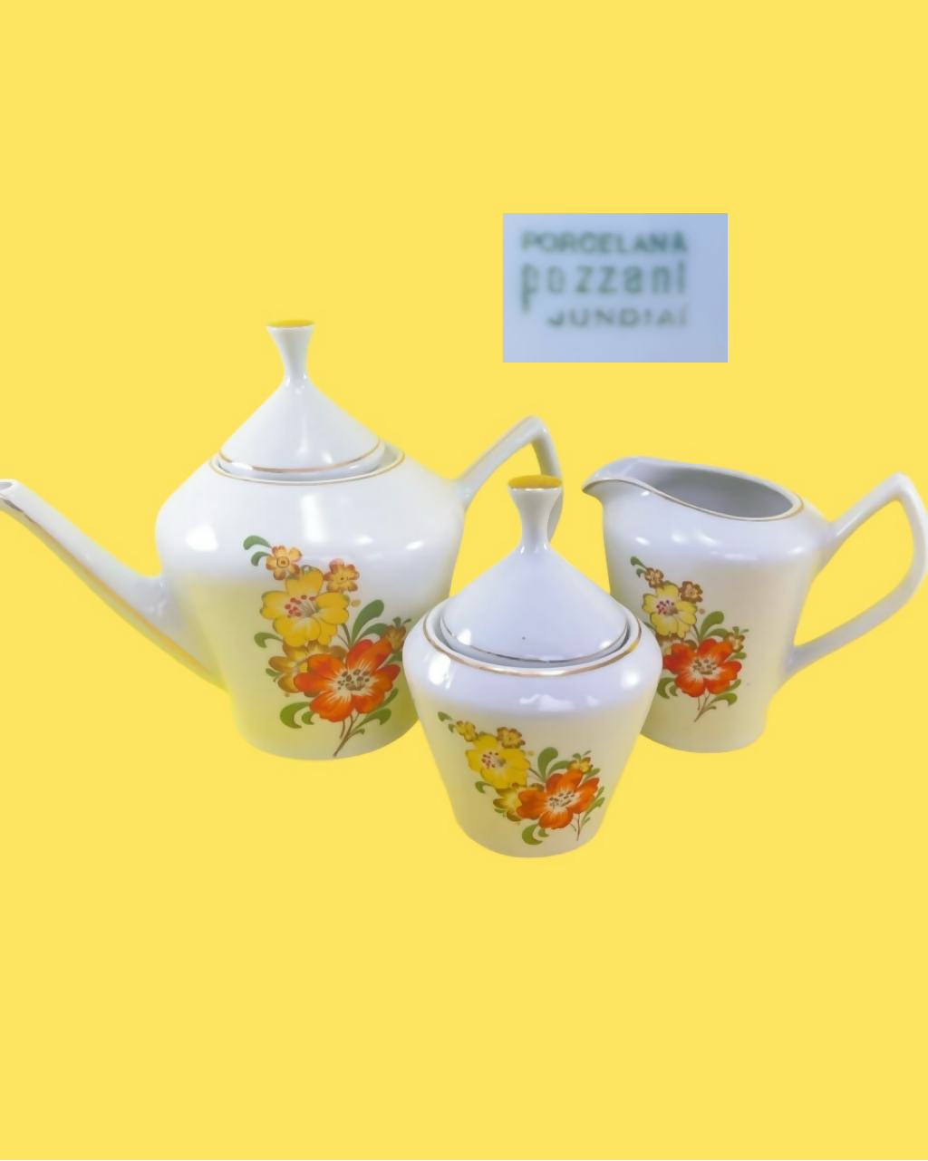Jogo com 1 bule de chá, 1 leiteira e 1 açucareiro