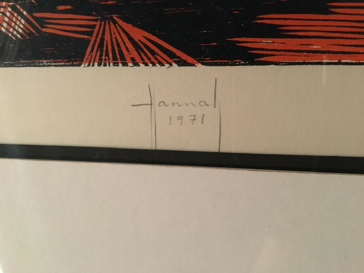 Quadro - xilogravura P.E. Hanna Brandt. Moldurado com vidro.