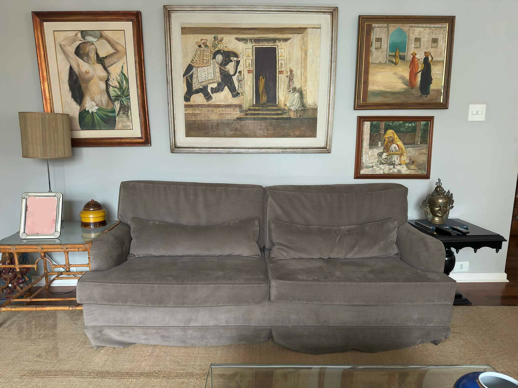 Sofá 3 lugares em veludo cinza