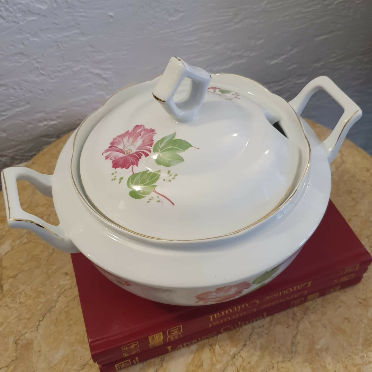 Sopeira em porcelana vintage Steatita.  Branca com lindo floral, muito preservada,  com leve desgaste nas dourações.