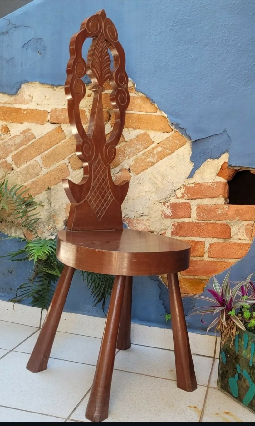 Antiga cadeira, madeira imbuia com espaldar alto.