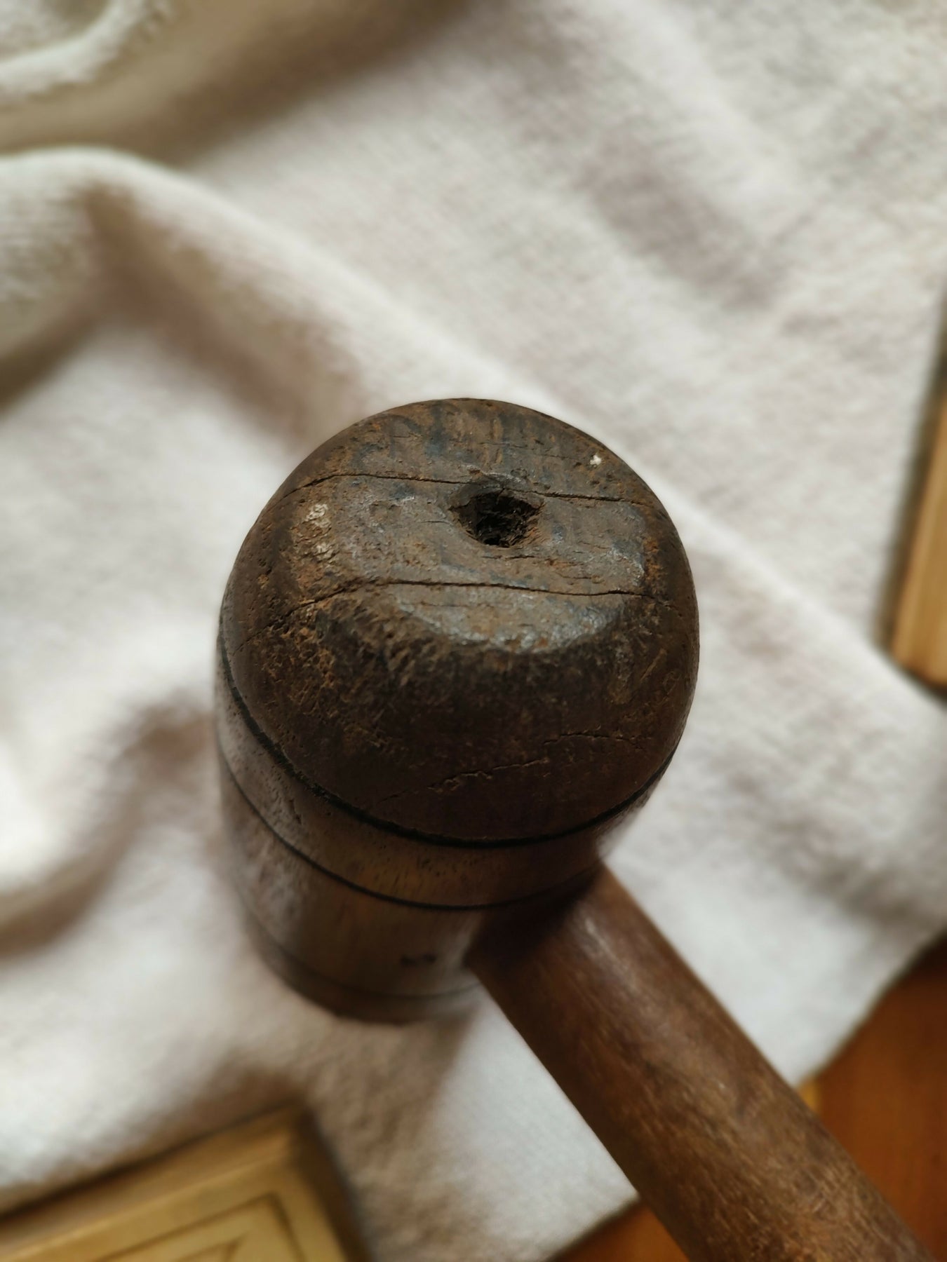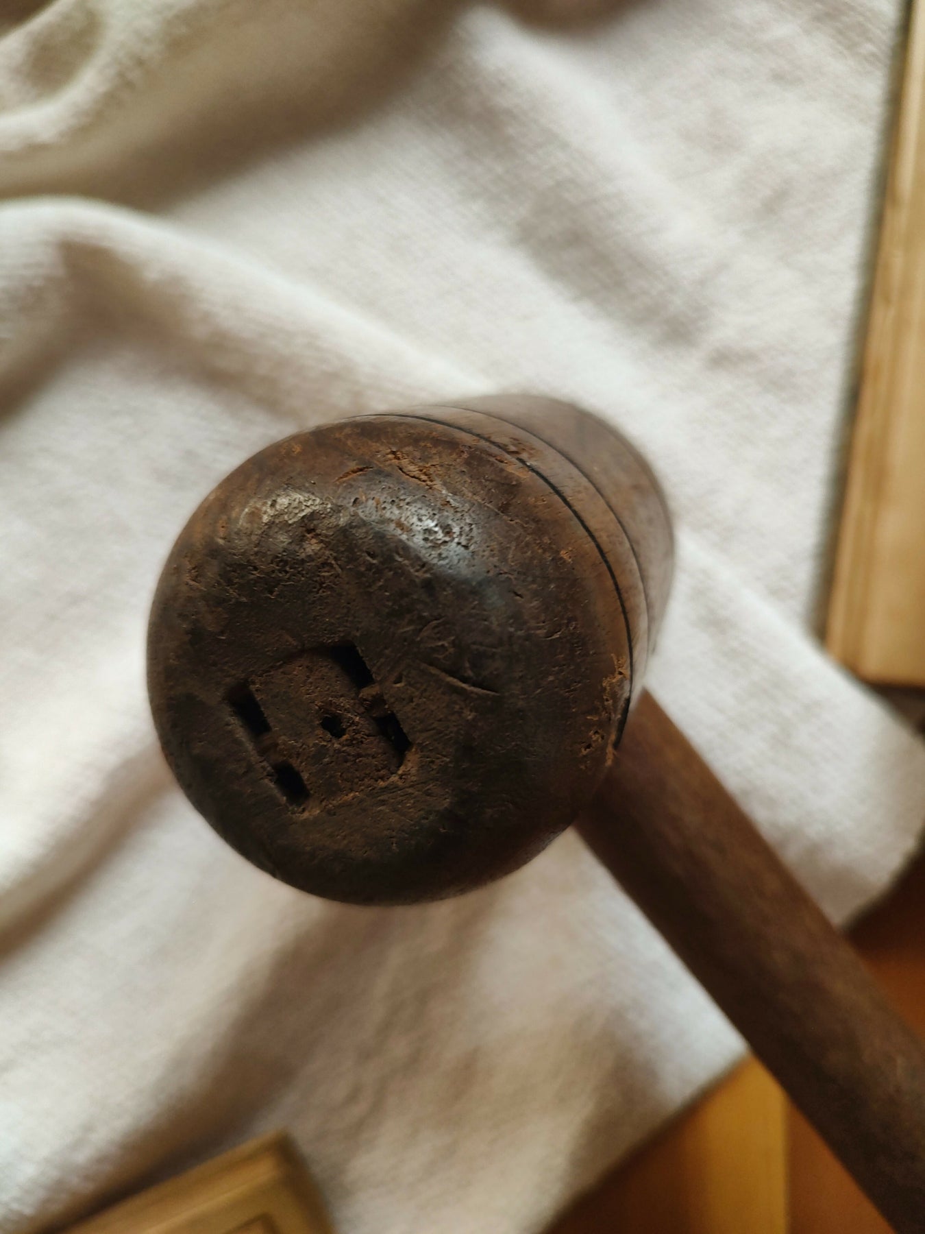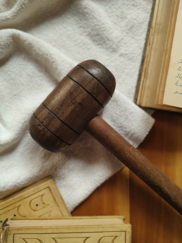 Antigo martelo em madeira maciça