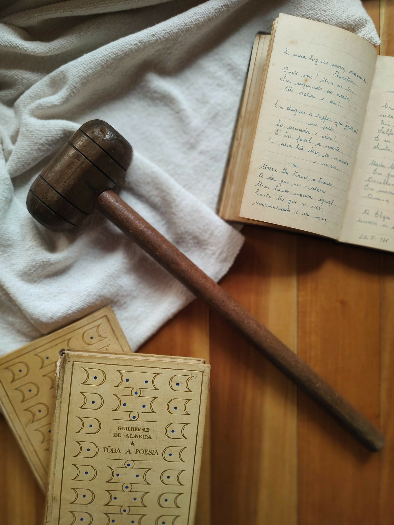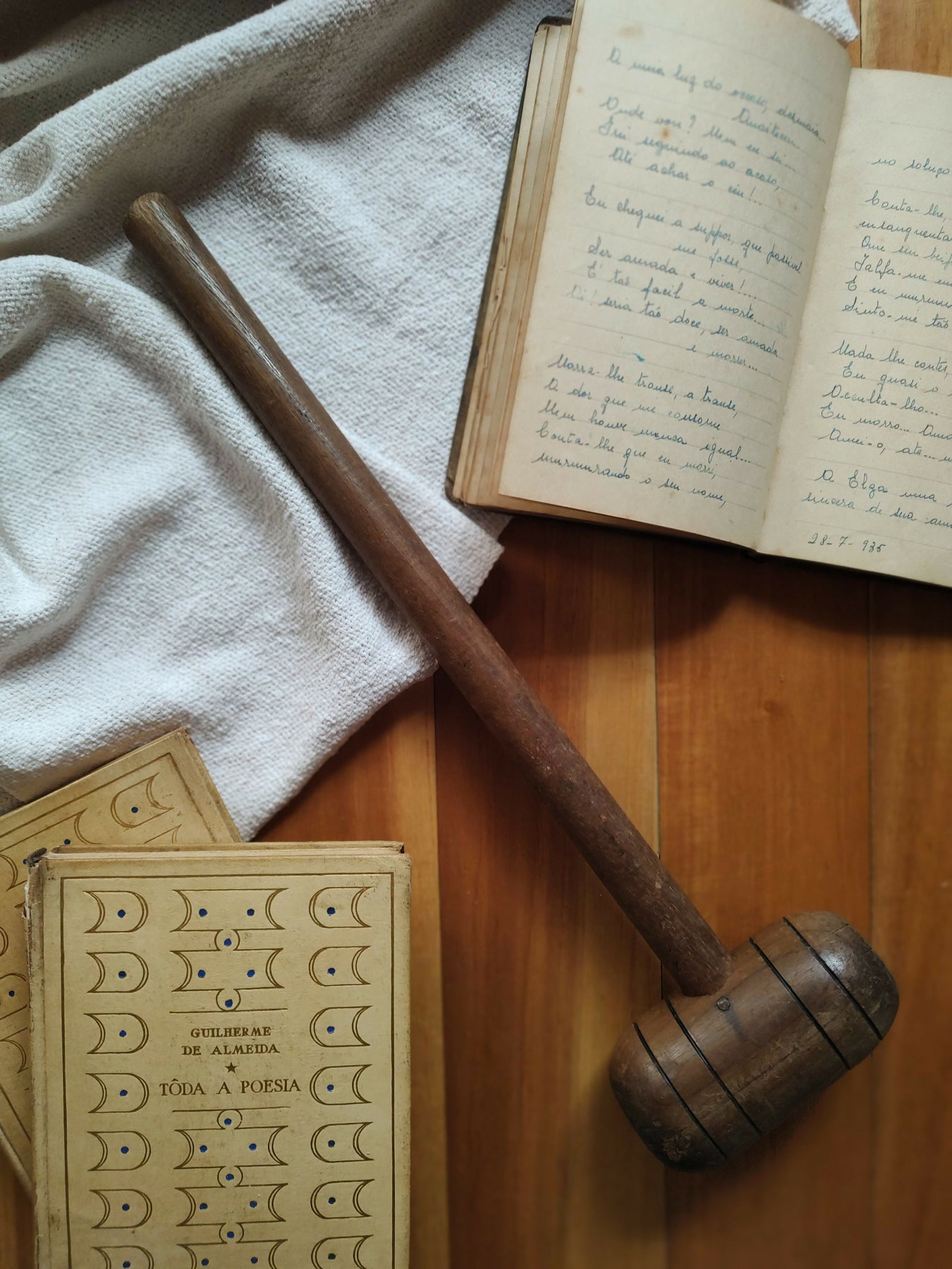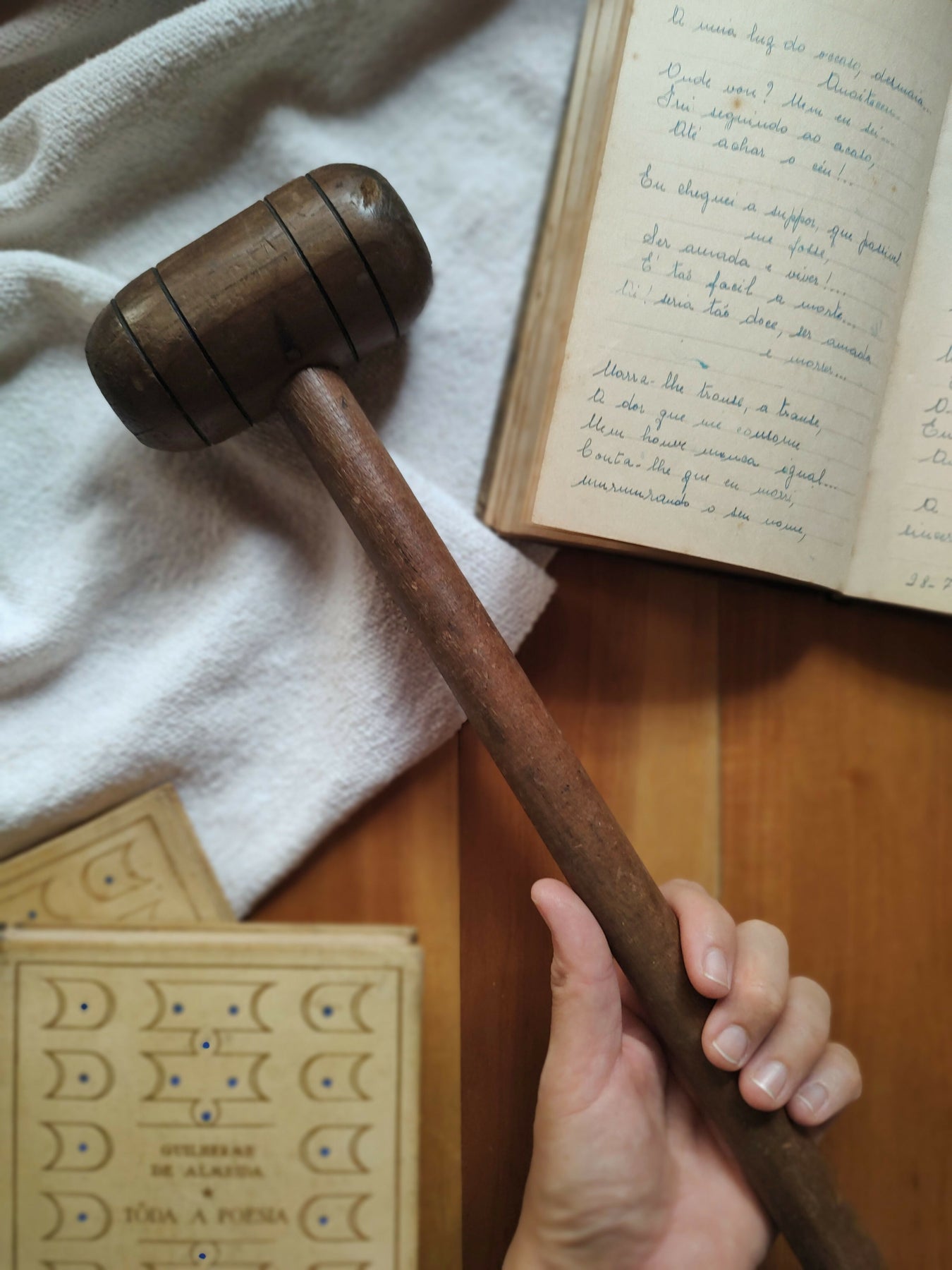 Antigo martelo em madeira maciça