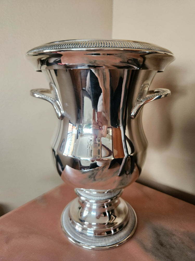 Lindo balde para gelo e garrafas de bebidas em prata 100 meridional. Para manter suas bebidas geladas com elegância e sofisticação.