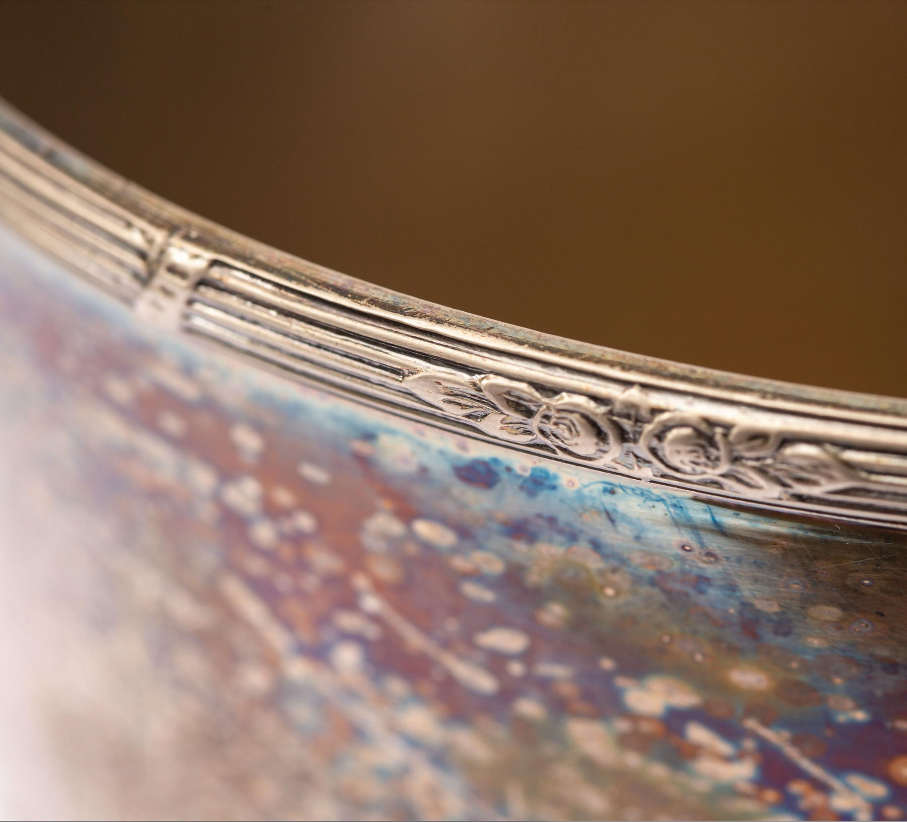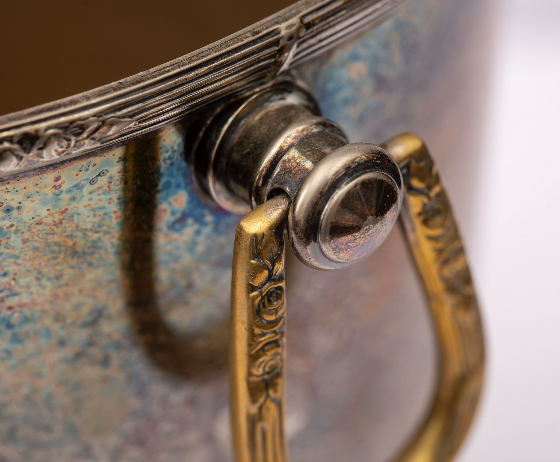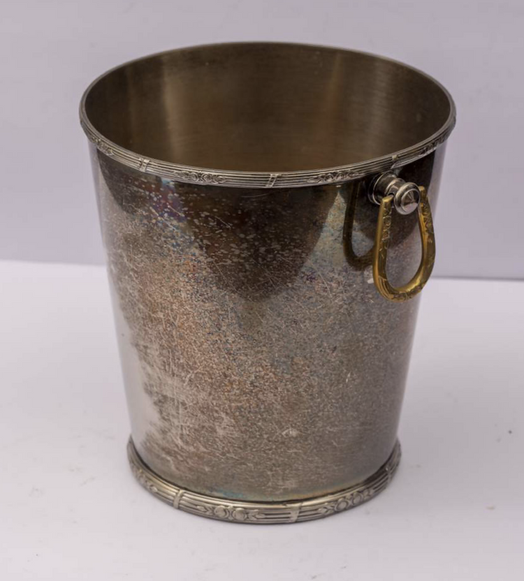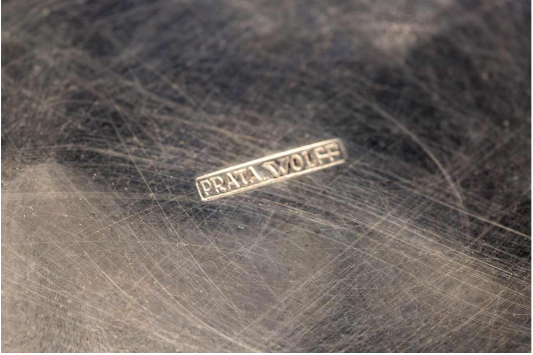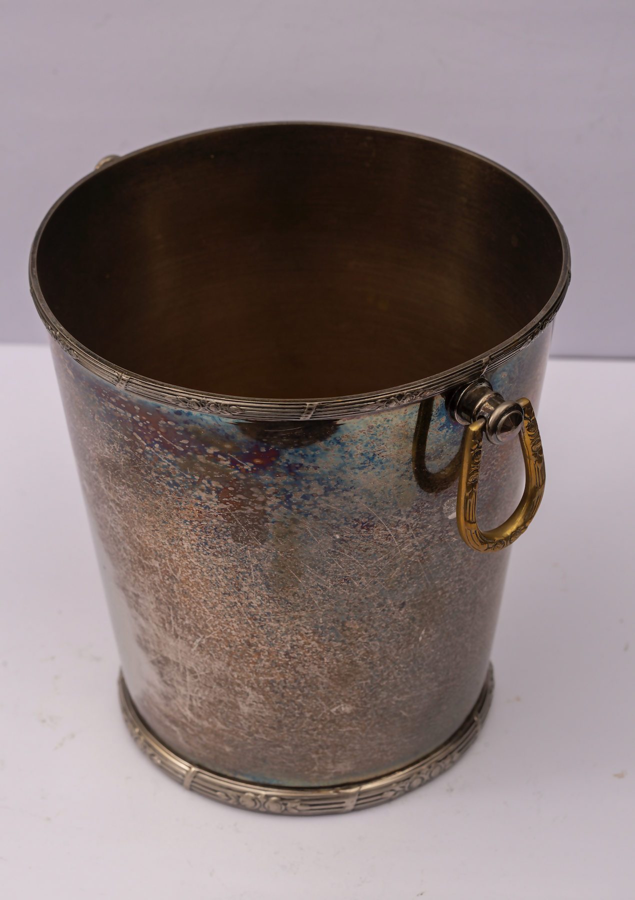 Balde para gelo em prata 90 Wolff, de corpo cilíndrico, base estável e alça móvel lateral. Com uma  proporção clássica e acabamento característico desse tipo de produção, a peça tem a marcação Wolff visível na base. Adquirida em meados dos anos 80, não foi possível ainda precisar a data de fabricação, mas a belíssima pátina do tempo que o banho de prata apresenta é prova suficiente de muitos momentos marcantes. Hoje pode ser um objeto tanto funcional, como decorativo, adequado para uso em bar, aparadores ou livre pra usos mais criativos em que a estética seja o vetor predominante.