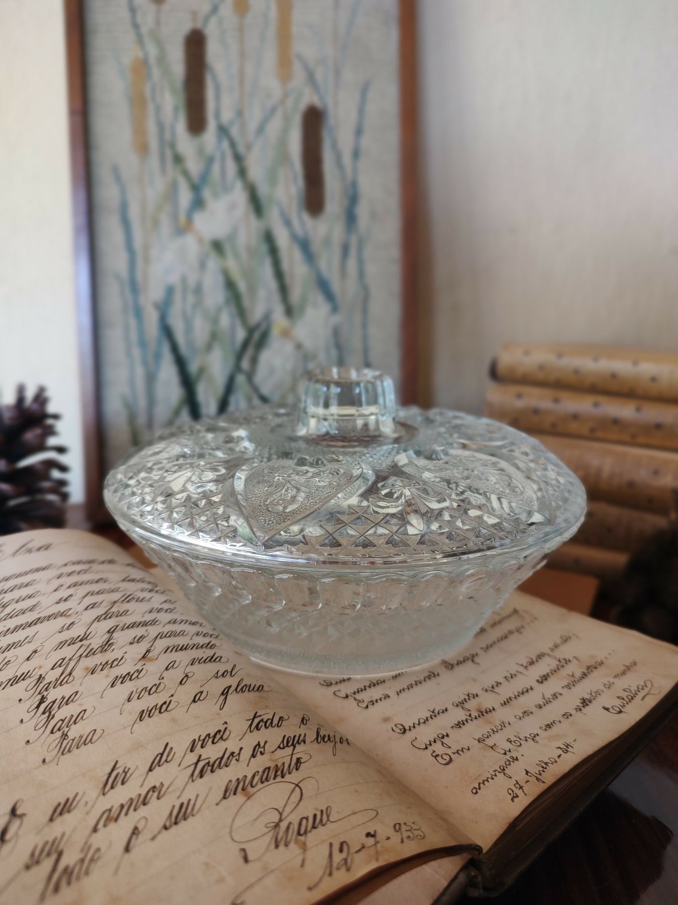 Baleiro / Bomboniere em vidro texturizado com tampa