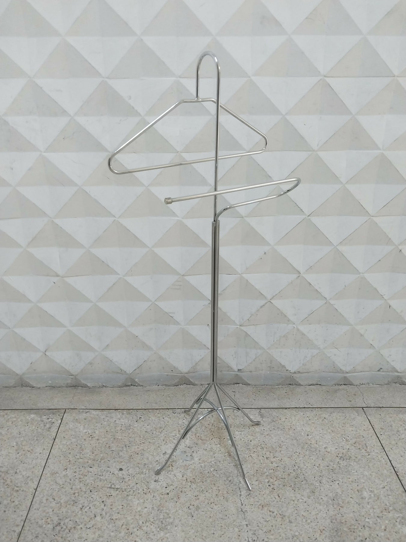 Cabideiro original dos anos 80/90, em metal cromado, resistente e com design clássico. Ideal para quarto, hall de entrada, loja, estúdio ou decoração retrô.