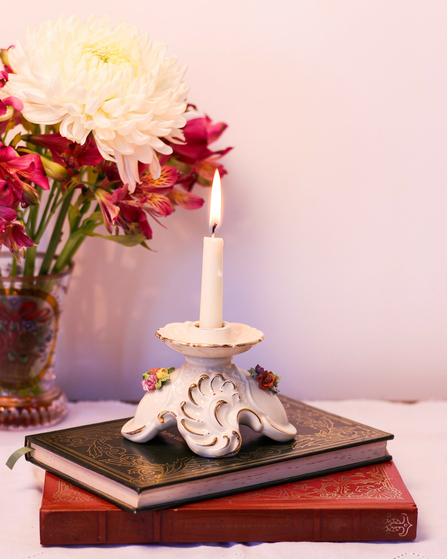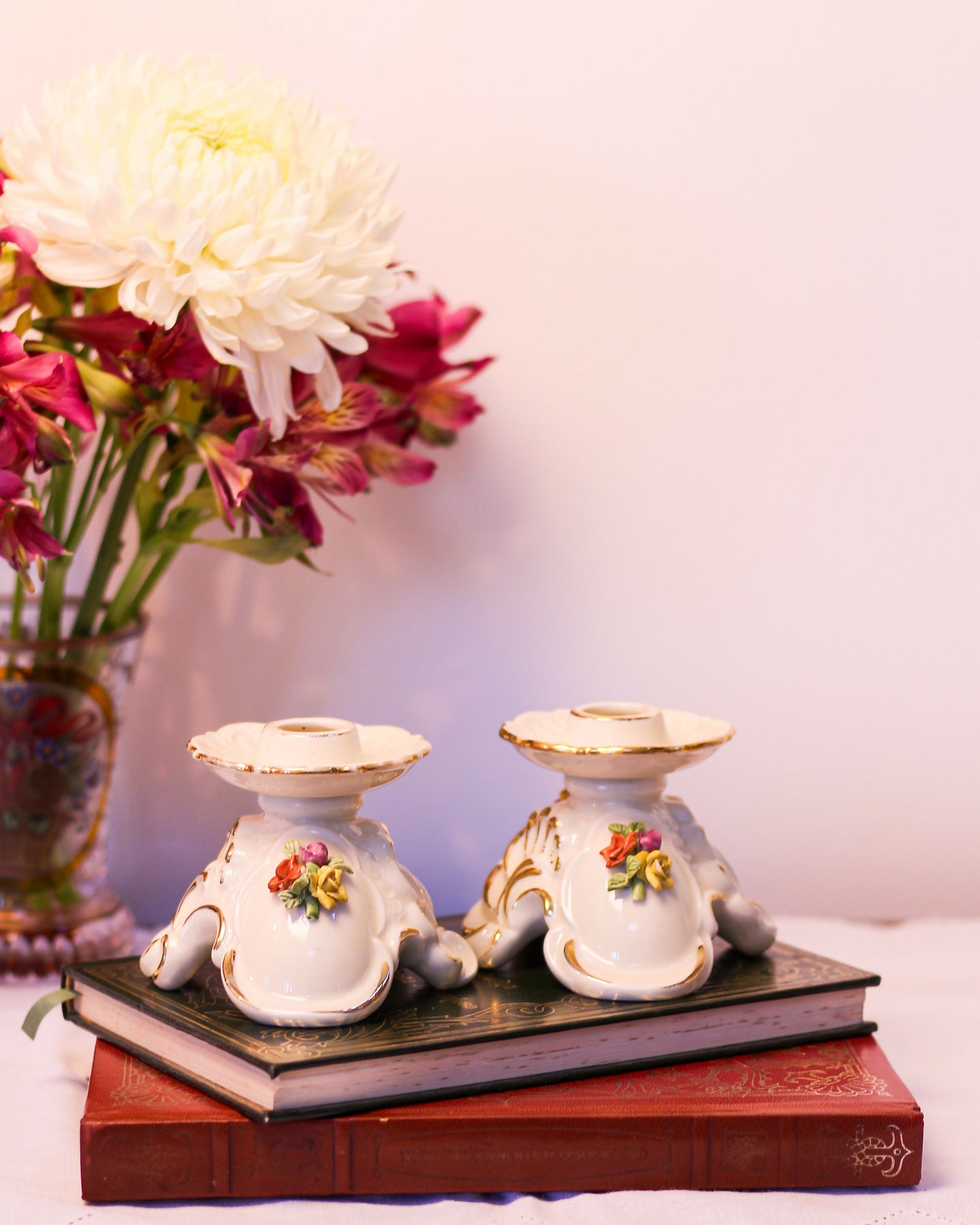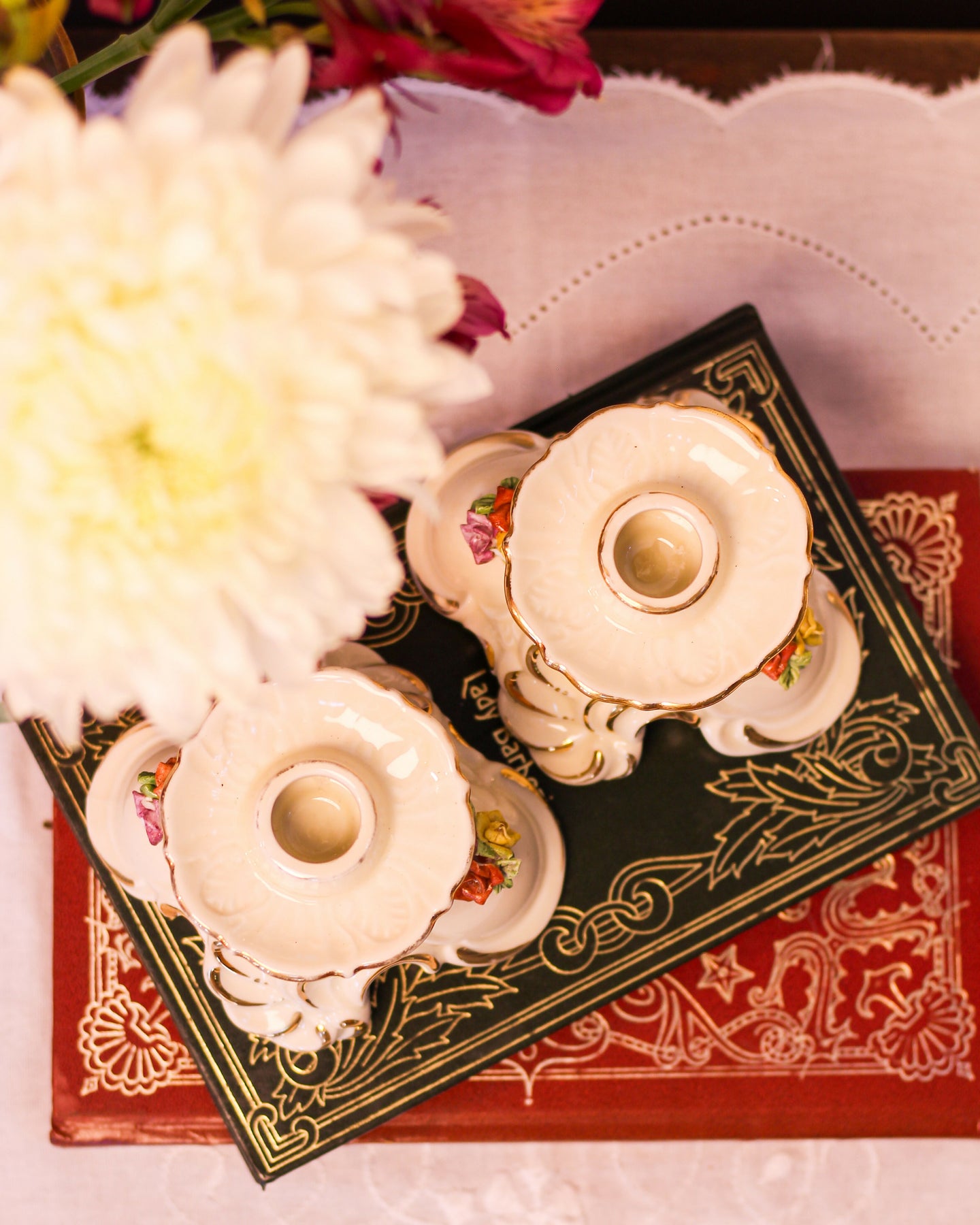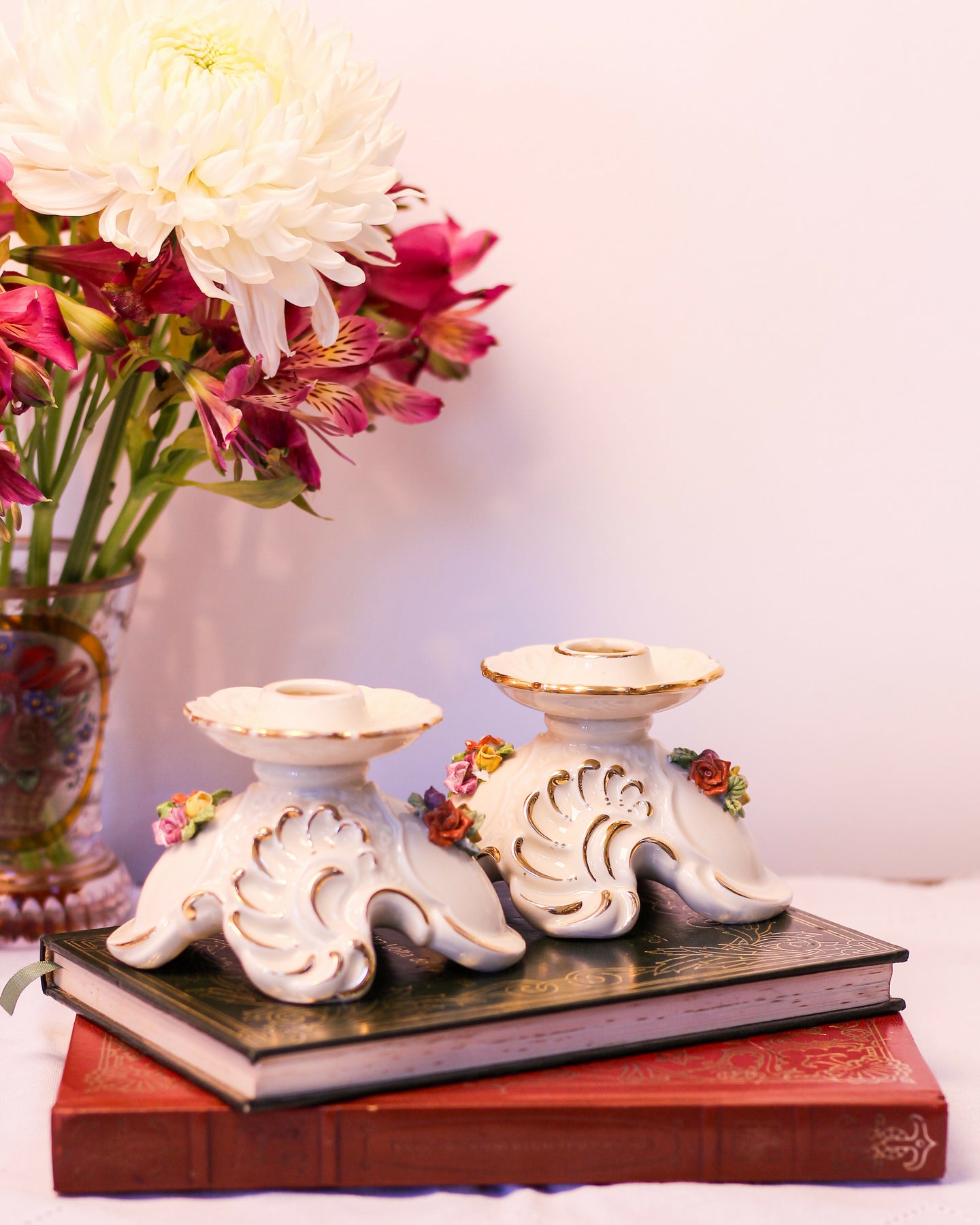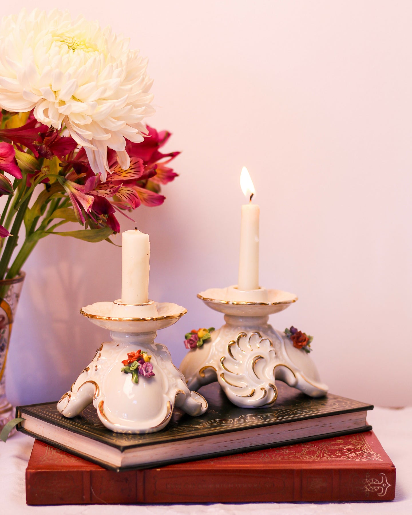 Castiçais em porcelana italiana Capodimonte - A arte com flores em porcelana surgiu na Itália no século XVIII e vem sendo reproduzida por artesãos pelo mundo. O nosso castiçal é feito a mão e é perfeito para combinar com outros tipos e tamanhos de castiçal que vc já tem em casa.