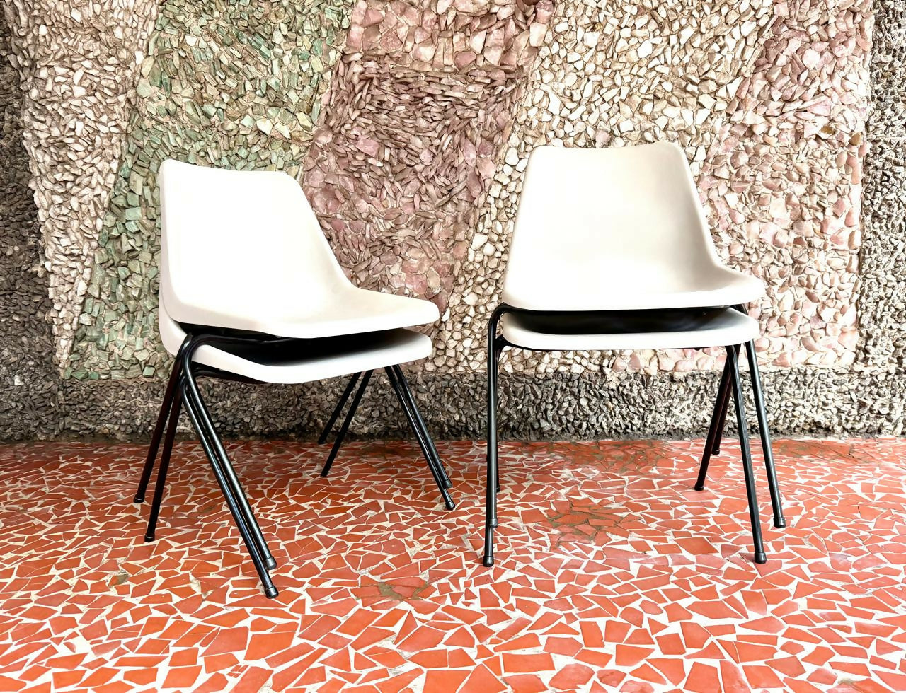 Lindo conjunto de cadeiras empilháveis Robin Day L`atelier, anos 70 modelo Hille.