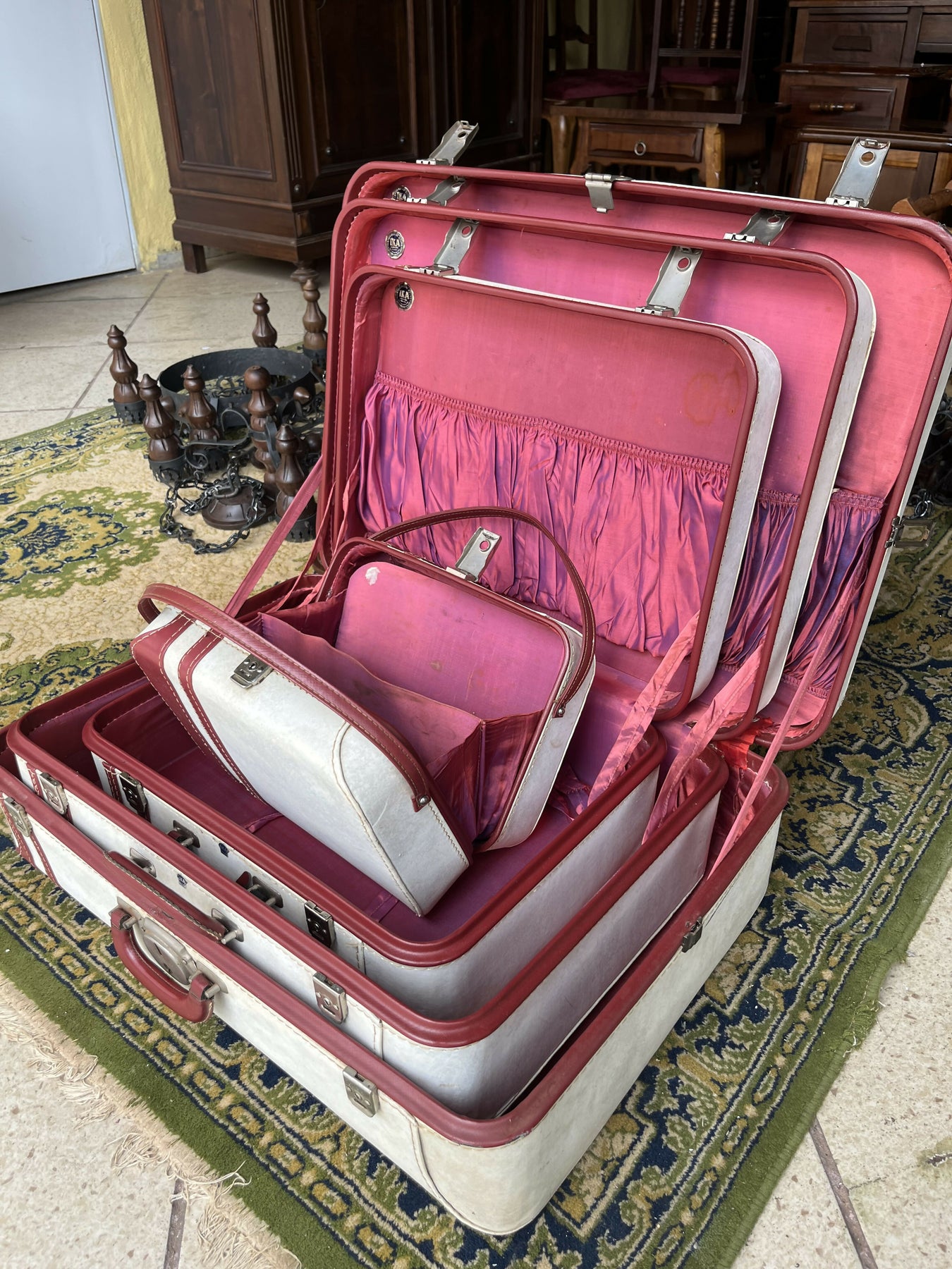 CONJUNTO DE 4 MALAS IKA ANTIGAS DE COURO
