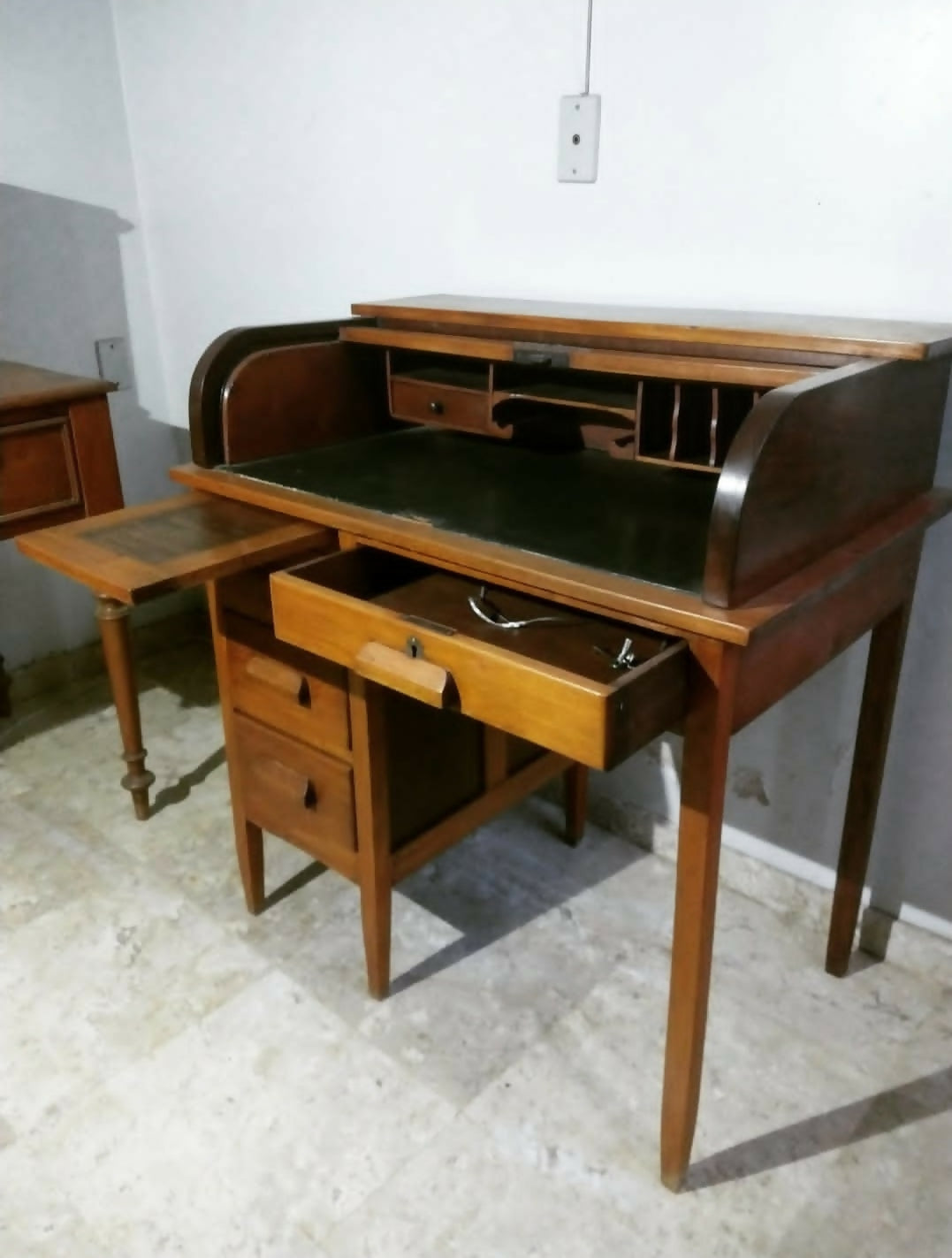 Escrivaninha papeleiro em madeira maciça, 4 gavetas