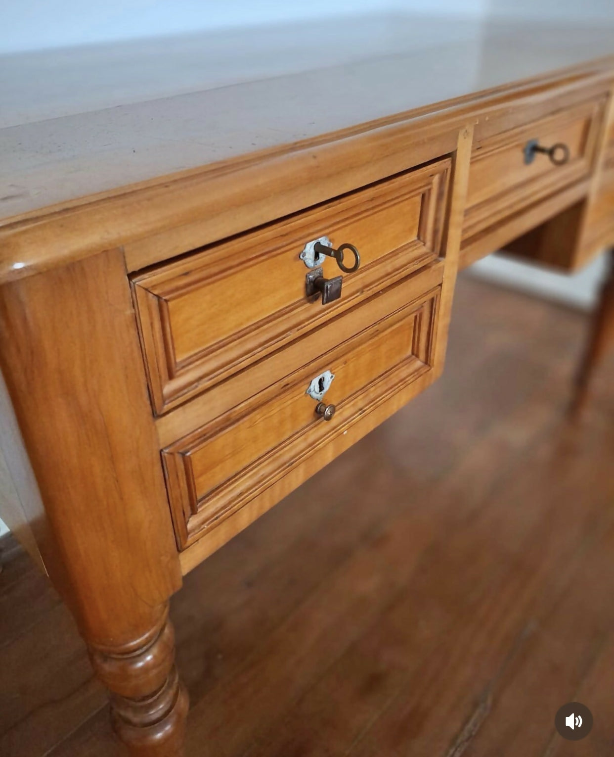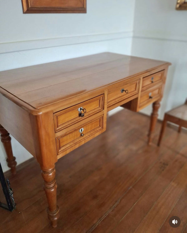 Escrivaninha de cedro do campo em perfeito estado, no estilo inglês, e com cantos arredondados. Possui 5 gavetas com travamento (chaves originais) e pés lindamente torneados.