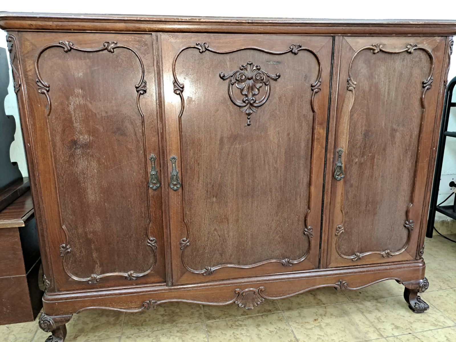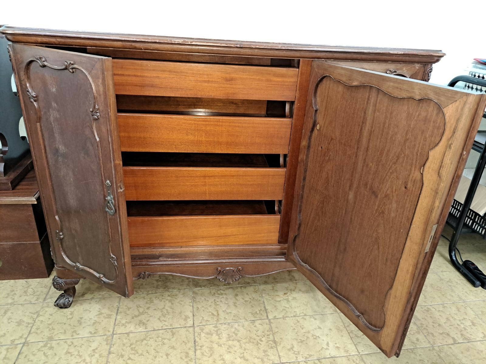 Espetacular cômoda / buffet antigo em madeira nobre com um vidro na espessura 0,8 cm em cima da peça para proteção