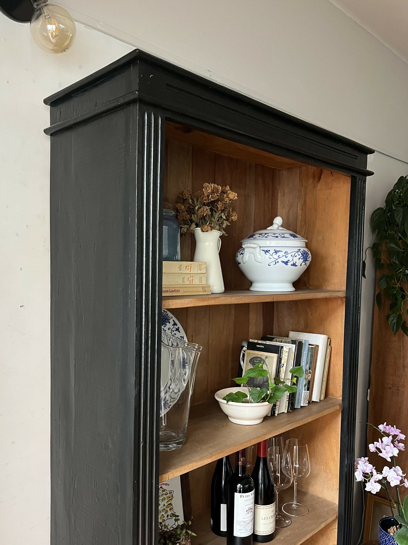 *Em São Paulo* Muito elegante, grande estante com prateleiras espaçosas para guardar de tudo. Feito em madeira maciça, bem robusto e pesado.