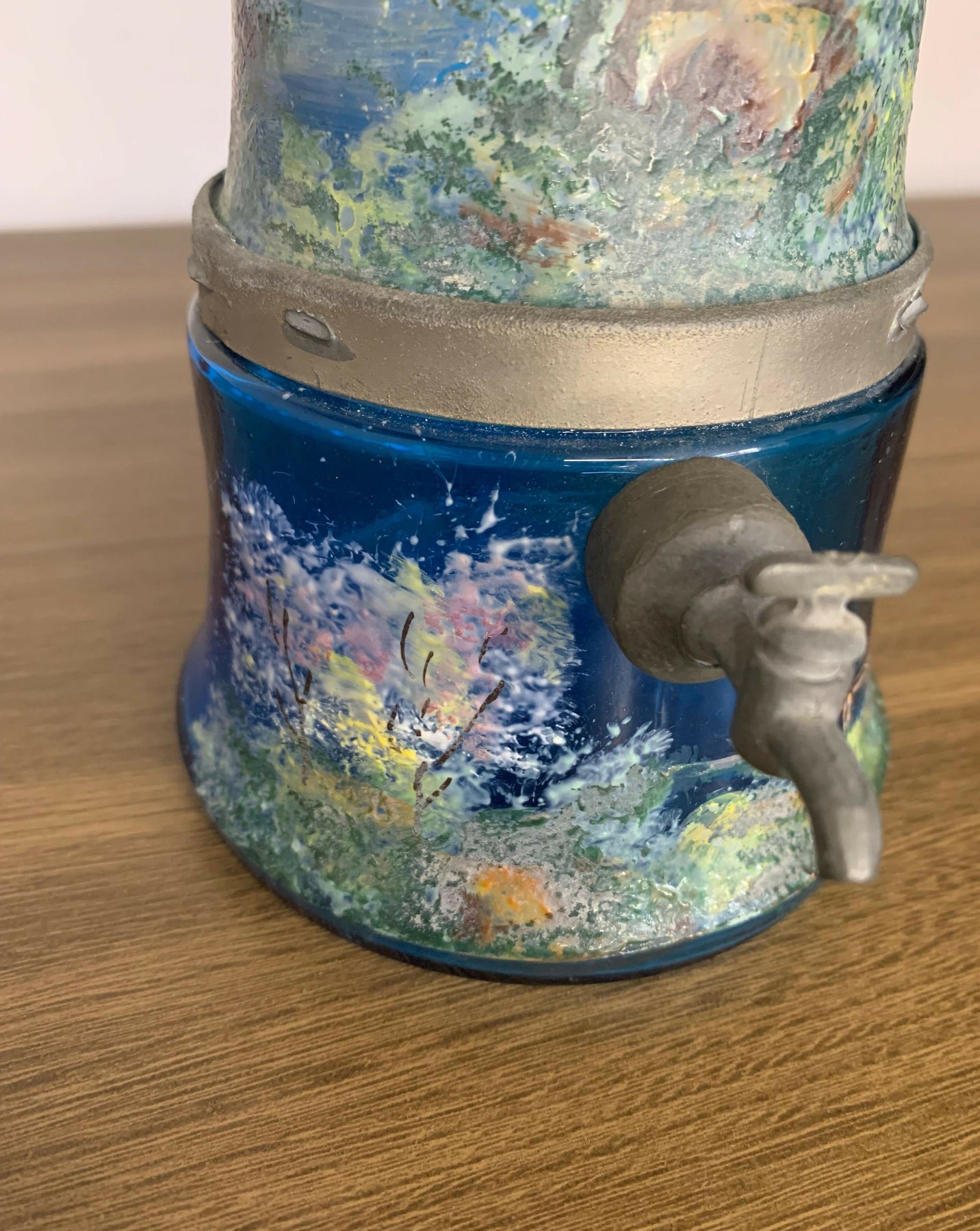 Simula um filtro de agua, possui a torneira e tampa de antimônio e outras partes em metal.