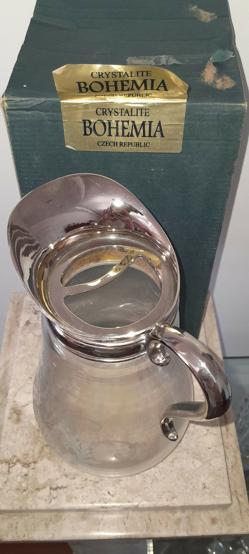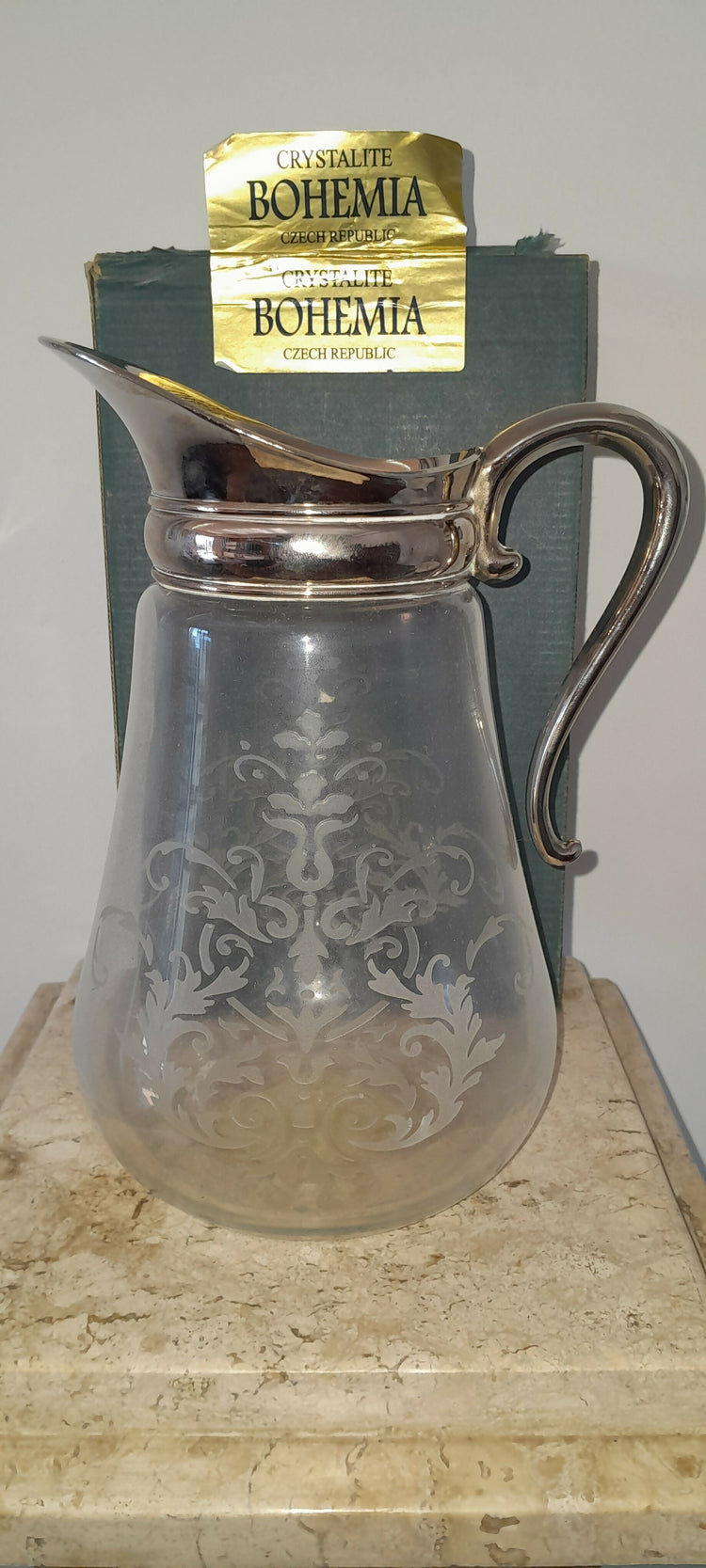 Lindíssima jarra de água ou suco de cristal da Bohemia toda lapidada, com bico em prata 90.