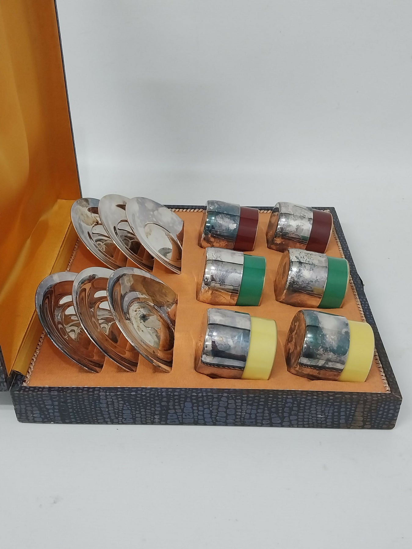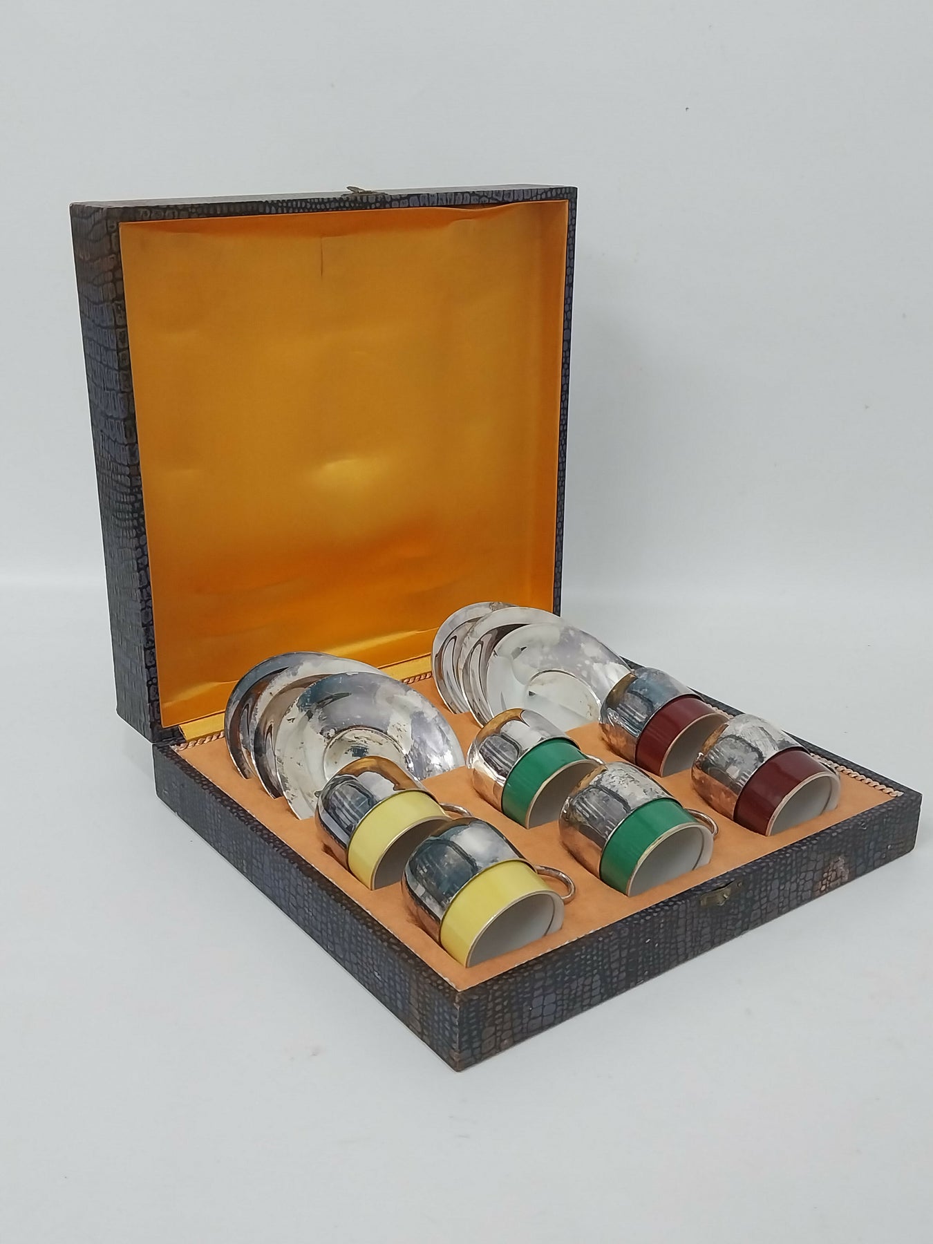 Jogo para Café Antigo Cristofolli Prata 90 com porcelana Mauá, em estojo original, em muito bom estado.