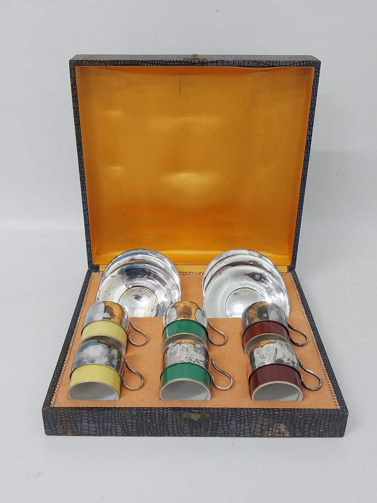 Jogo de Café Antigo Cristofolli Prata 90 com Porcelana Mauá