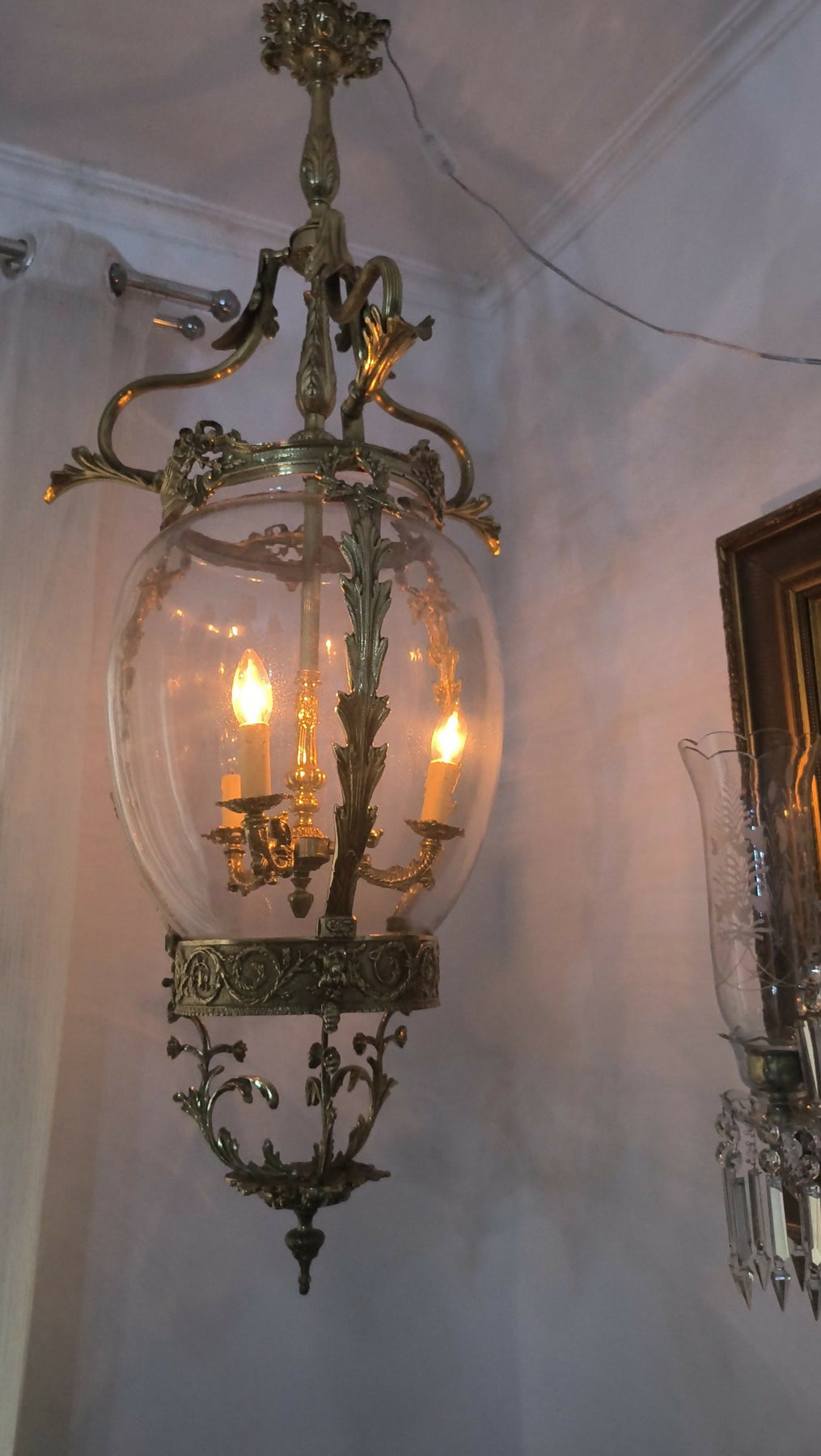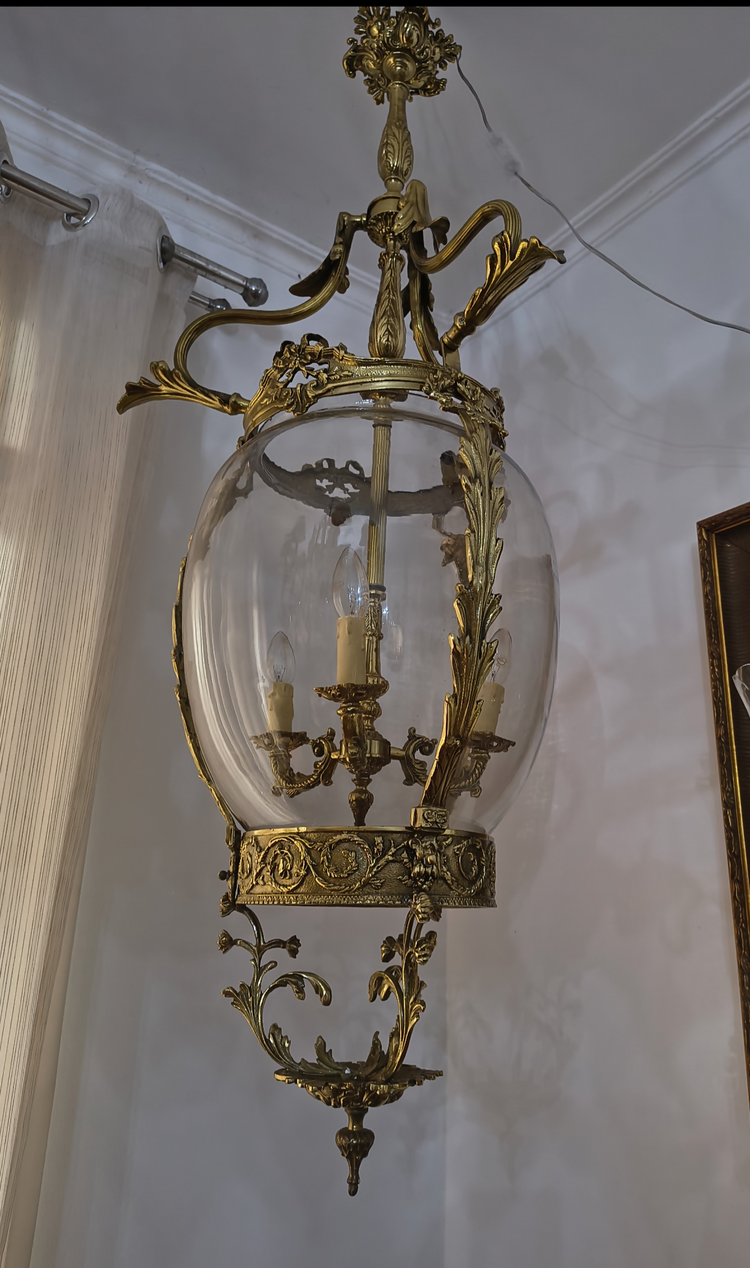 Lanterna Antiga em bronze com vidro bombê