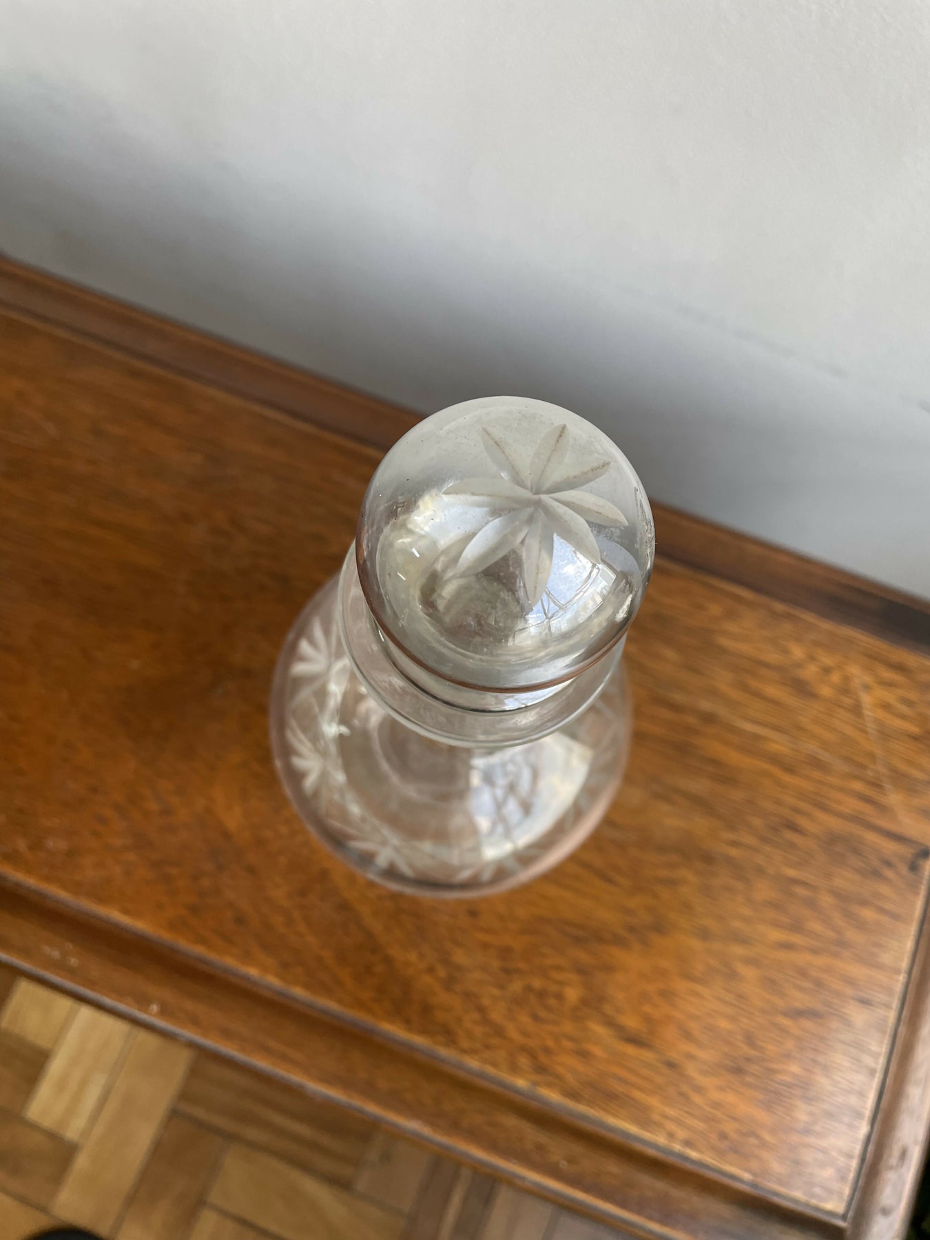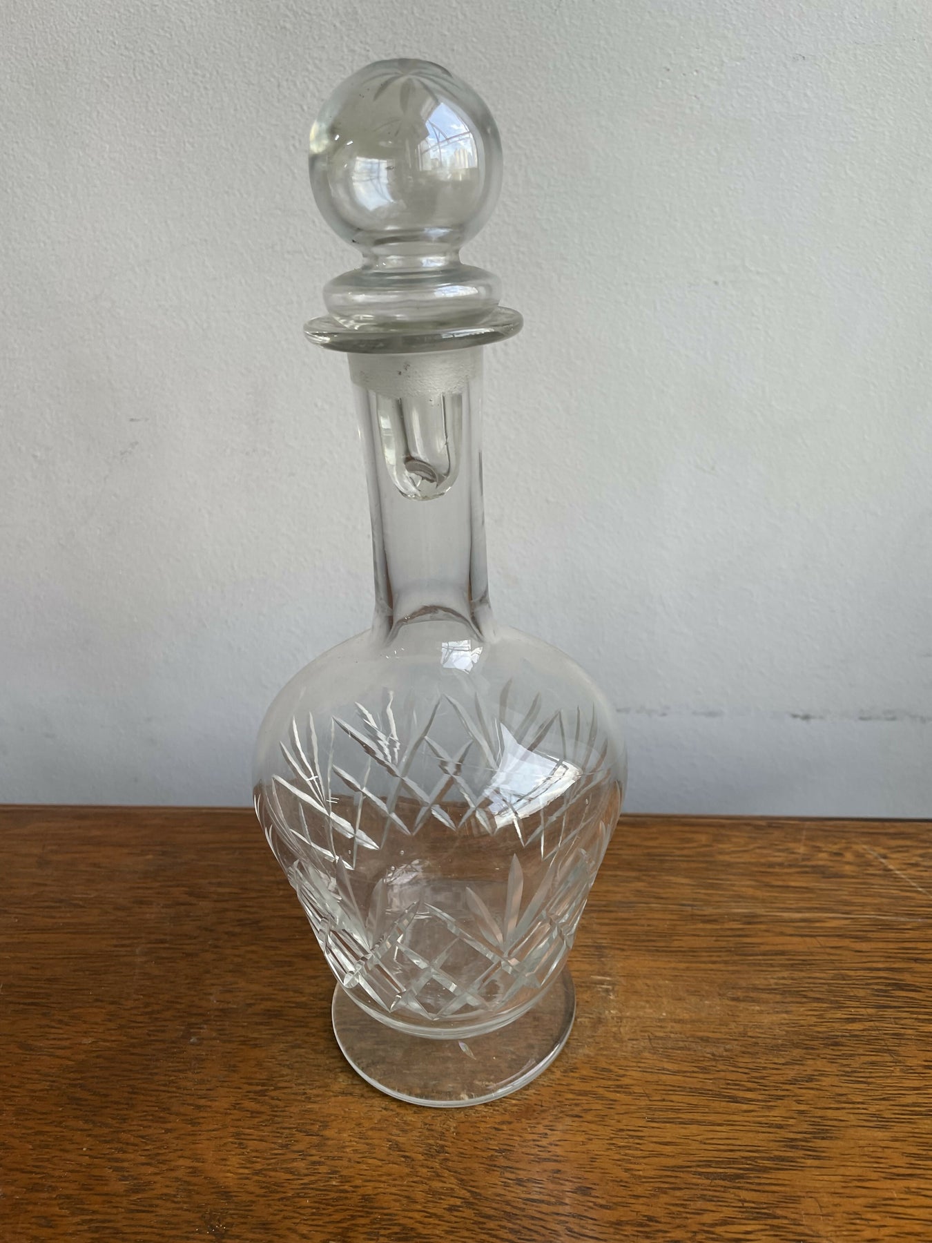 Linda licoreira de cristal transparente trabalhada com detalhes de lapidação em losangos, é característico de itens antigos ou colecionáveis. Pode ser utilizado para servir vinho ou licores, agregando elegância à mesa. É trabalhada até na tampa redonda dando um destaque na peça.