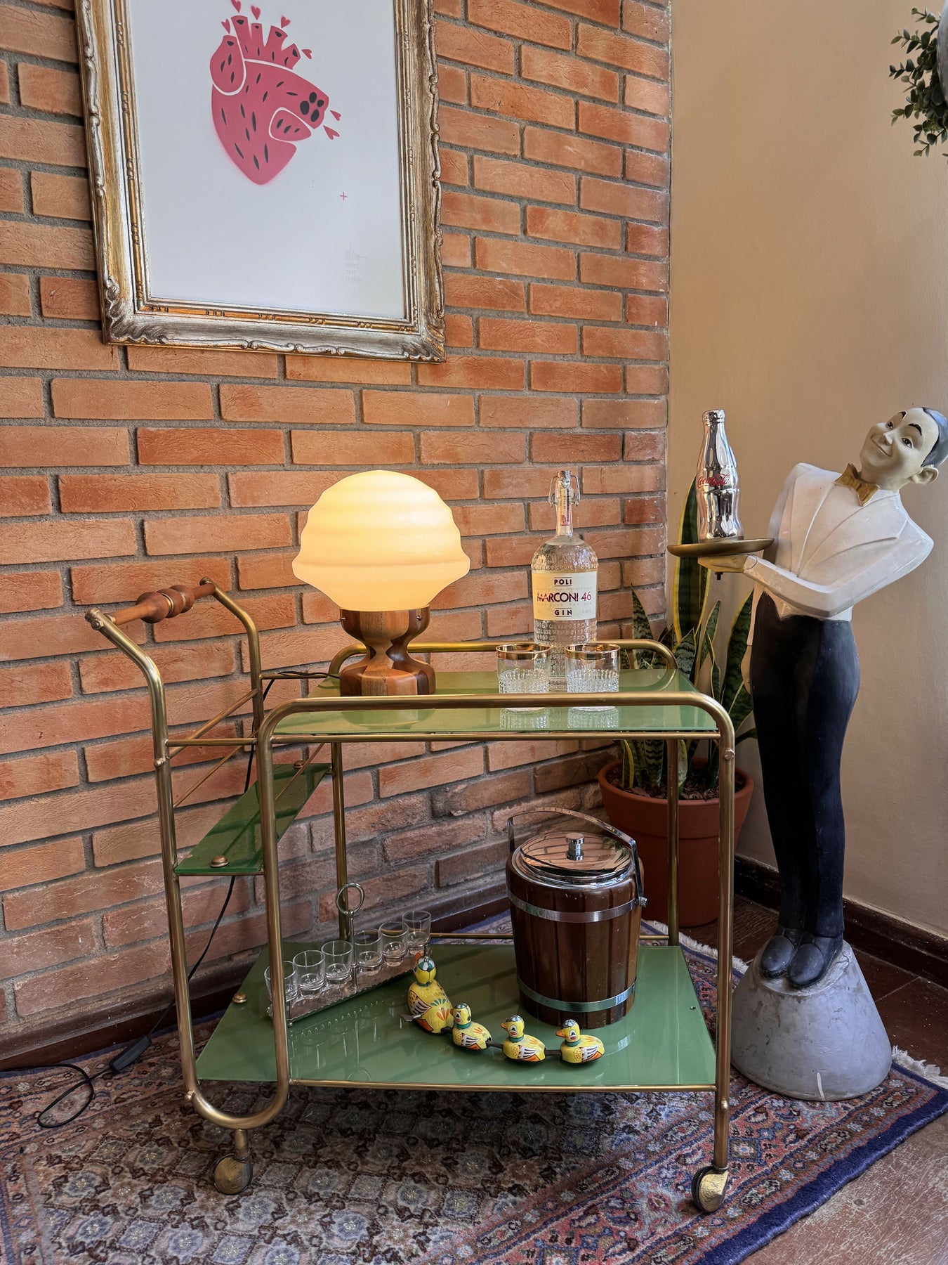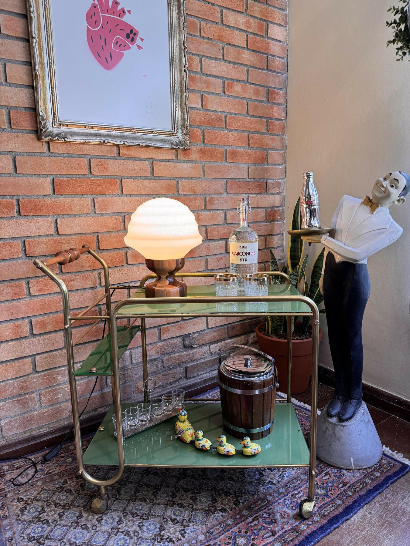 Lindo barzinho ou carrinho de chá / café Anos 50 com vidro verde