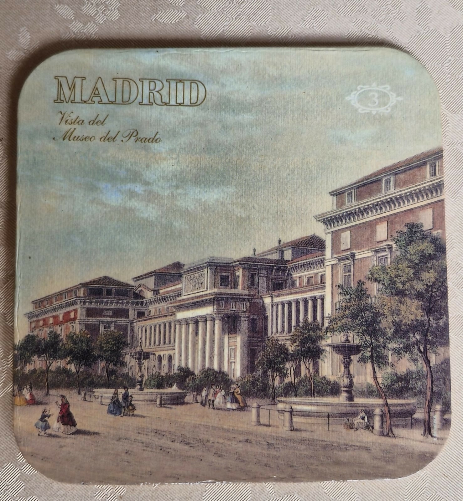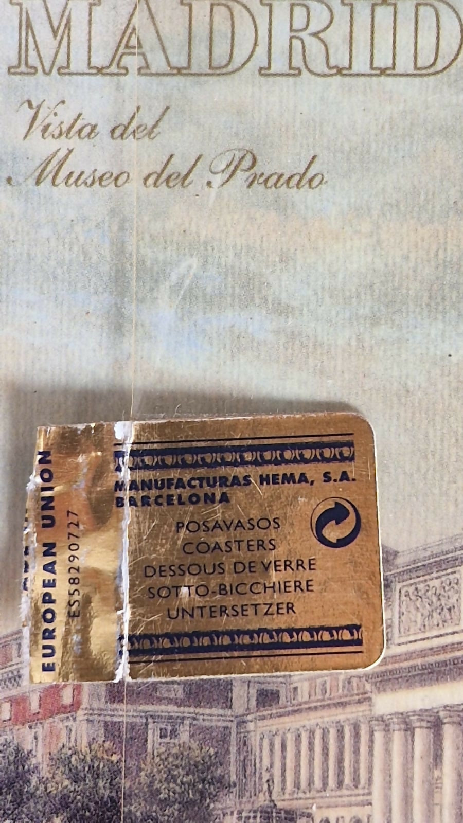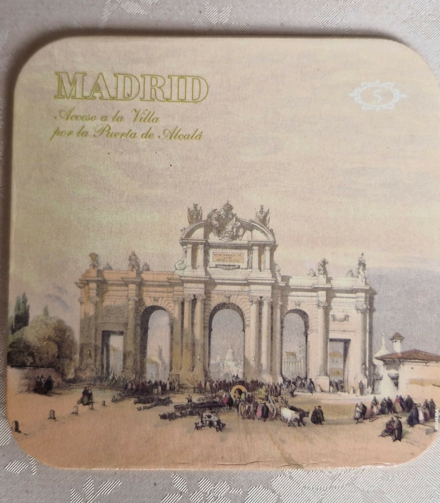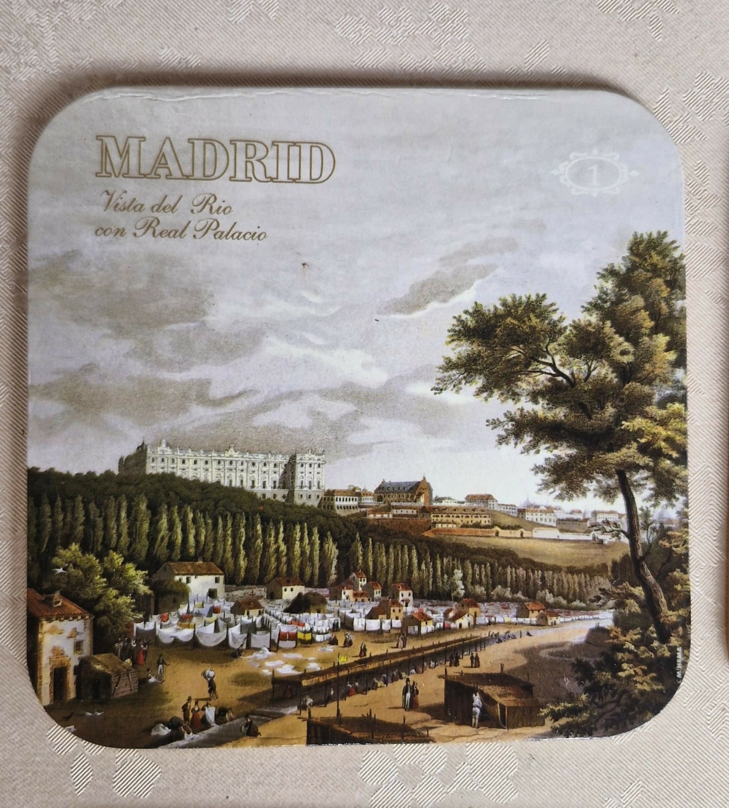 Lindo conjunto com 6 porta-copos de madeira confeccionados em Barcelona, com fotos de pontos turísticos de Madri. Embalagem original da loja Manufacturas Hema - Barcelona, em que foi adquirido.