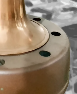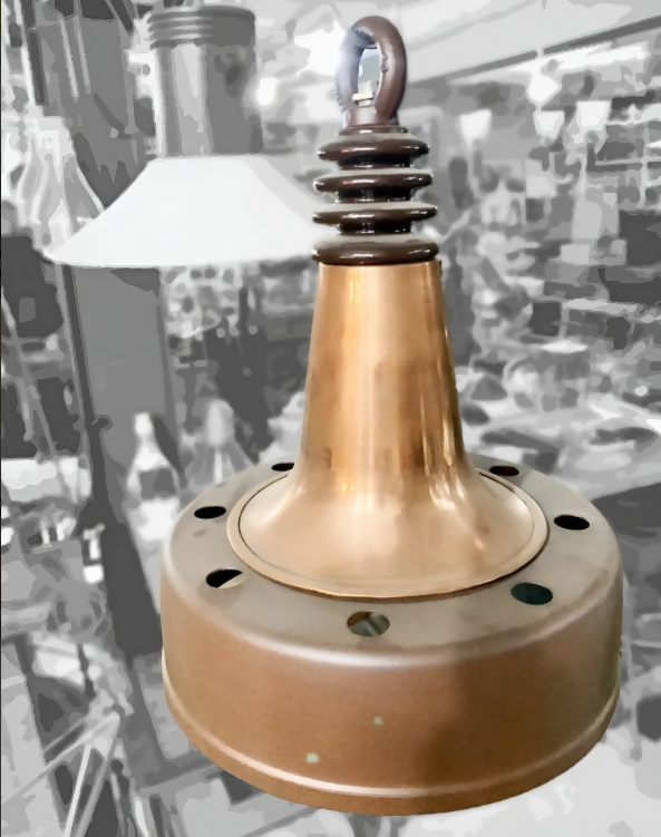 Estrutura em peças de latão, cobre e metal (marrom corte) com suporte em porcelana de alta tensão