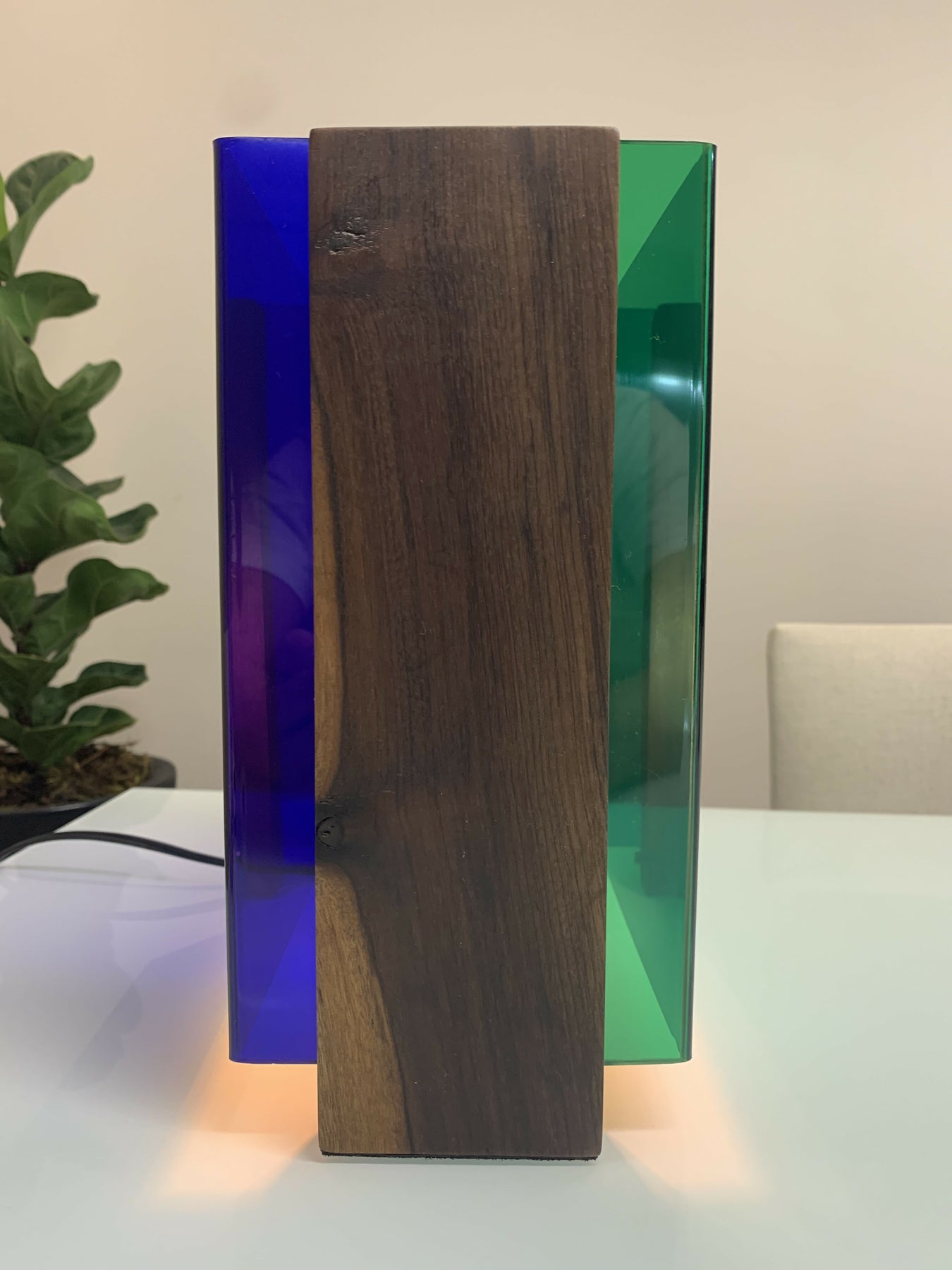 Luminária em acrílico azul e verde
