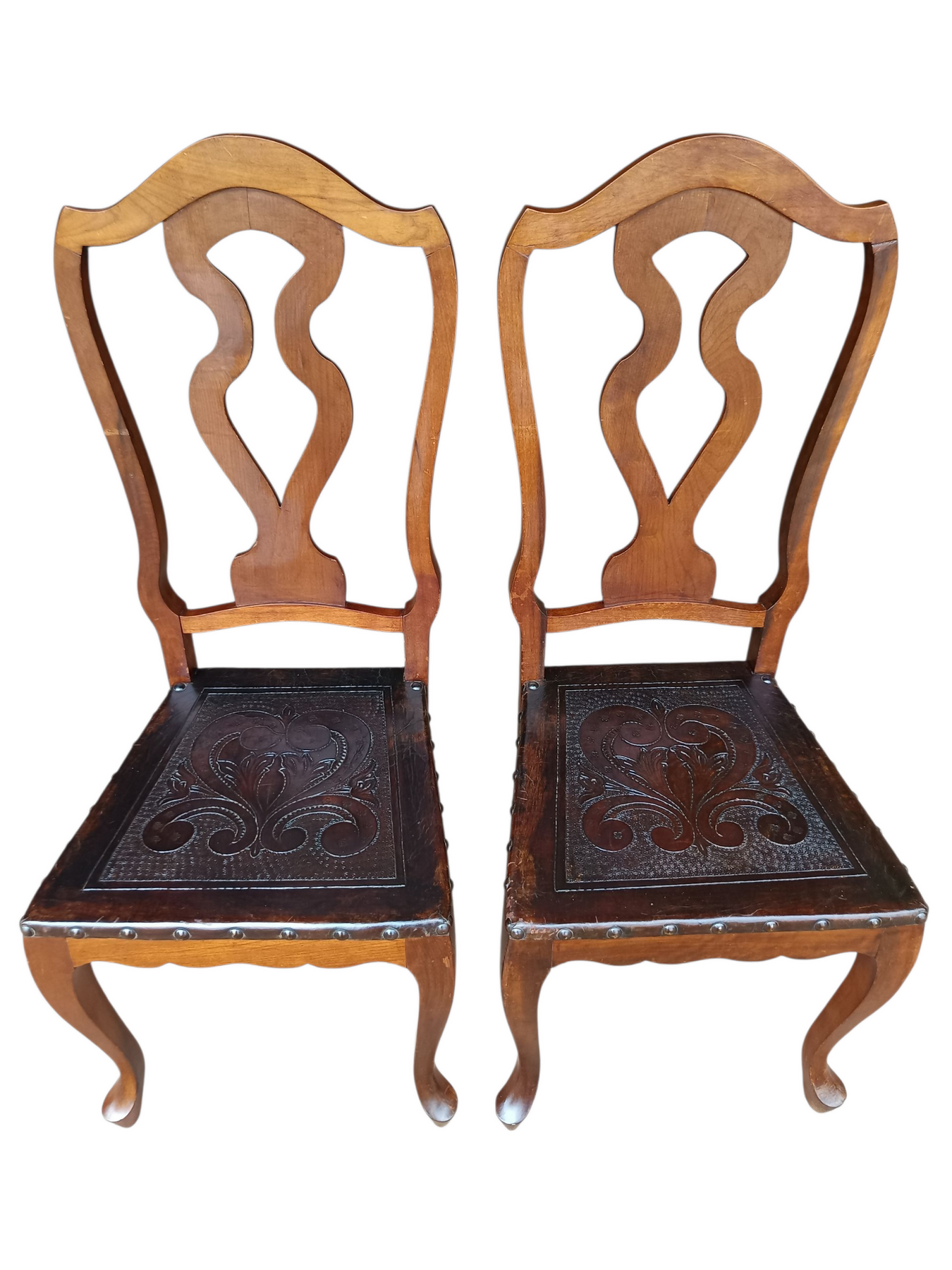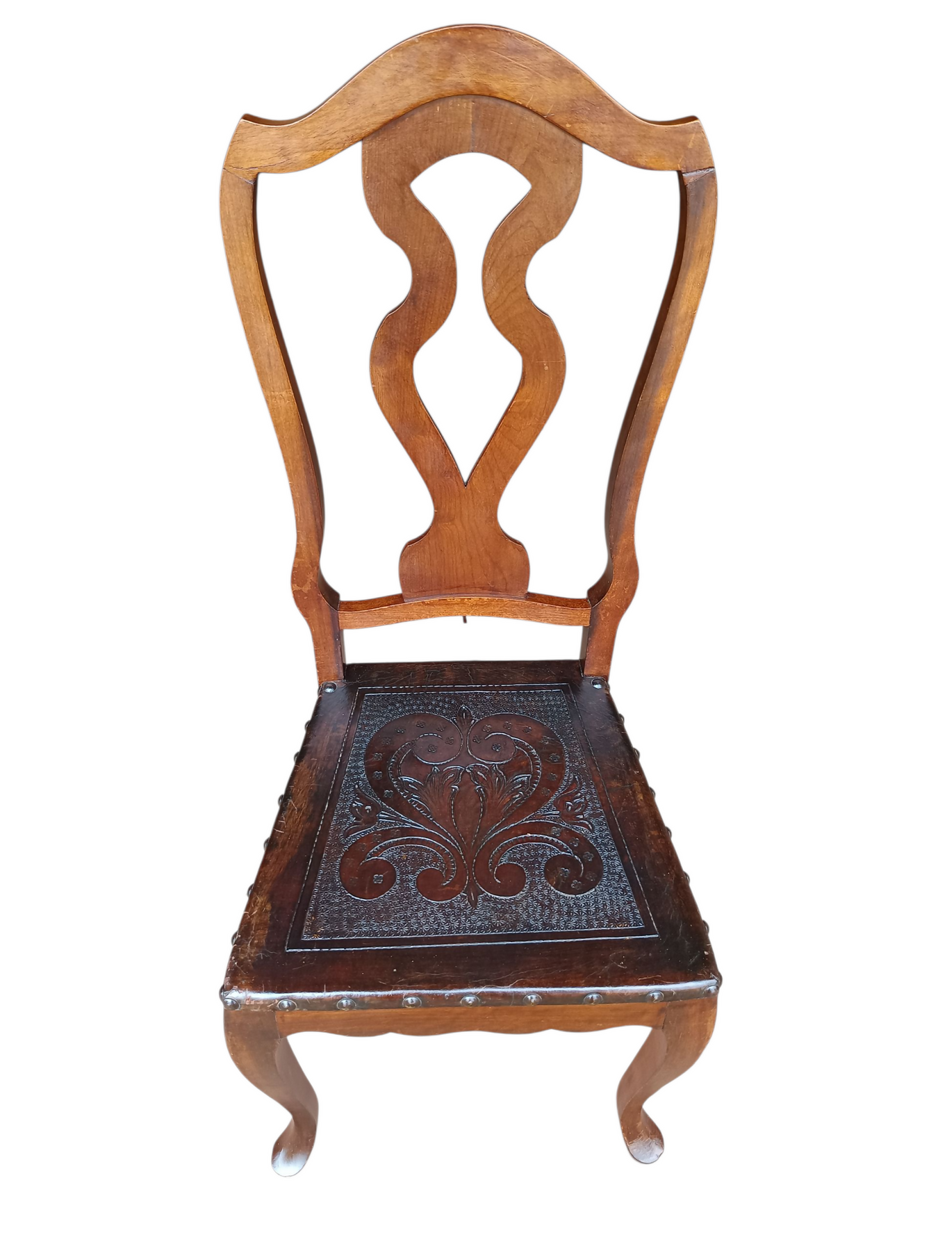 TRONO DE MADEIRA TRABALHADA COM COURO NATURAL MUITO ANTIGO