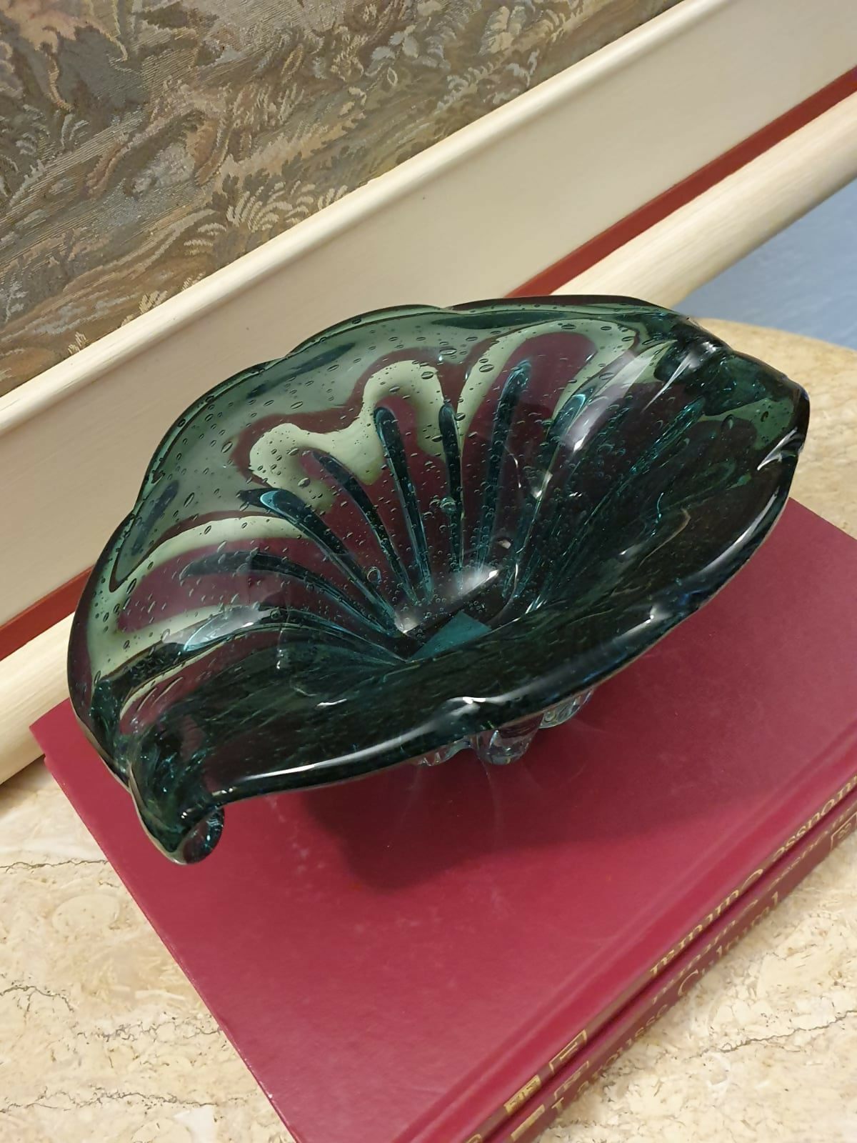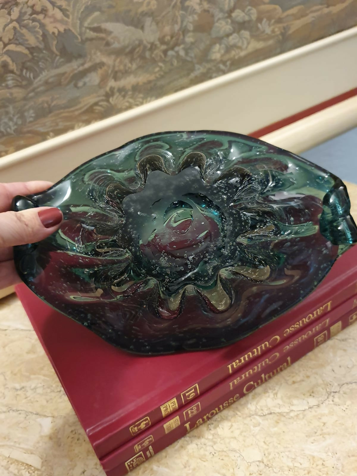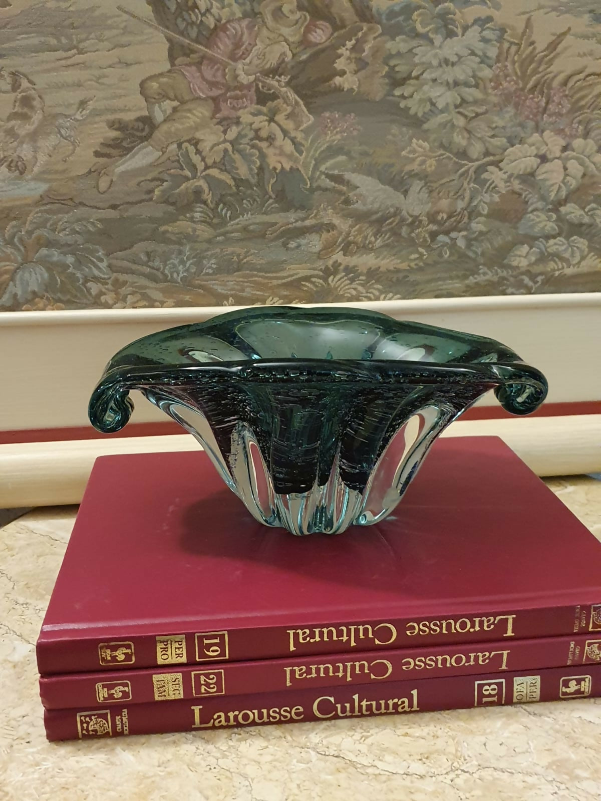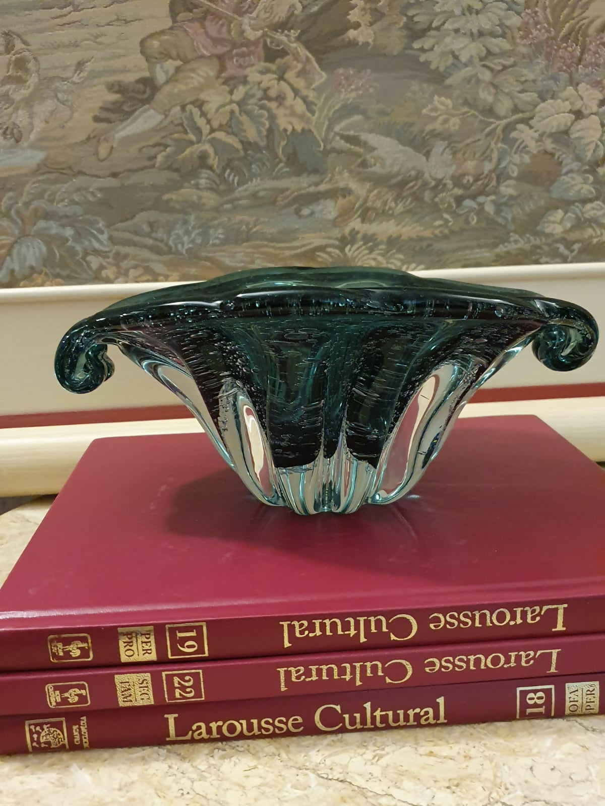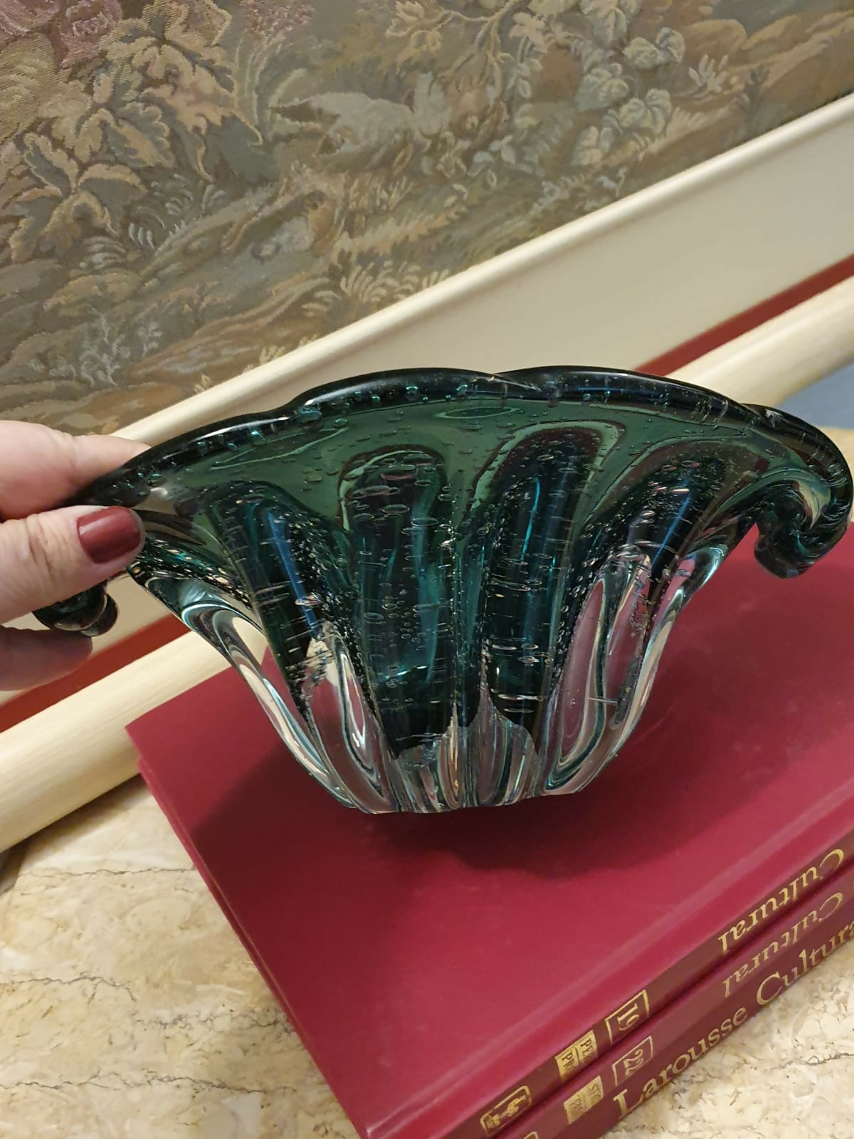 Maravilhoso centro de mesa / fruteira / floreira em vidro de Murano verde.