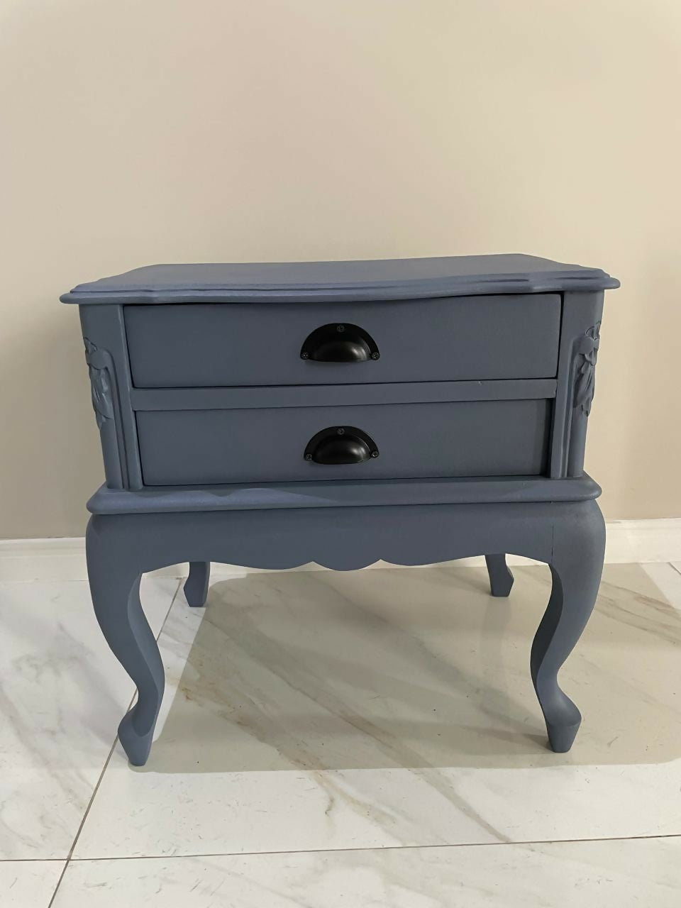 Mesa de cabeceira em madeira na cor azul, chippendale.