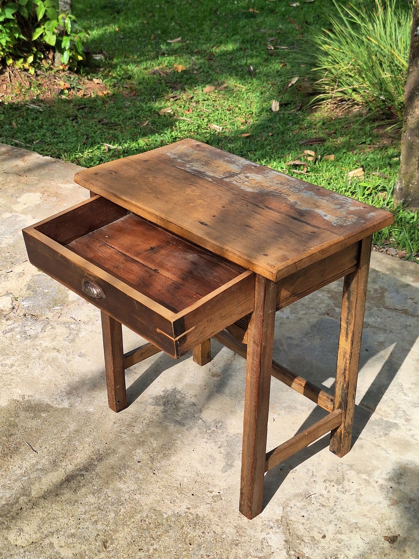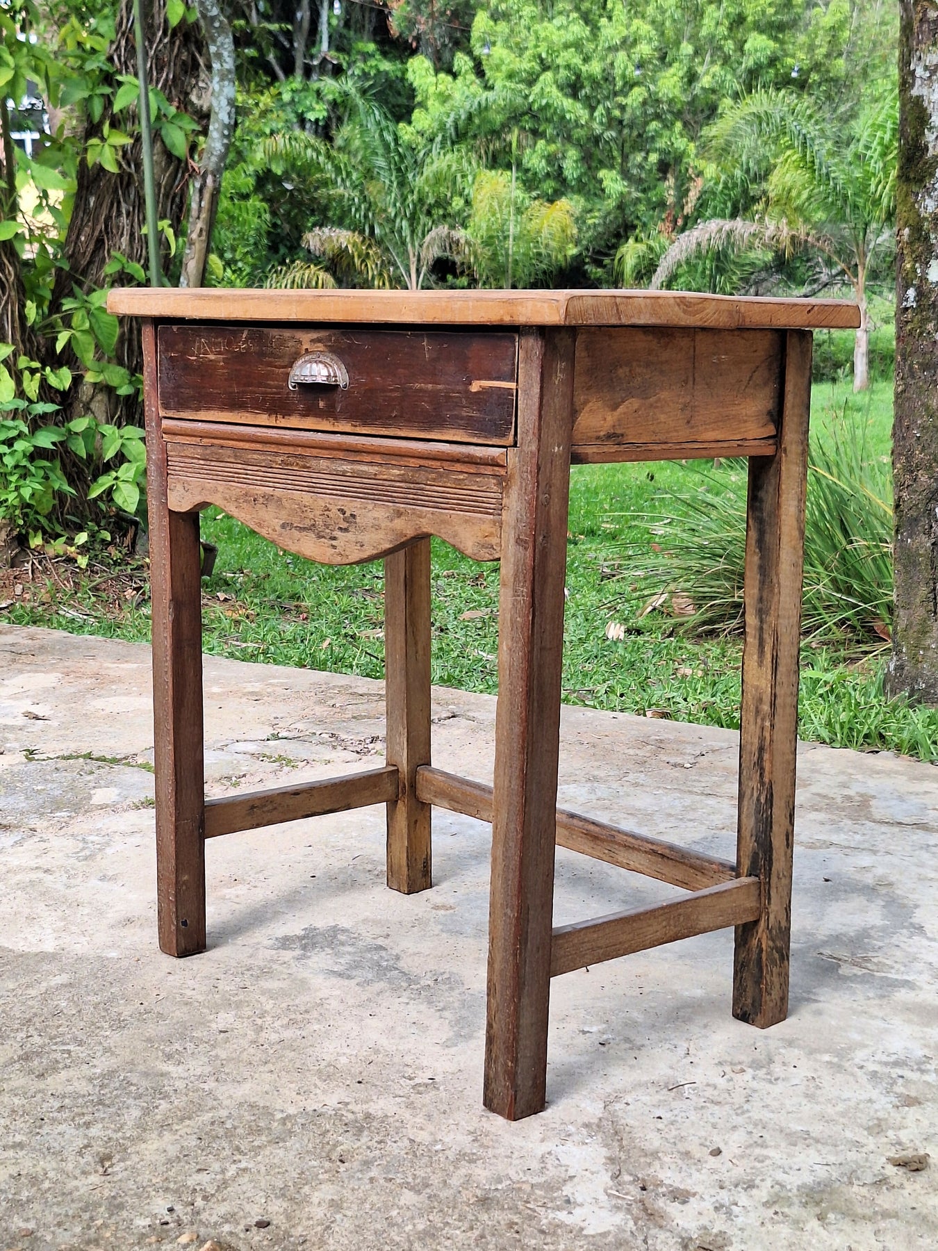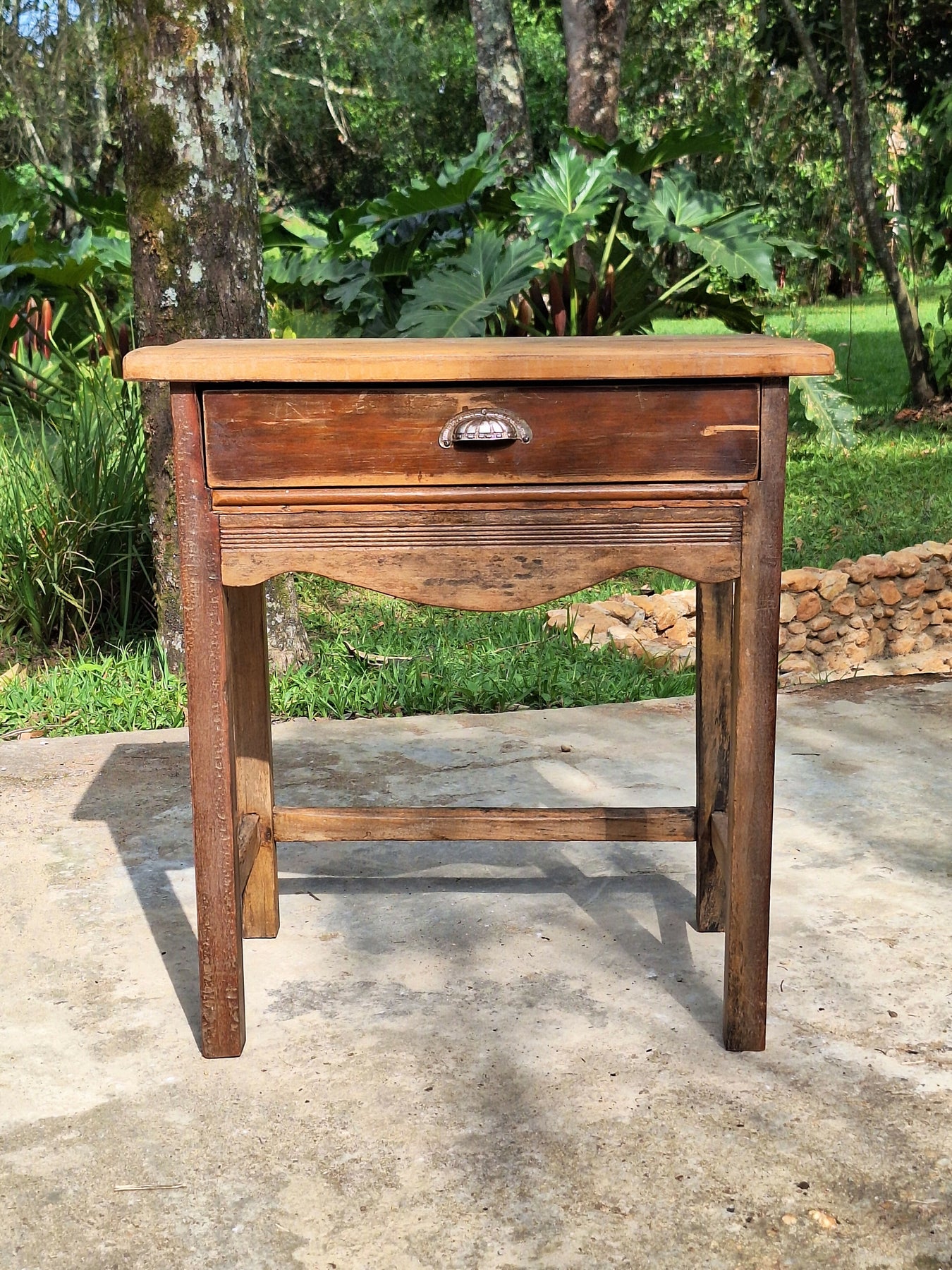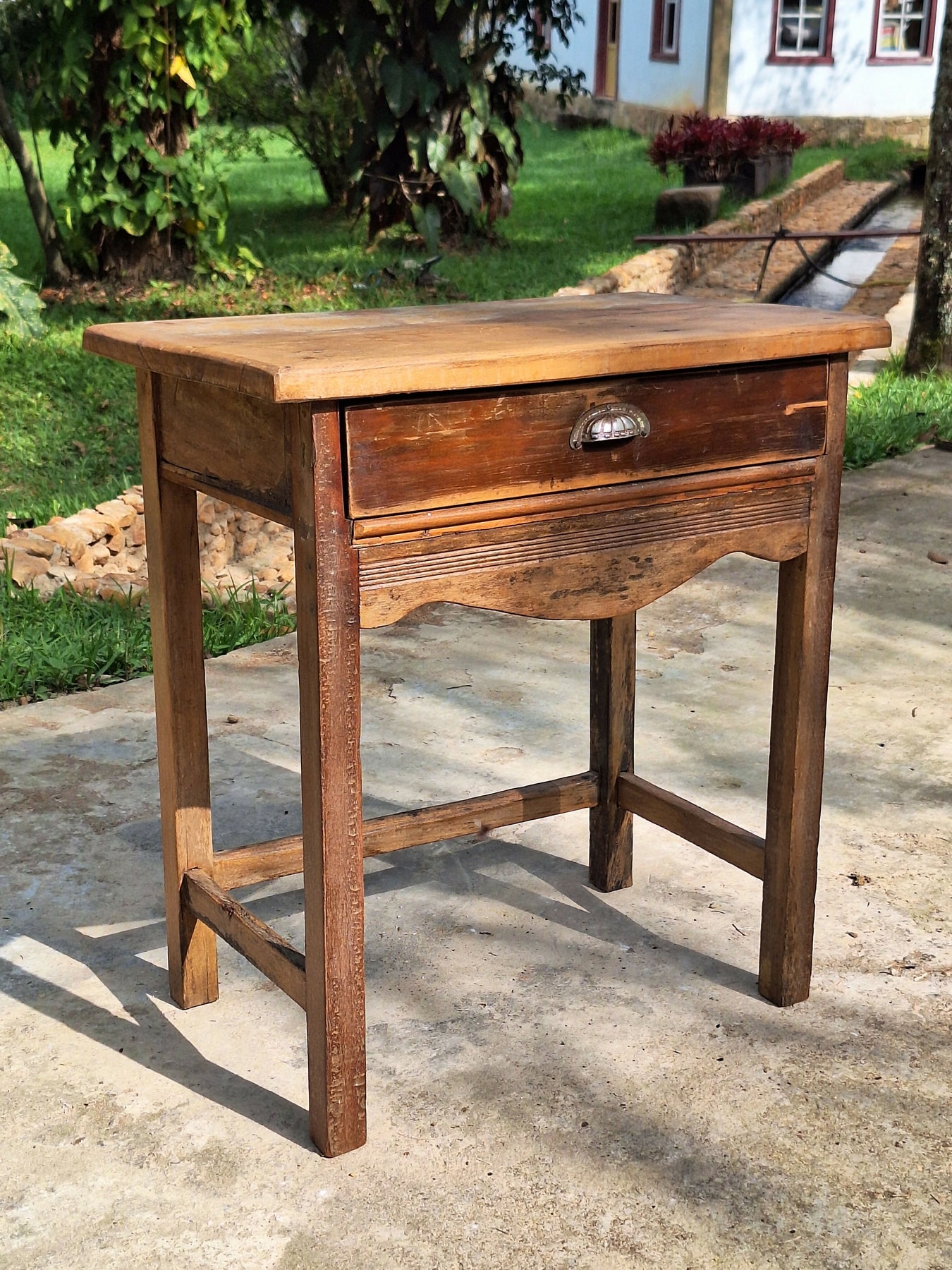 Mesinha de Apoio Antiga com gaveta Madeira Maciça Garimpo Mineiro