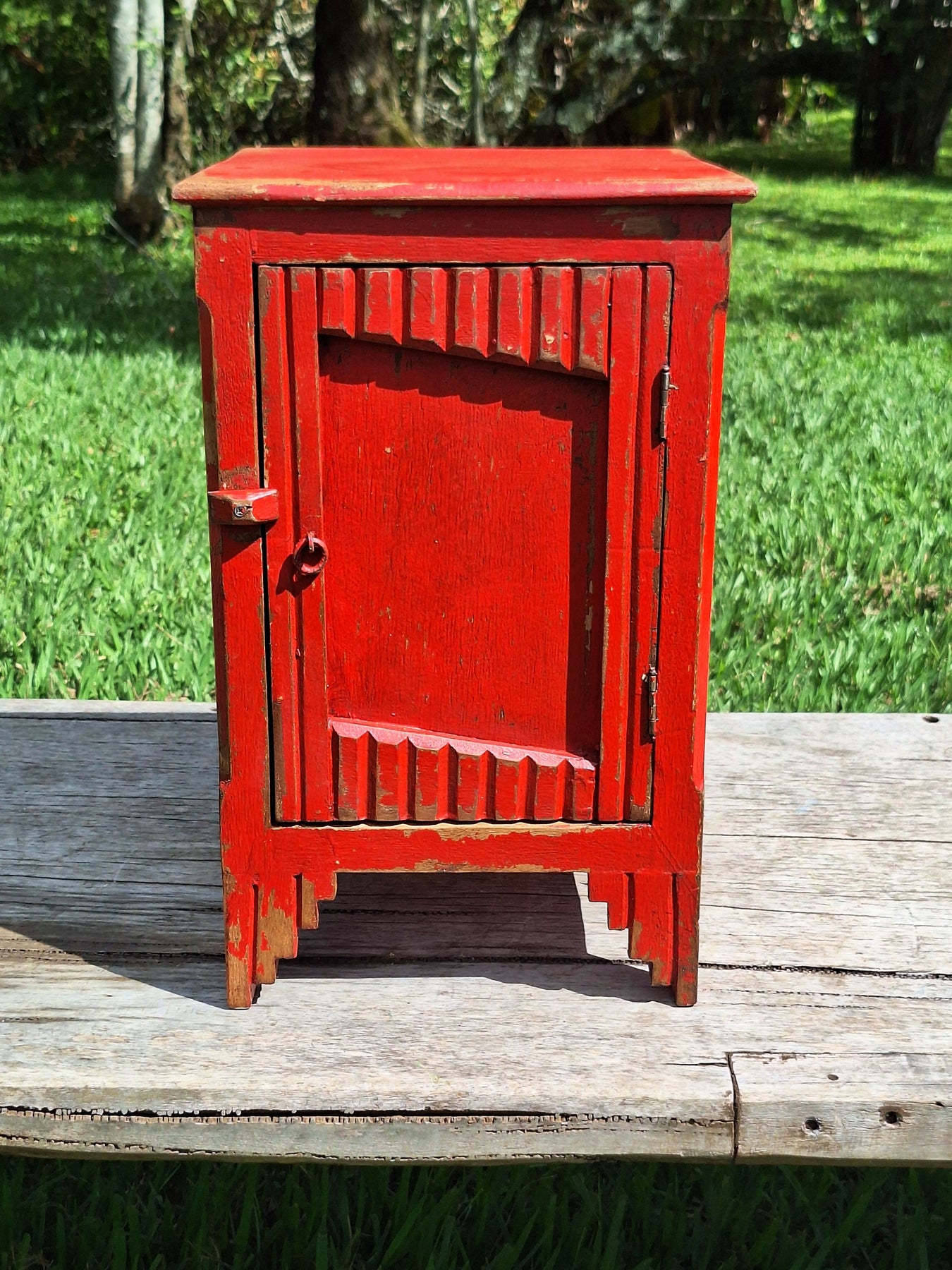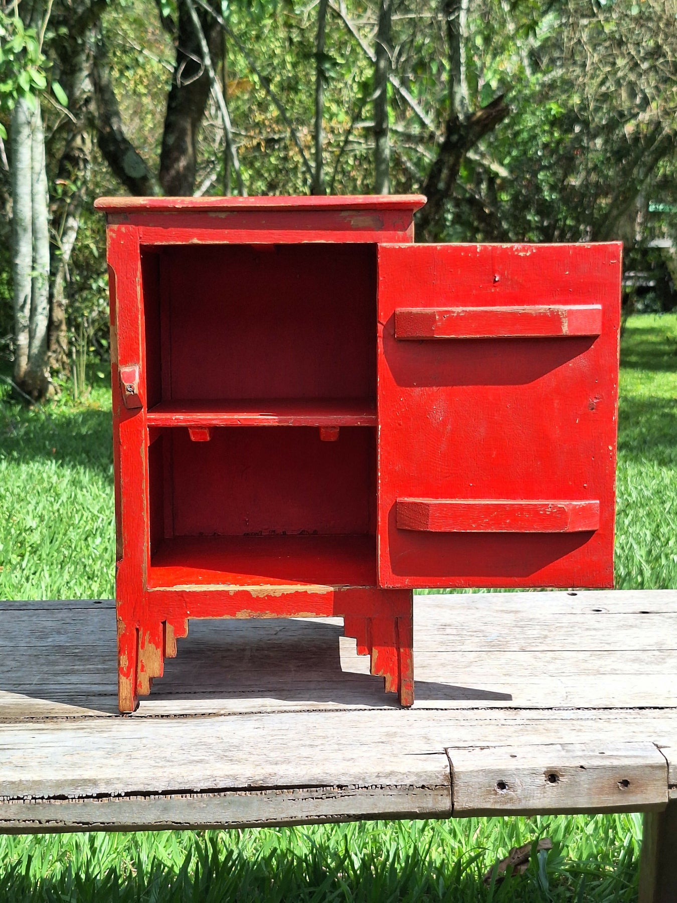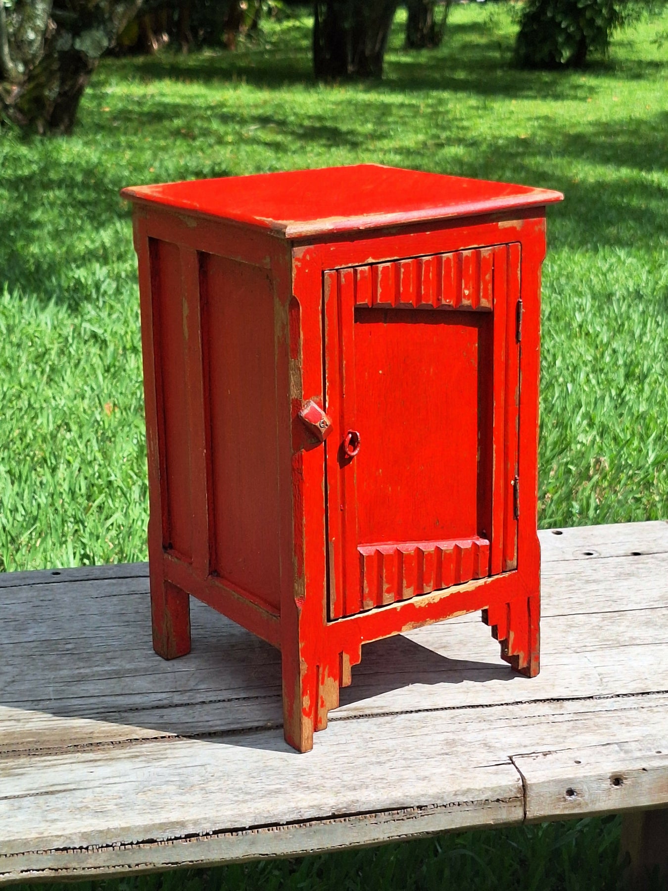 Mesinha de Cabeceira / Armarinho Tinta Gasta Vermelha Madeira Maciça Garimpo Mineiro