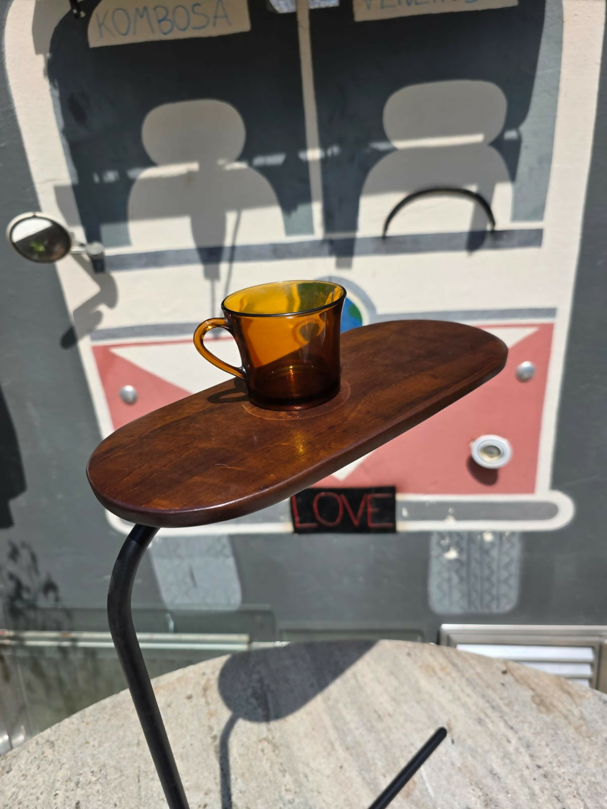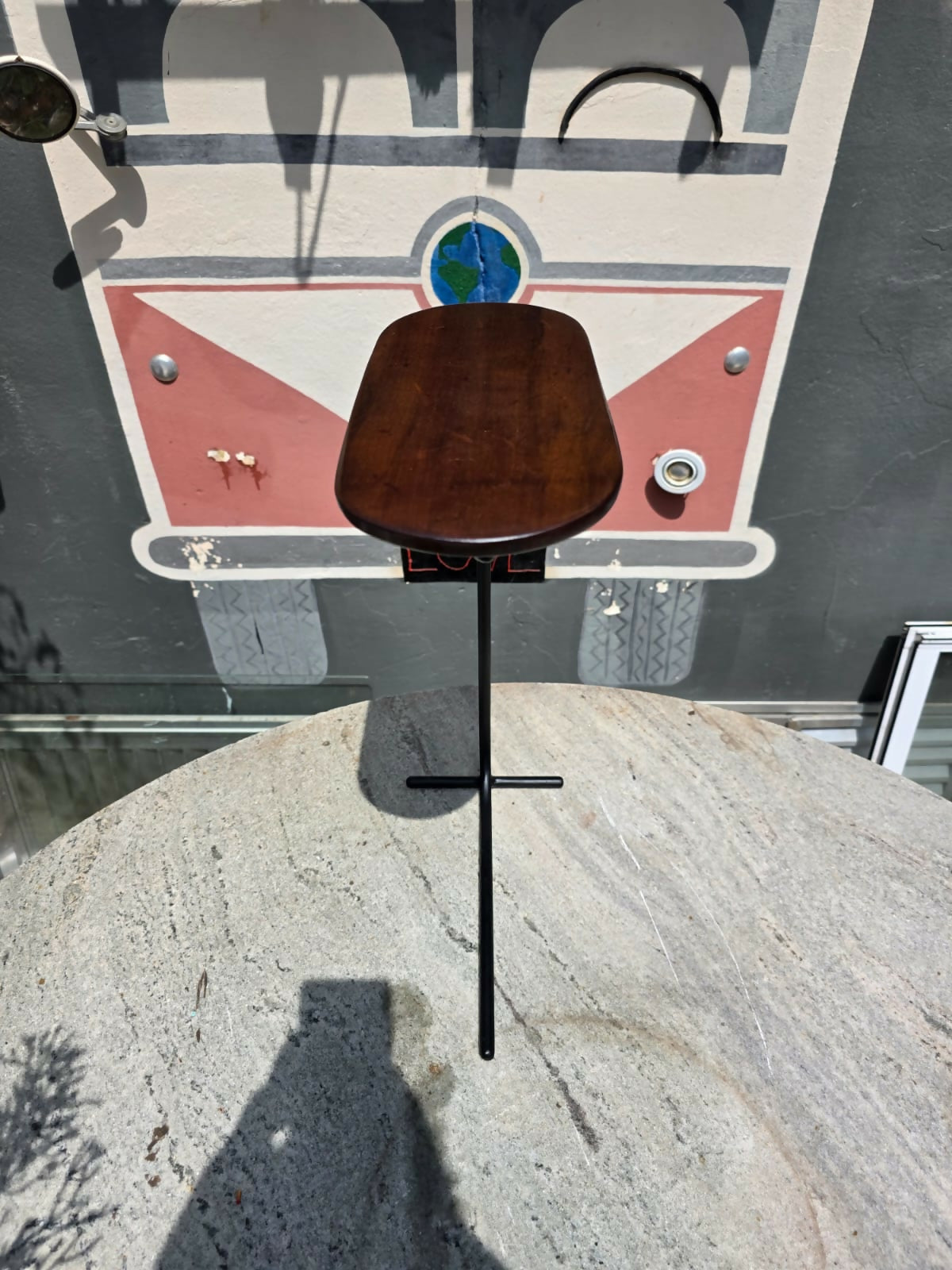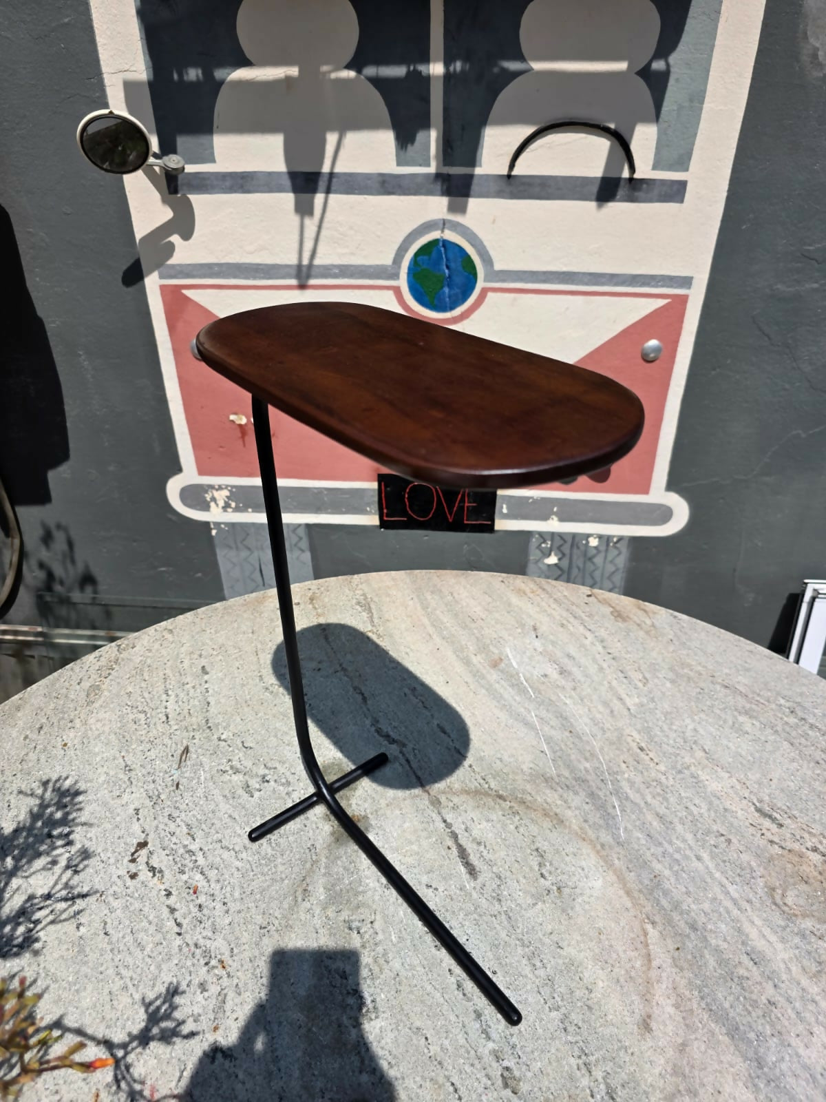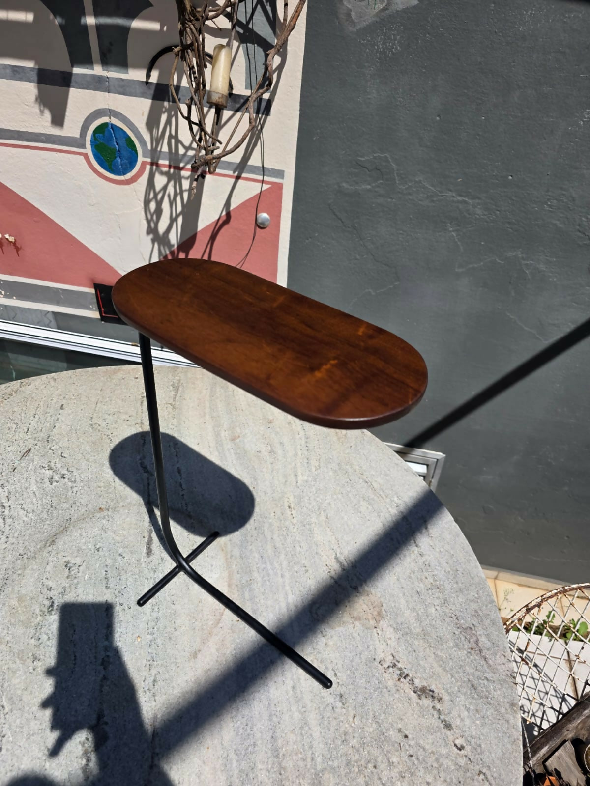 Mesinha de canto / Apoio em ferro e tampo em Imbuia maciça, peça dos anos 70 em ótimo estado de conservação.